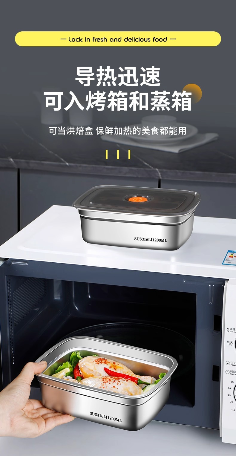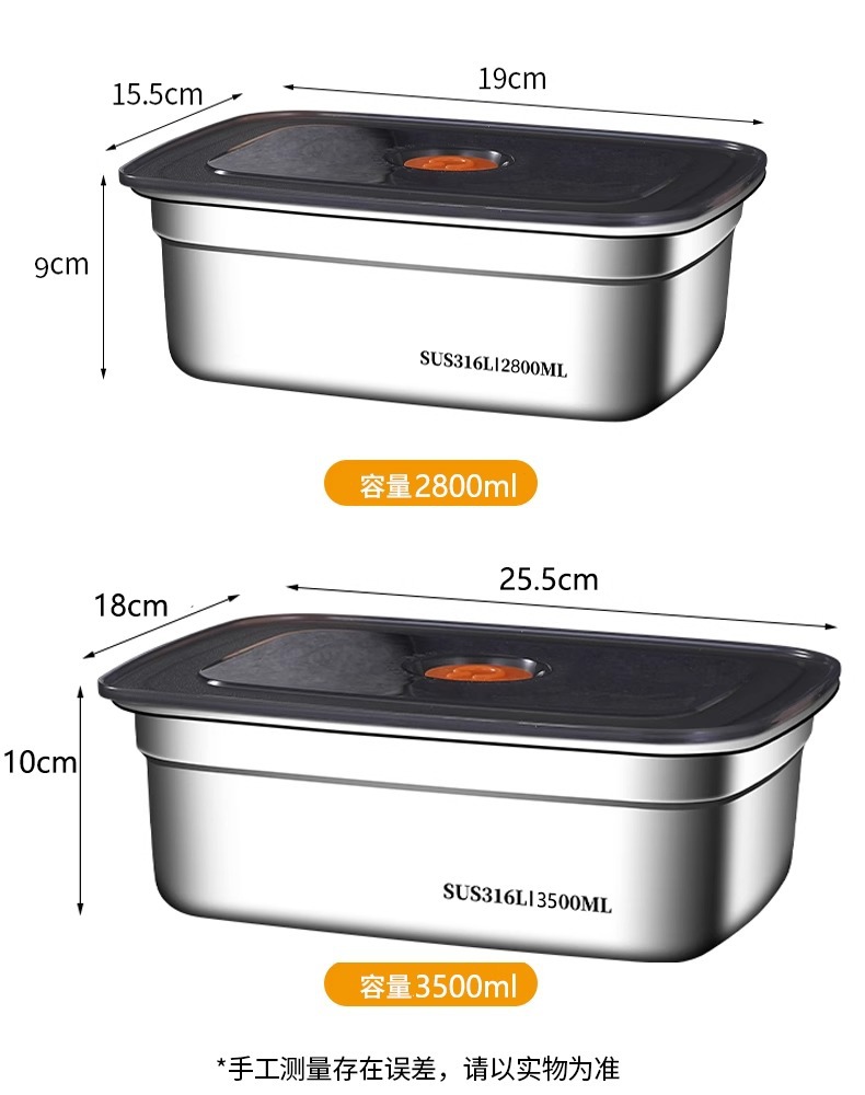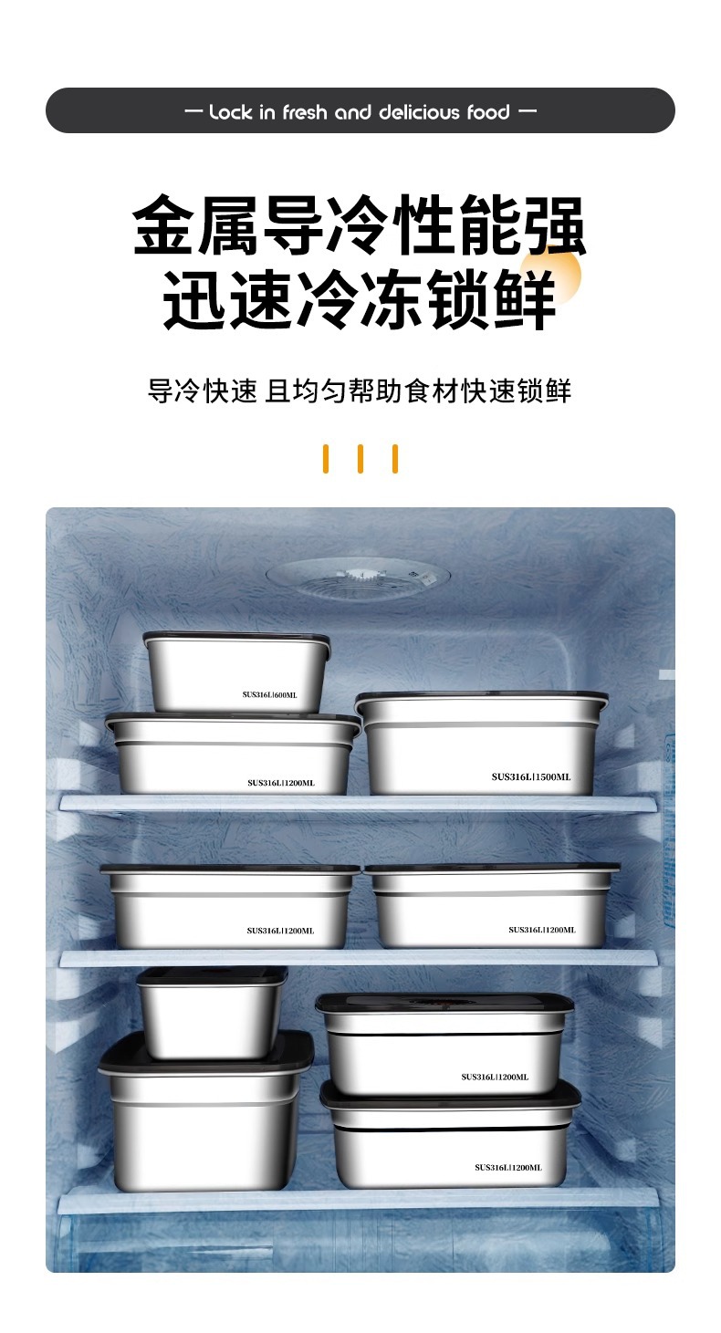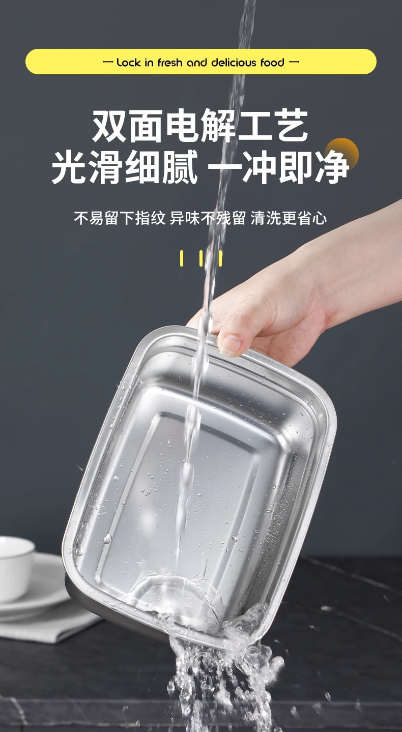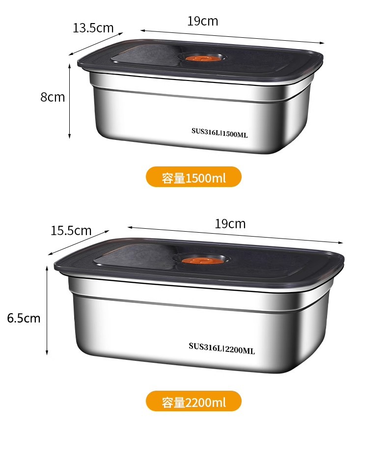 食品级316不锈钢保鲜盒冰箱冷藏专用带盖便携密封便当盒露营饭盒