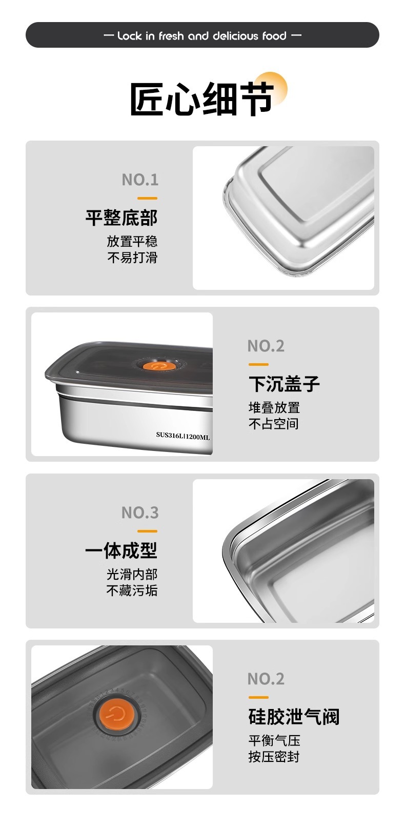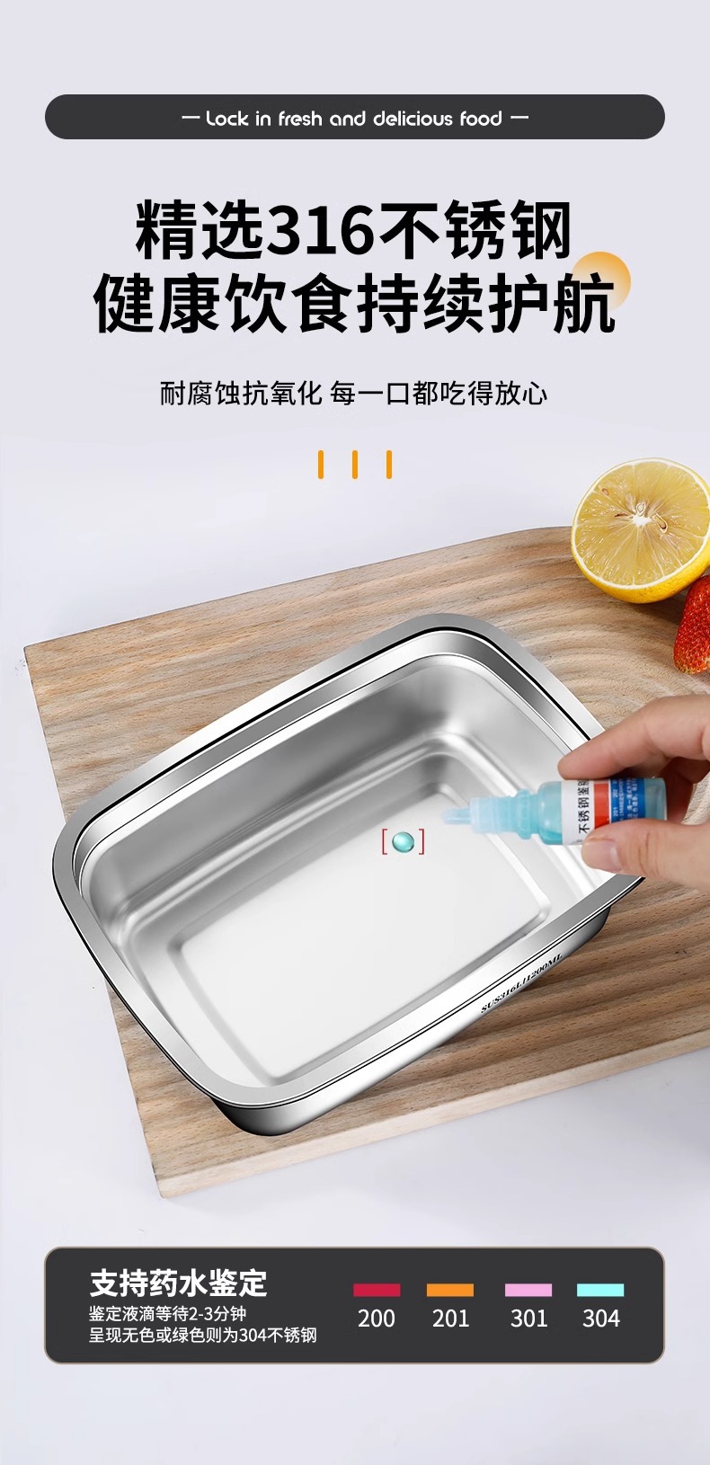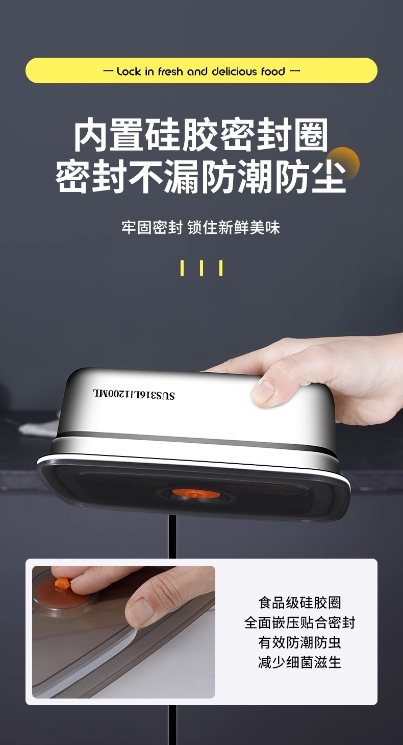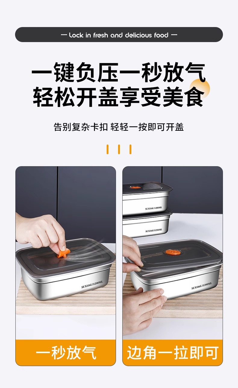 食品级316不锈钢保鲜盒冰箱冷藏专用带盖便携密封便当盒露营饭盒