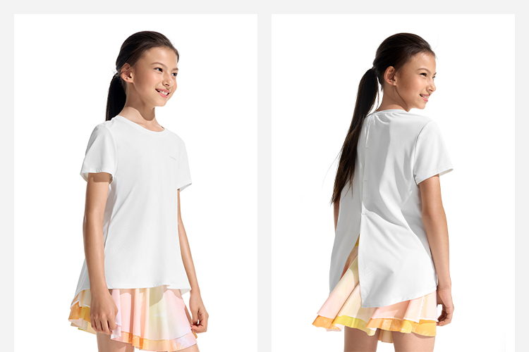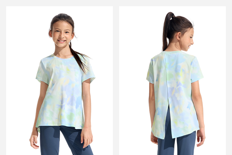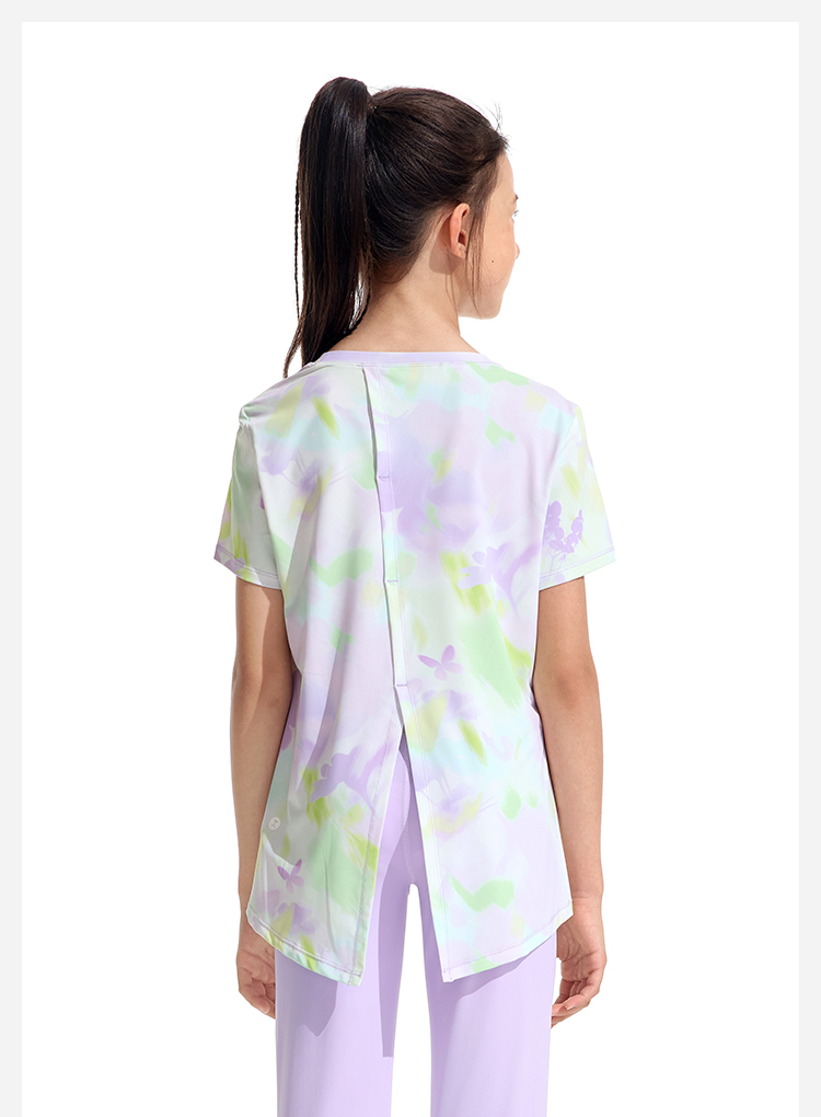 moodytiger女童夏季印花个性背开叉速干短袖T恤欧若风32210103