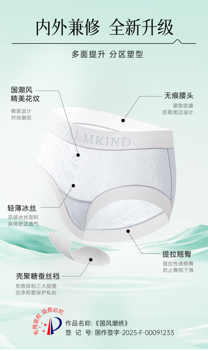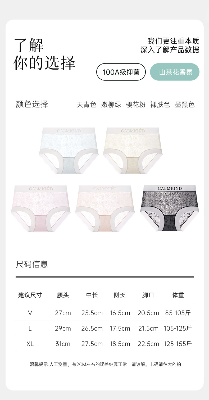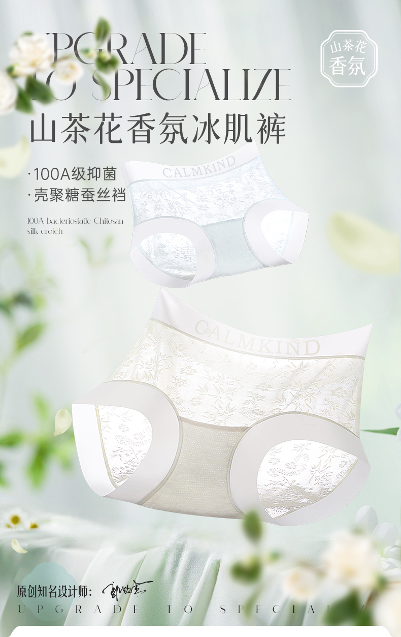 韵梦兰 · 山茶花冰肌内裤 壳聚糖蚕丝内档 亲肤呵护 冰丝纤维 丝滑触感 轻薄裸感 透气速干
