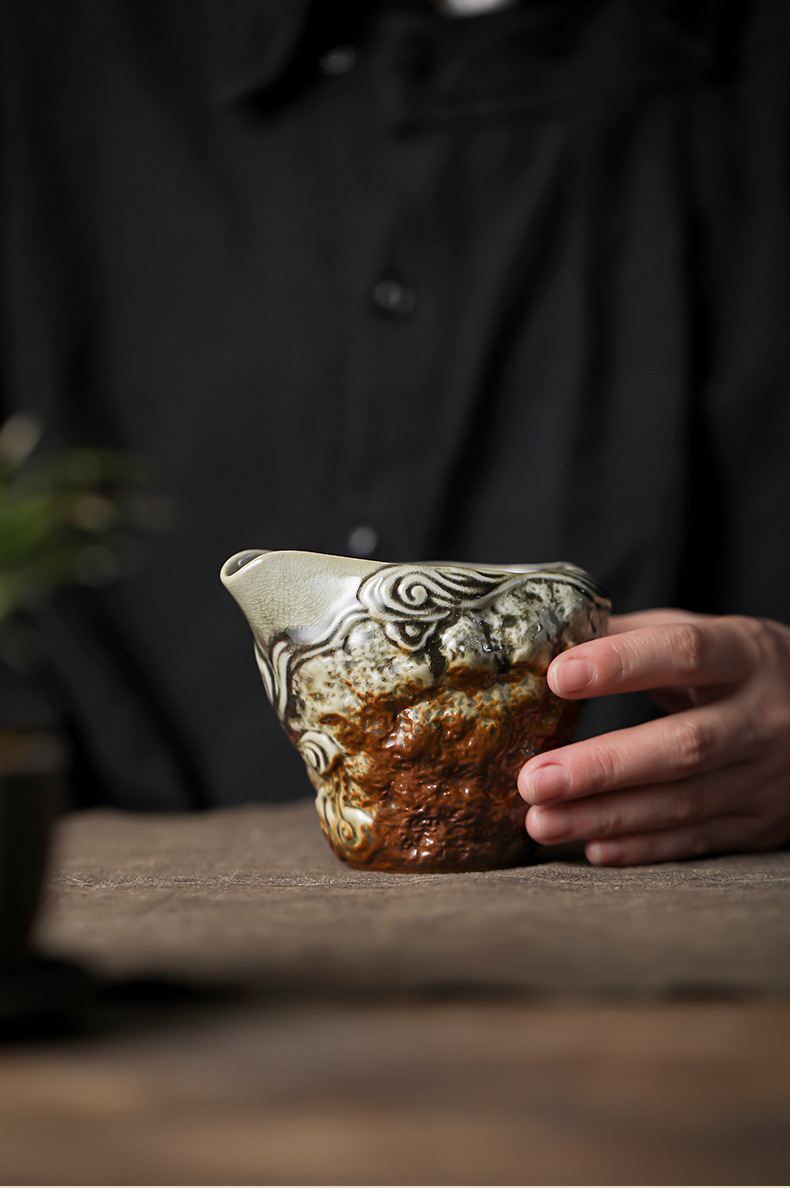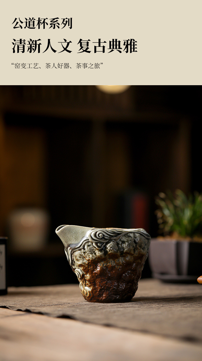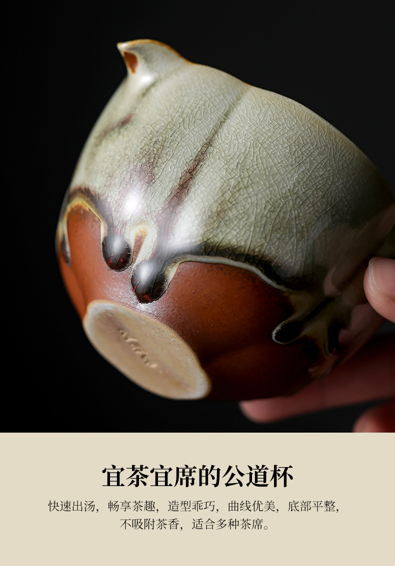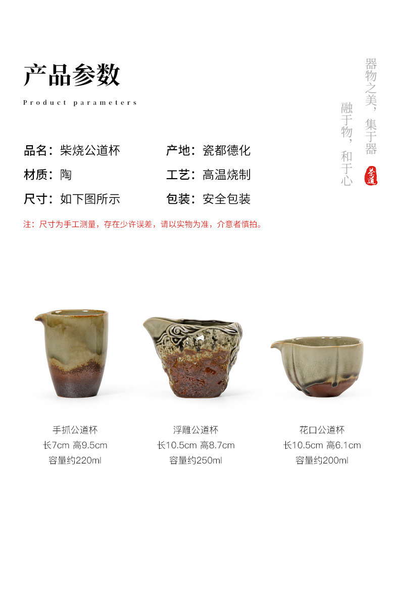 仿古手工柴烧公道杯陶瓷大容量均茶器茶海均杯家用胎厚釉功夫茶具