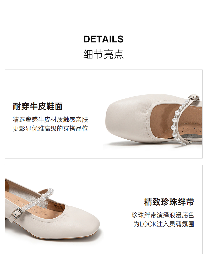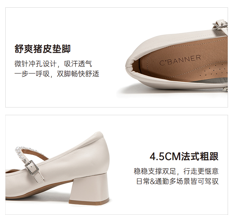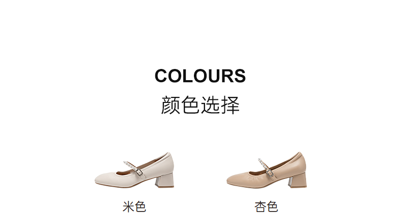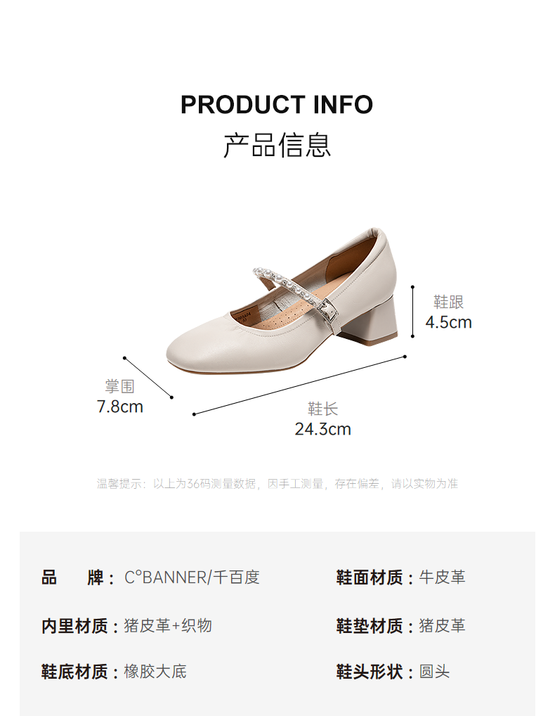 千百度粗高跟牛皮玛丽珍鞋女方头小香风通勤晚晚单鞋A25108303