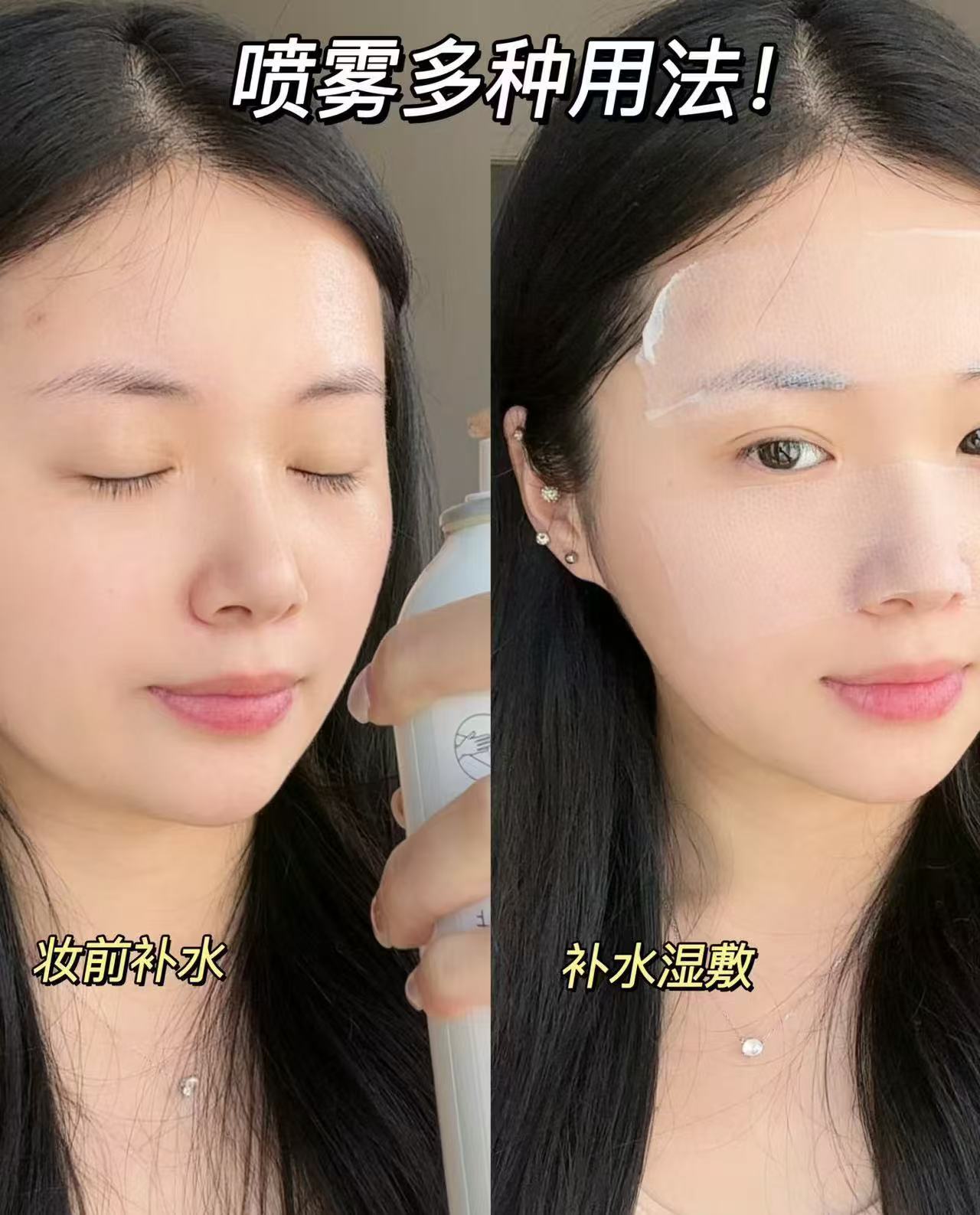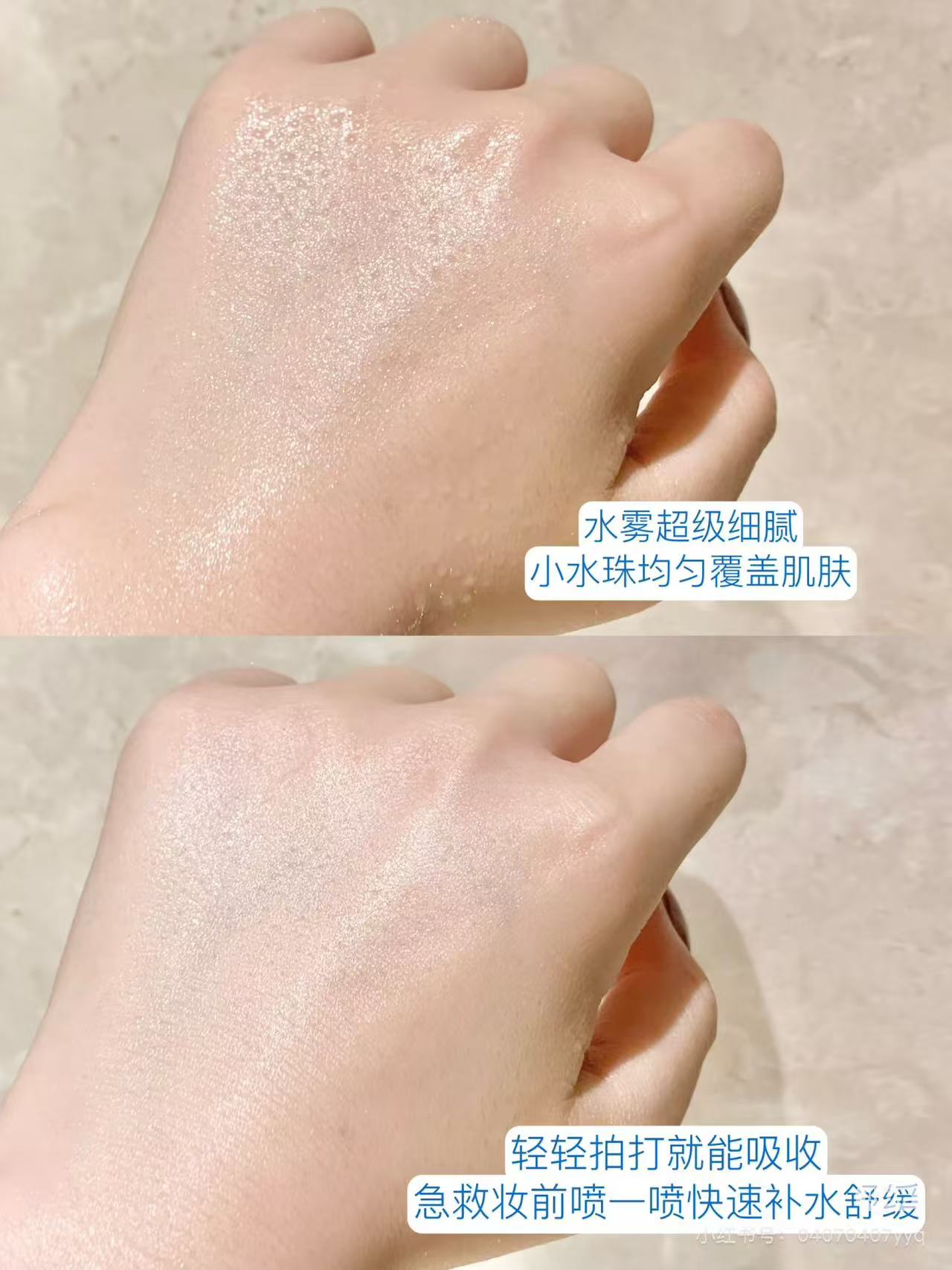 极细绵柔水雾喷在皮肤形成一层细细的水膜,