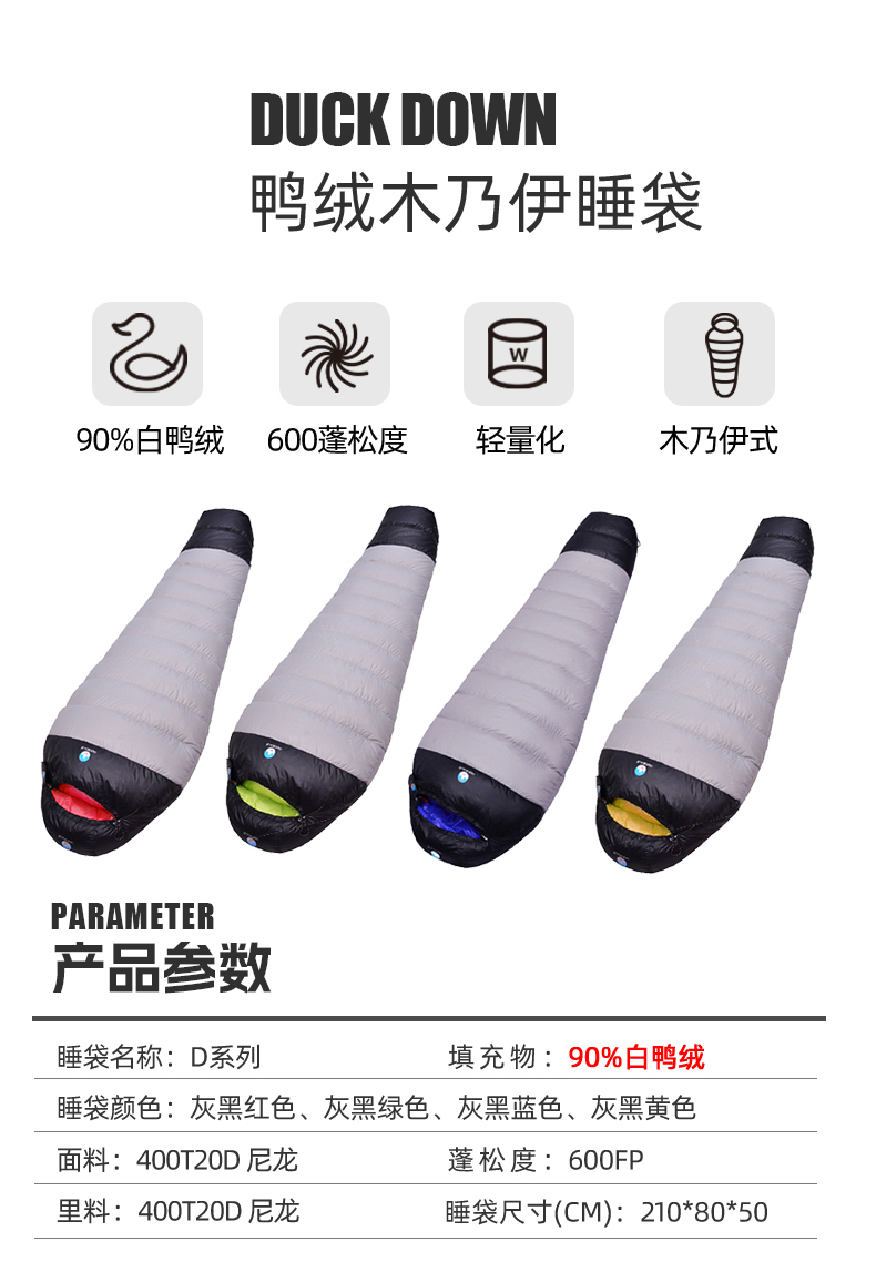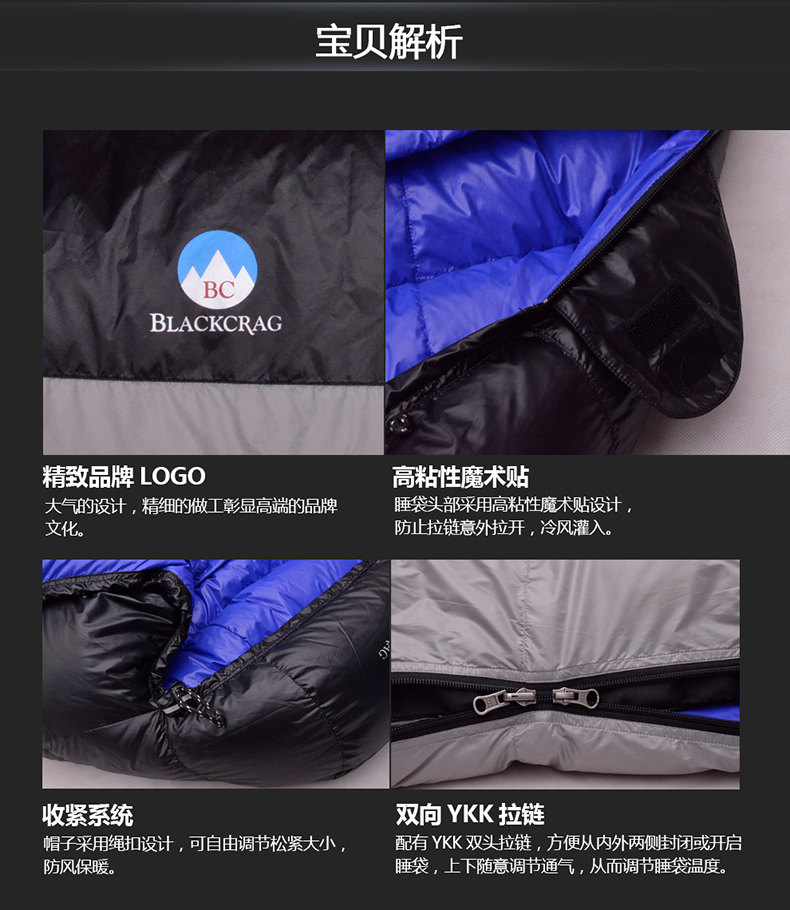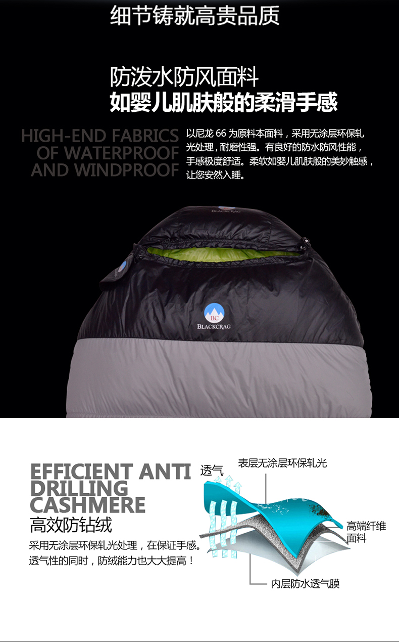 BLACKCRAG/黑岩 超轻羽绒睡袋户外野营防水D400/D700/D1000/D1500