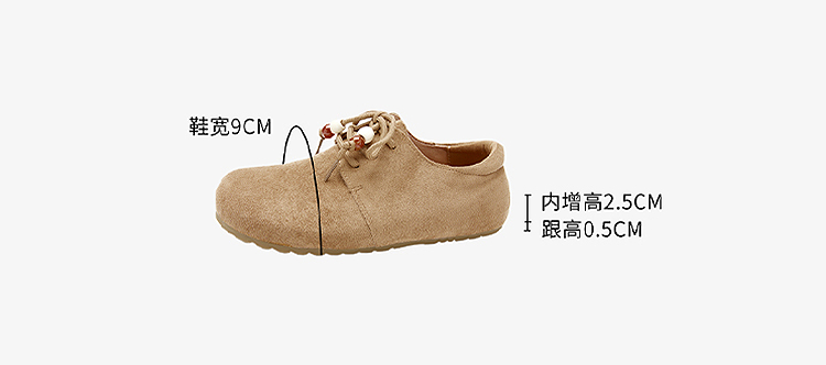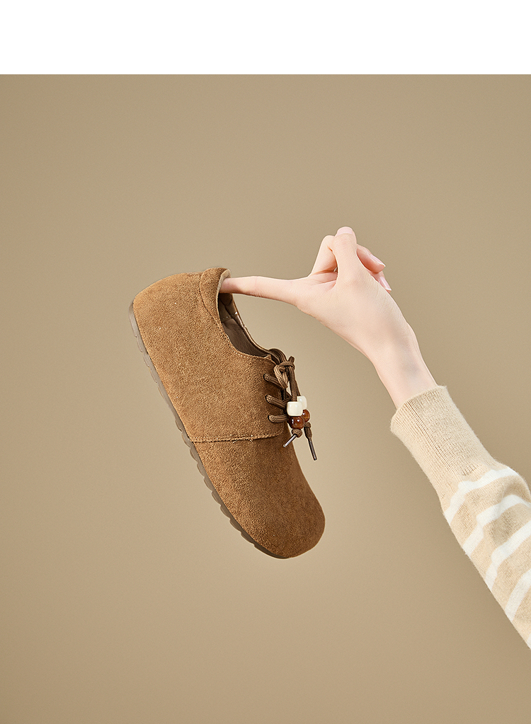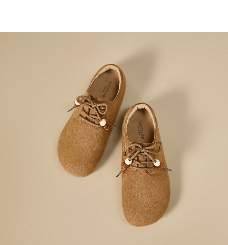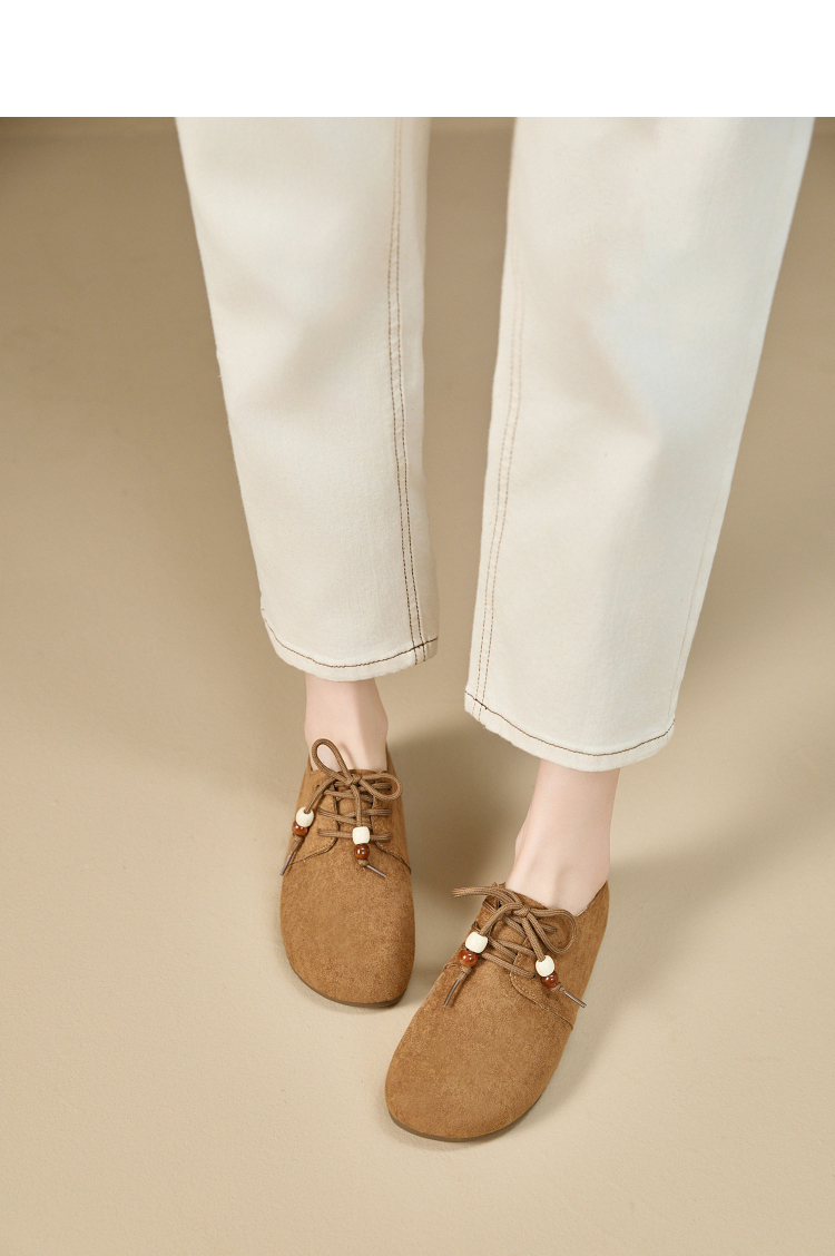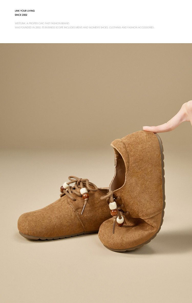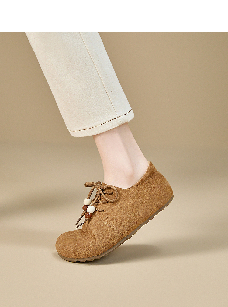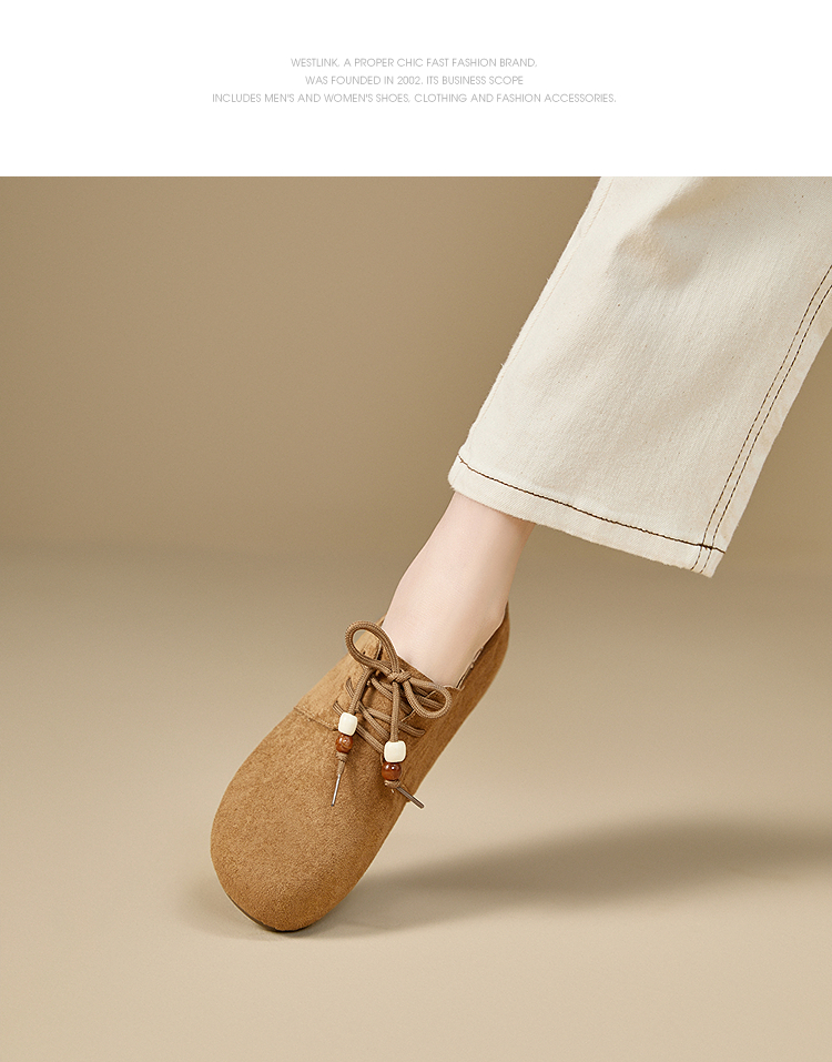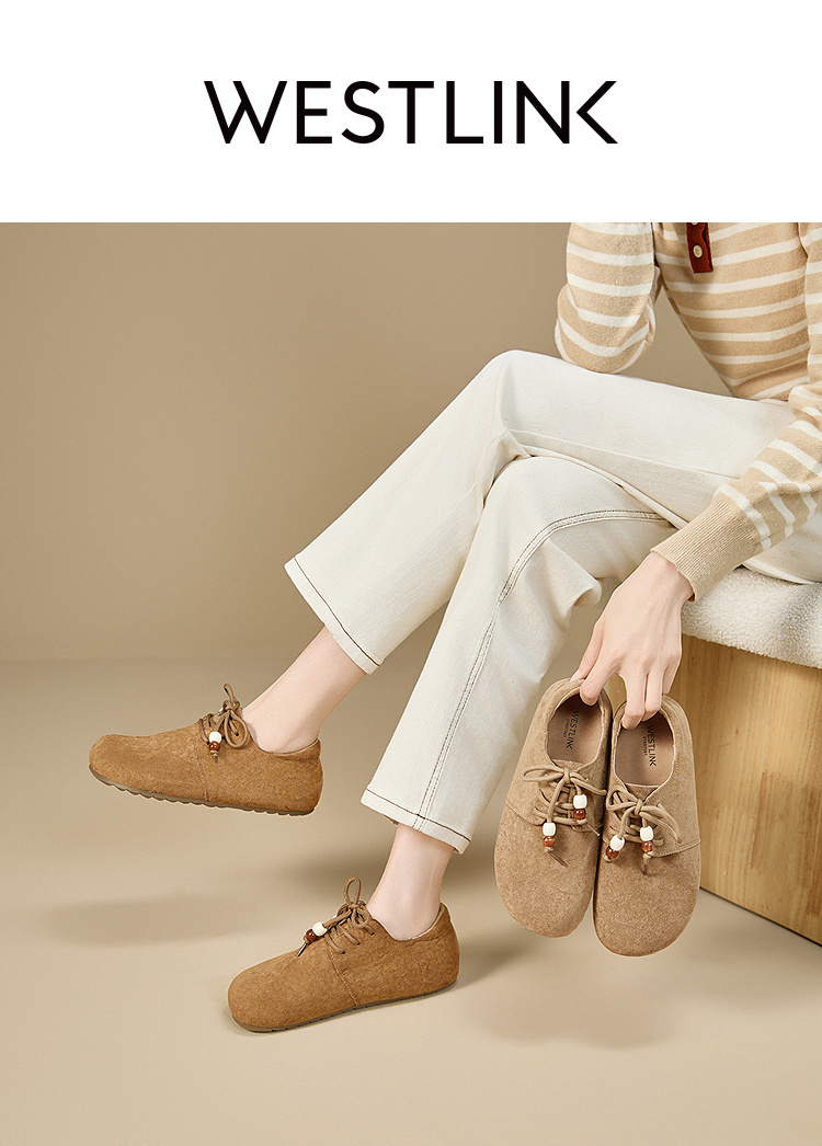 【限时秒杀】西遇平底勃肯鞋女新款秋季复古百搭袋鼠鞋圆头软底系带小皮鞋V1857061