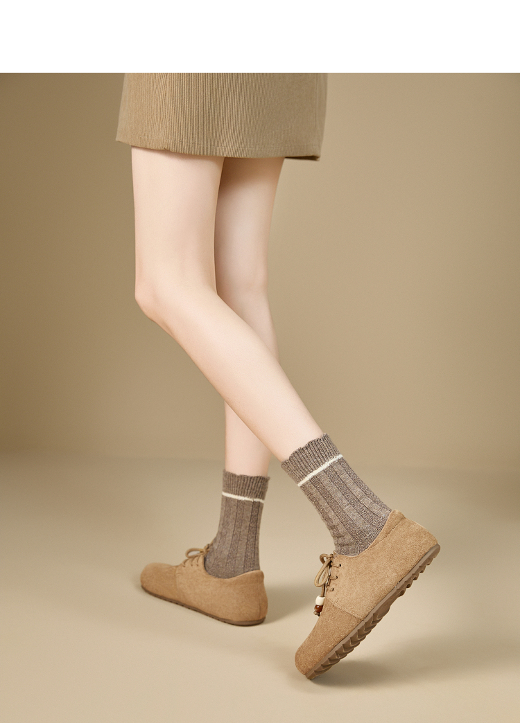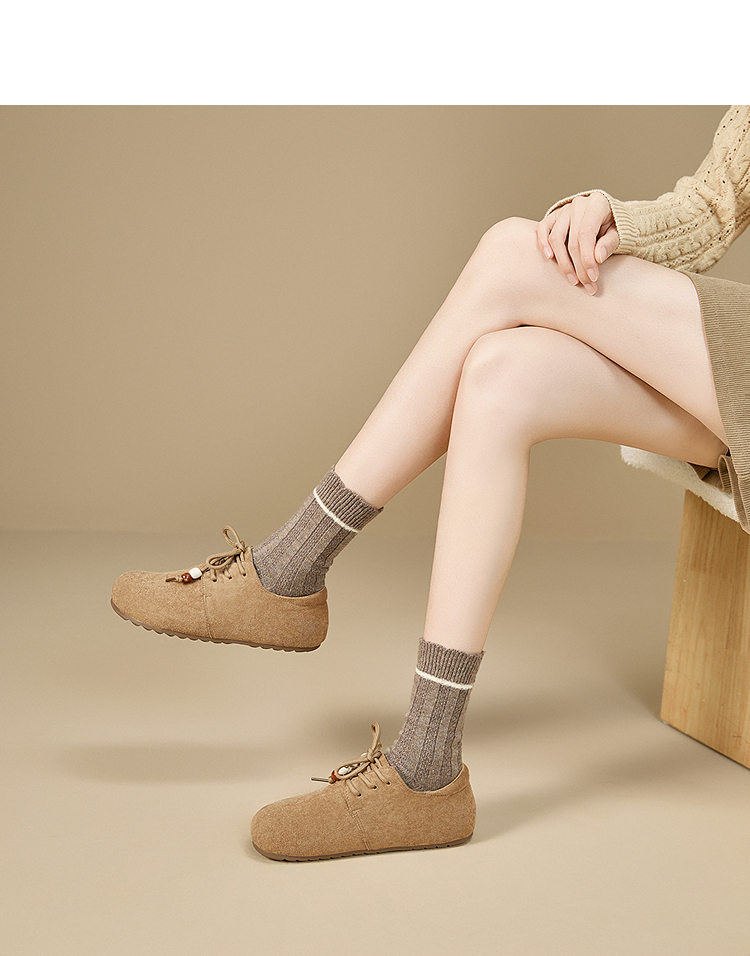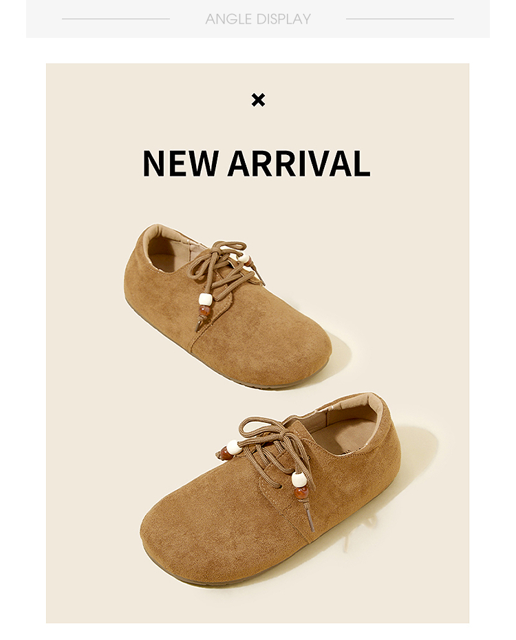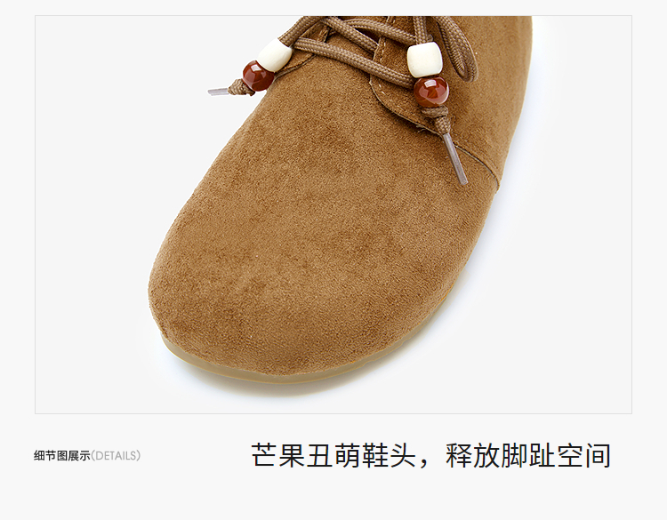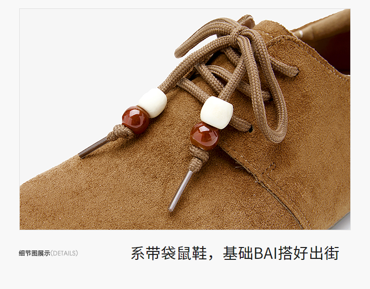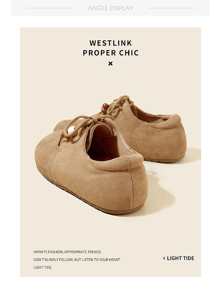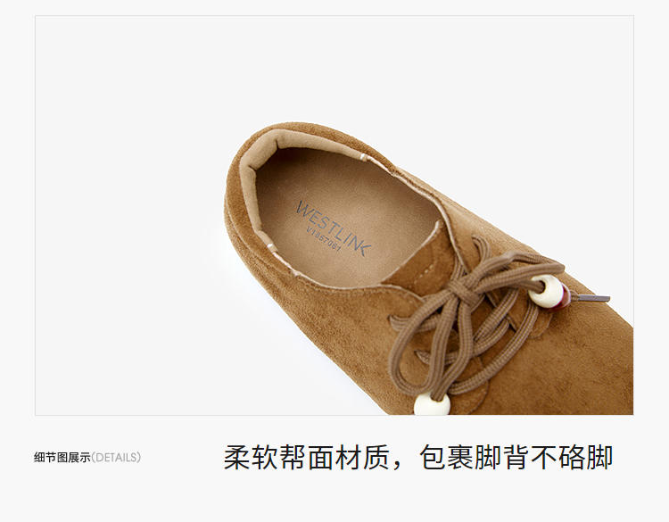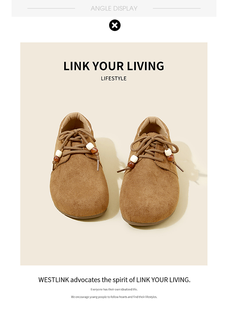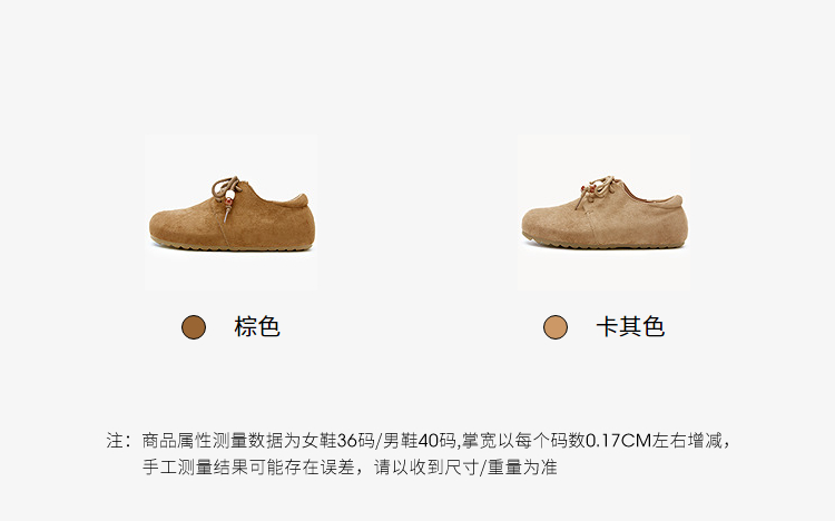 【限时秒杀】西遇平底勃肯鞋女新款秋季复古百搭袋鼠鞋圆头软底系带小皮鞋V1857061