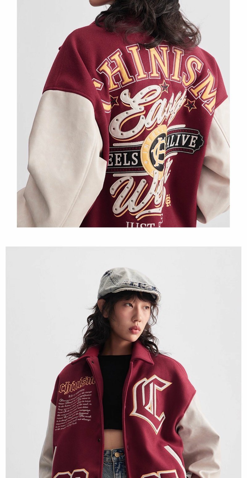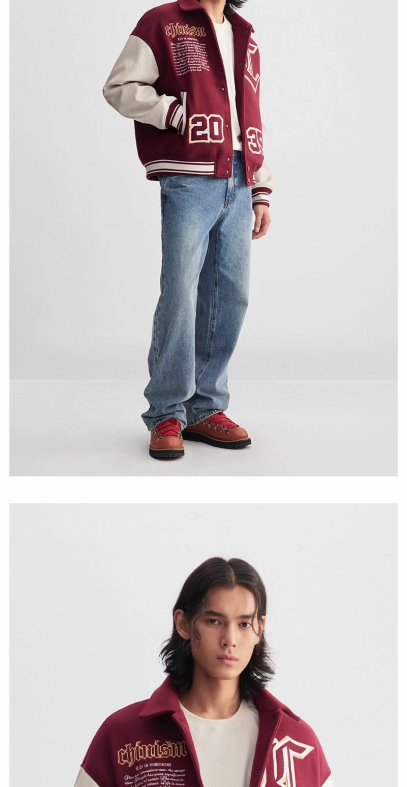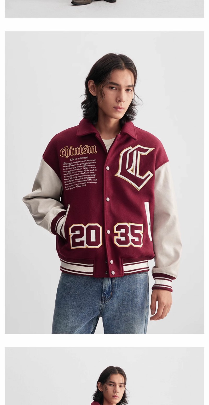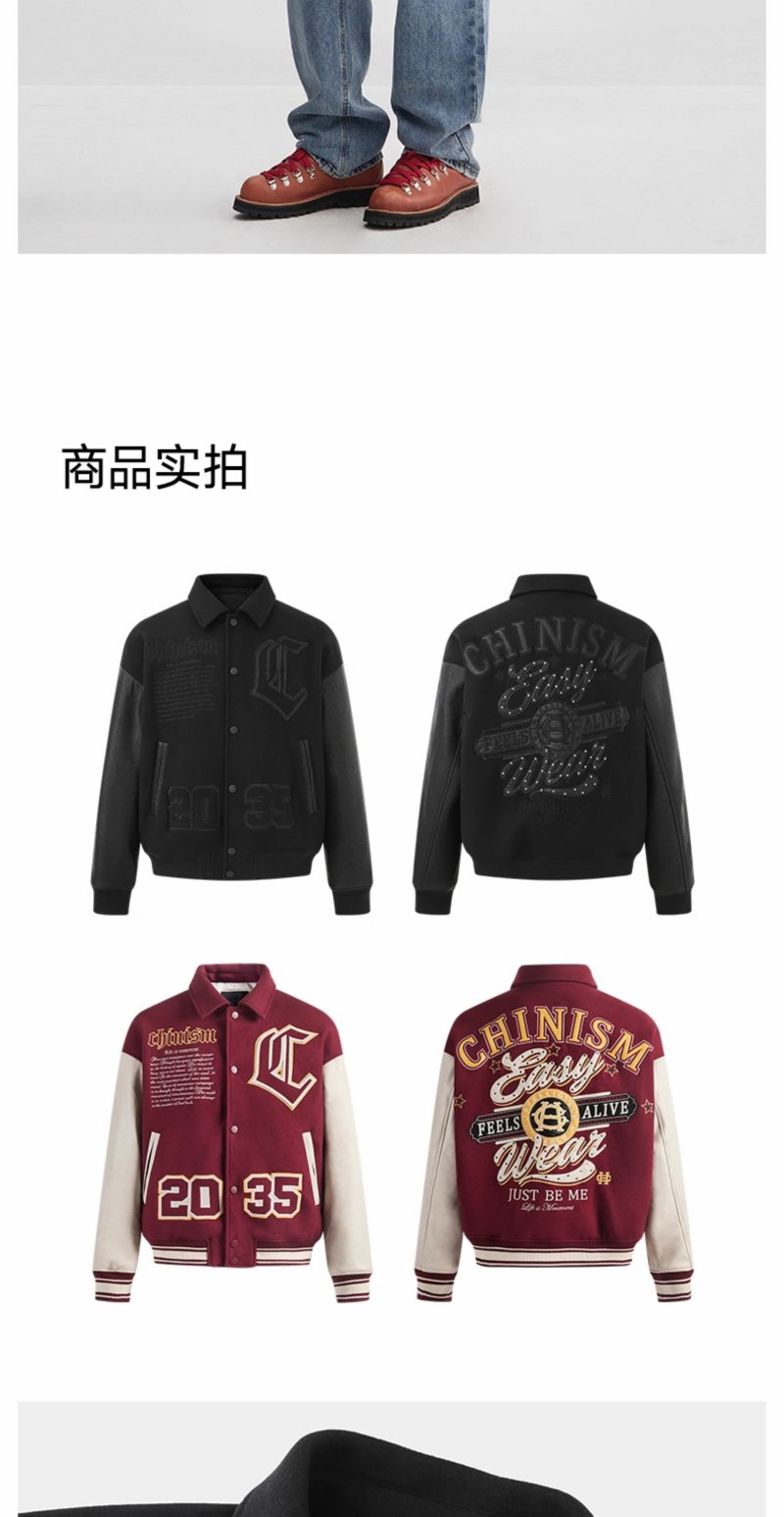 CHINISM赤尘 毛呢拼接翻领棒球夹克男秋季新款美式街头潮牌外套
