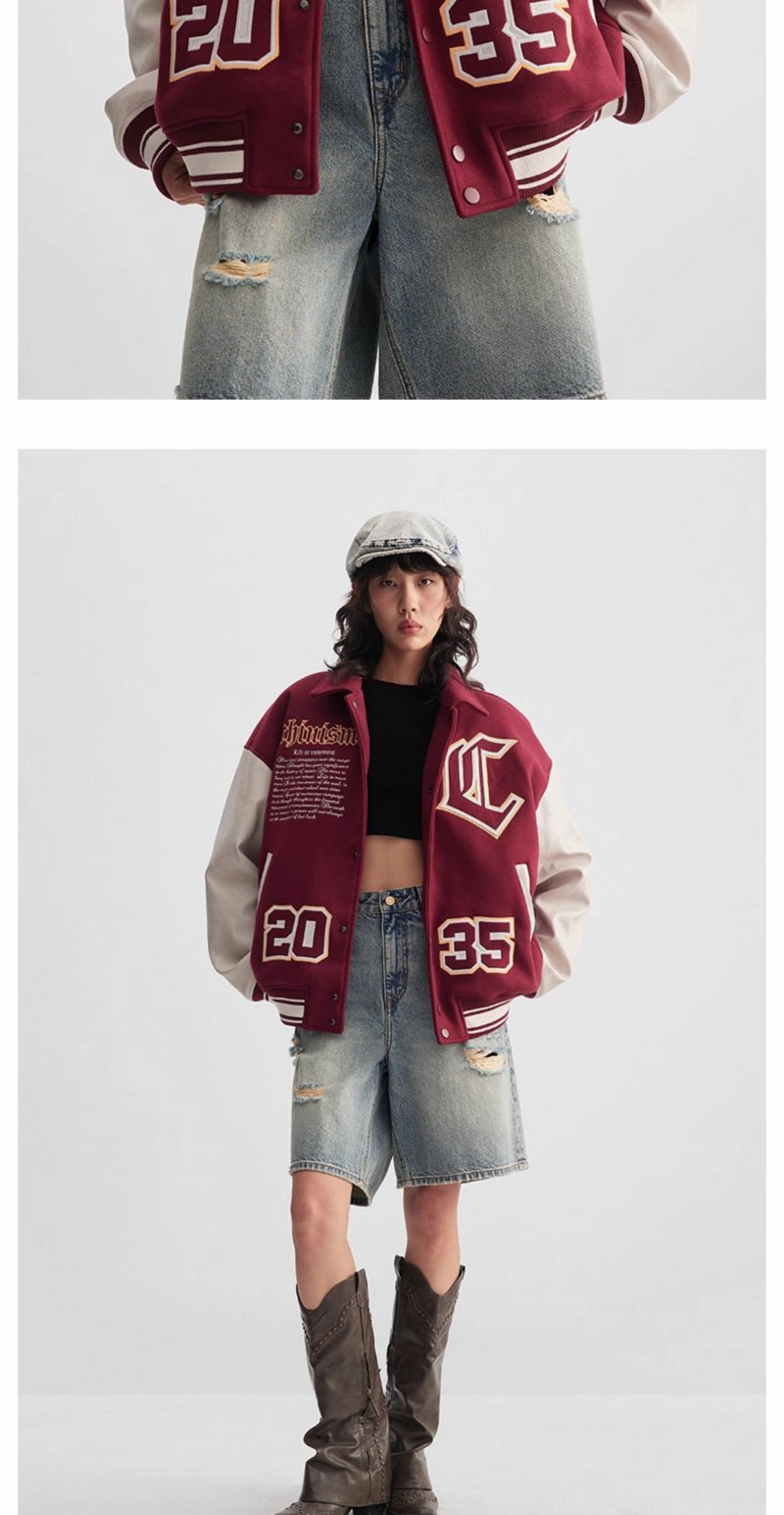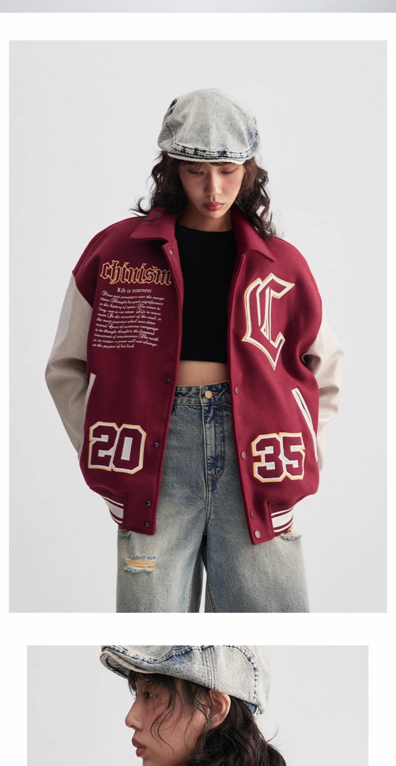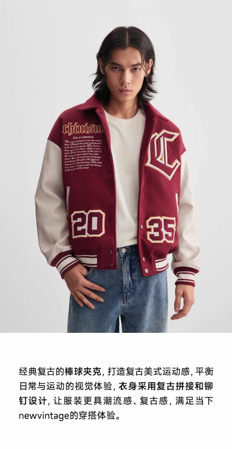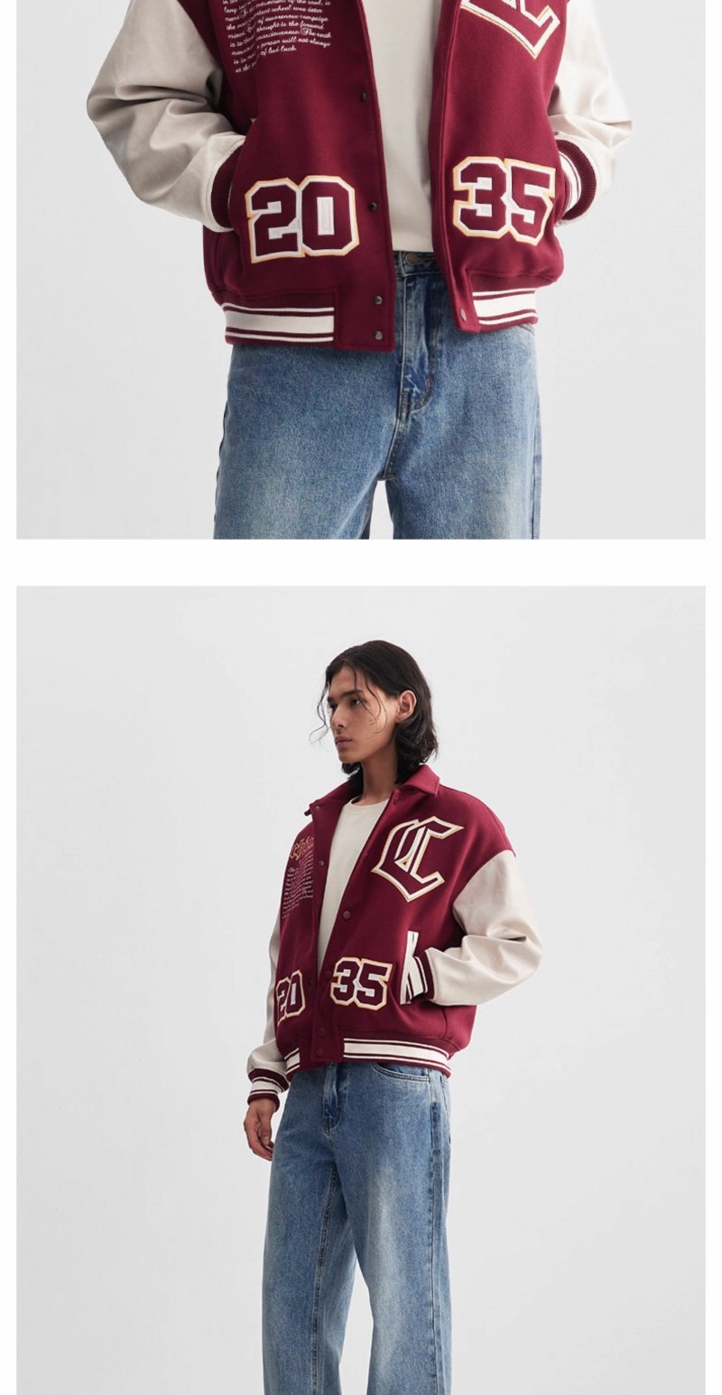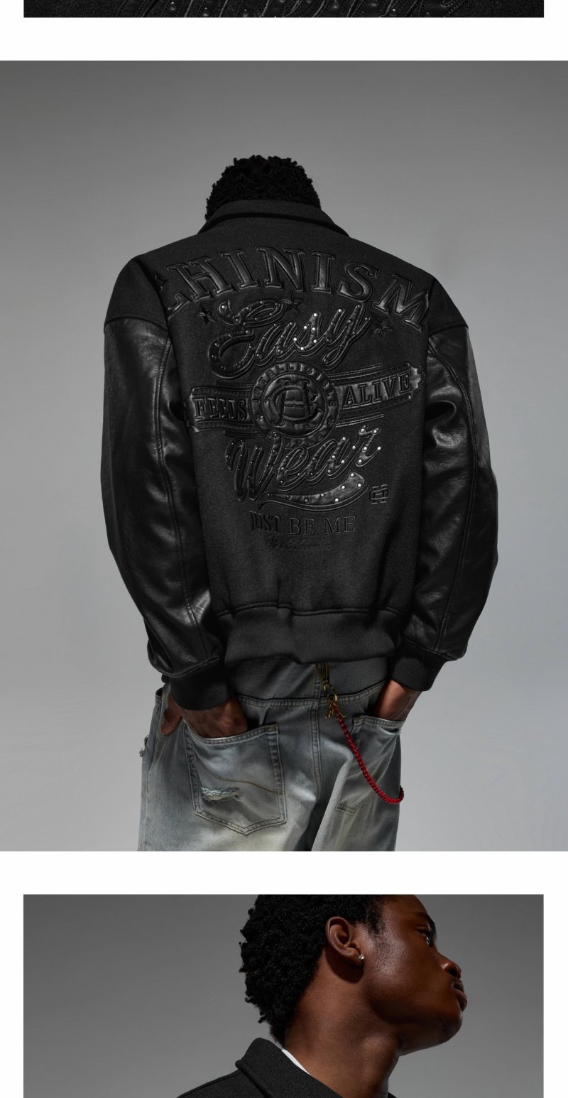 CHINISM赤尘 毛呢拼接翻领棒球夹克男秋季新款美式街头潮牌外套