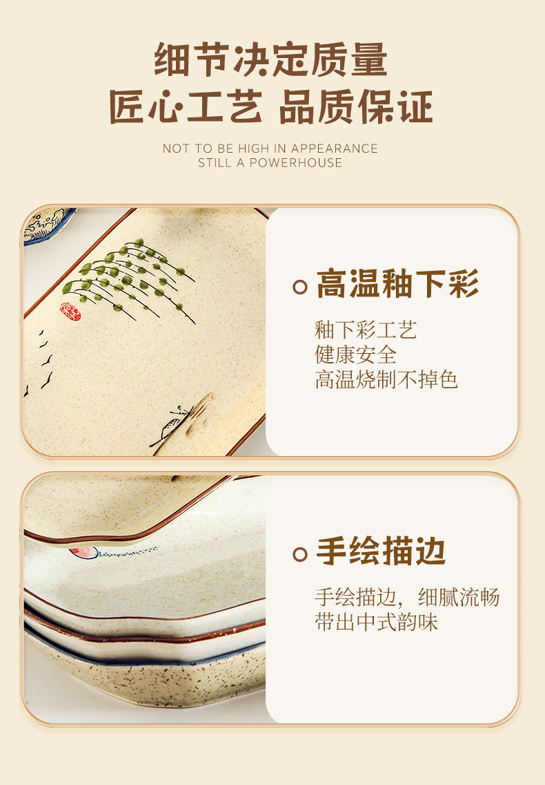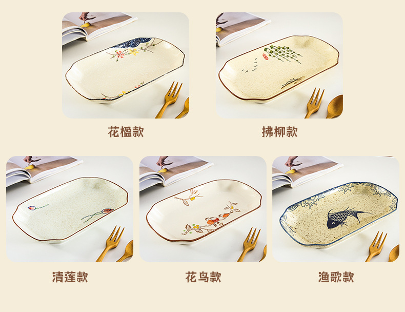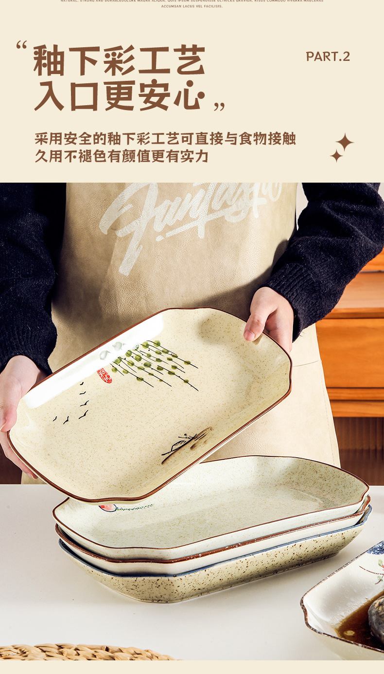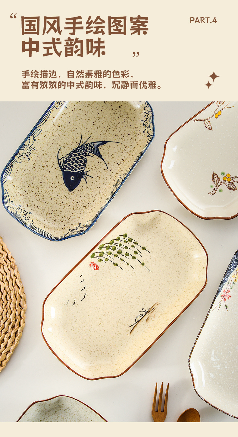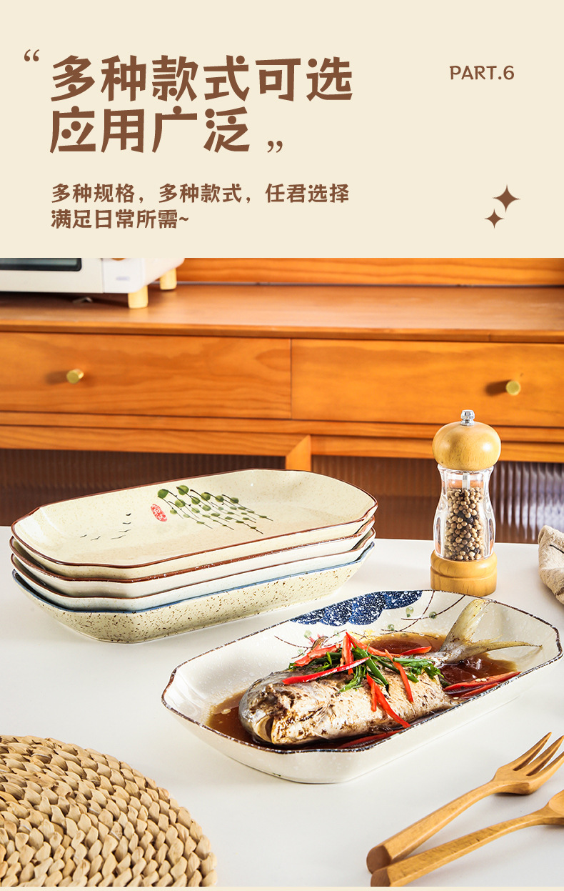 【出口陶瓷鱼盘】中式大号陶瓷鱼盘家用厨房长方形蒸鱼深盘餐厅饭店釉下彩餐具菜盘