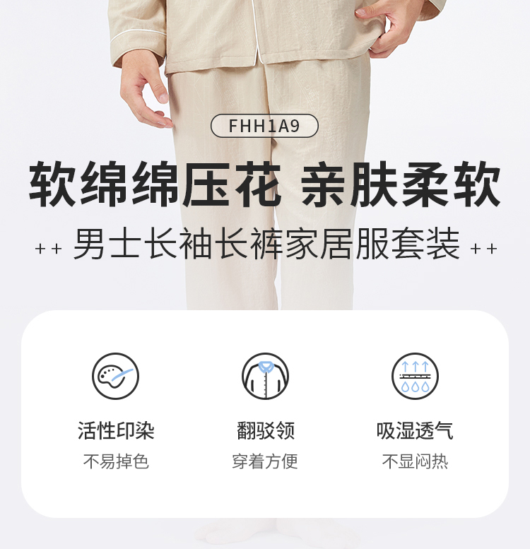 都市丽人男士软绵绵长袖套装薄软绵绵压花好睡好眠长袖类FHH1A9