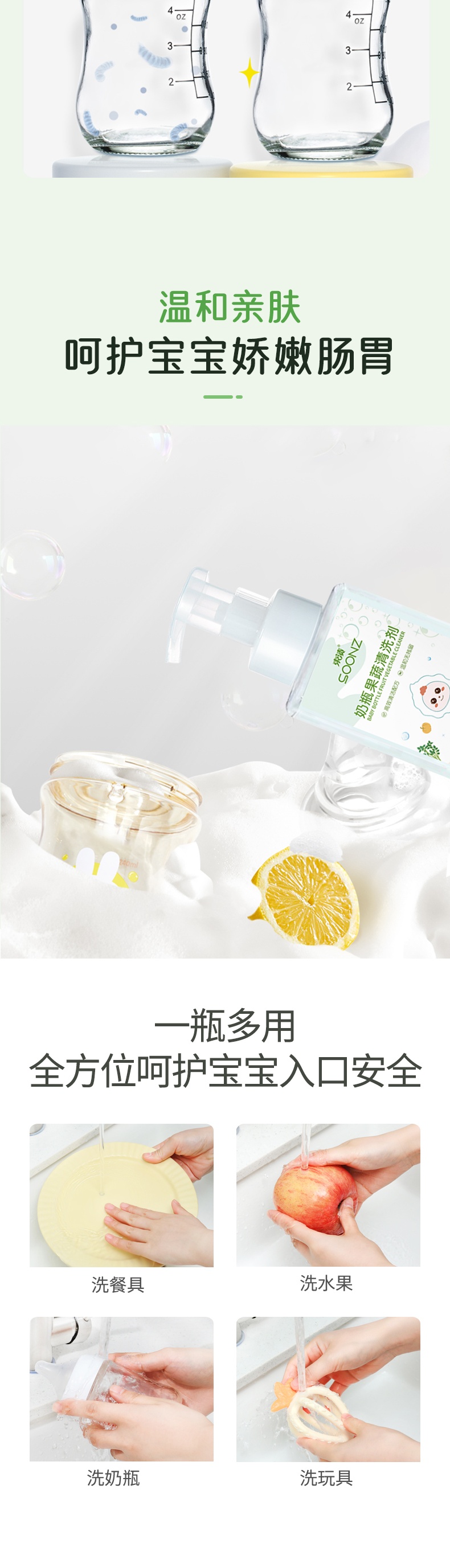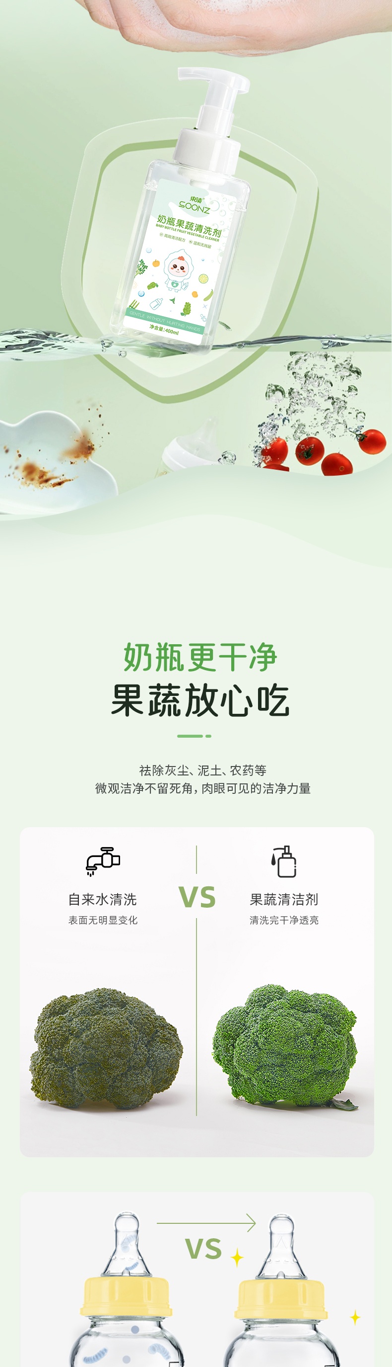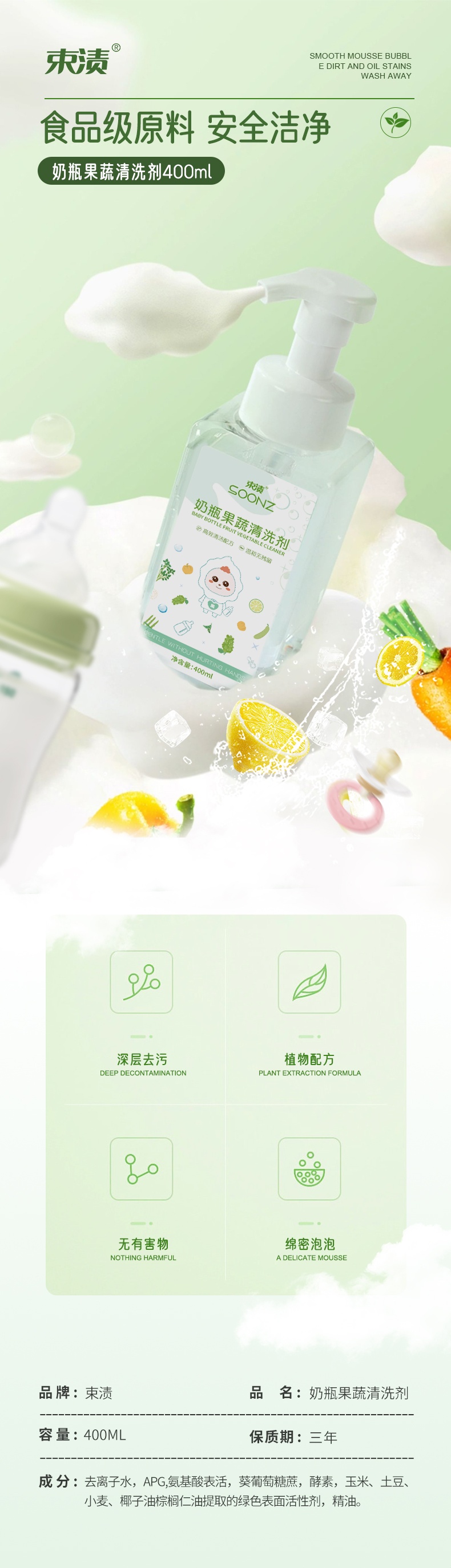 【自营】束渍-奶瓶果蔬清洗剂(400ml)食品级安全去奶渍洗果蔬