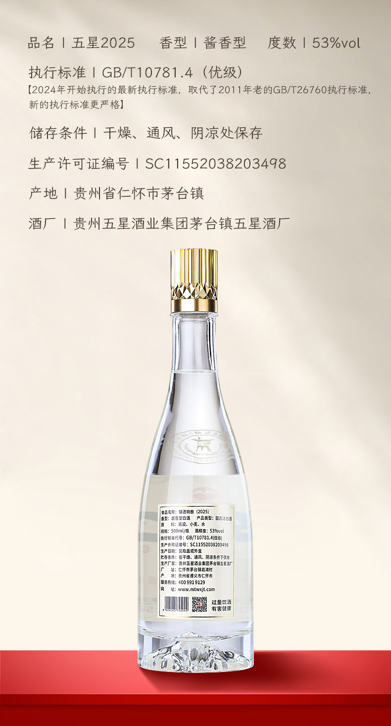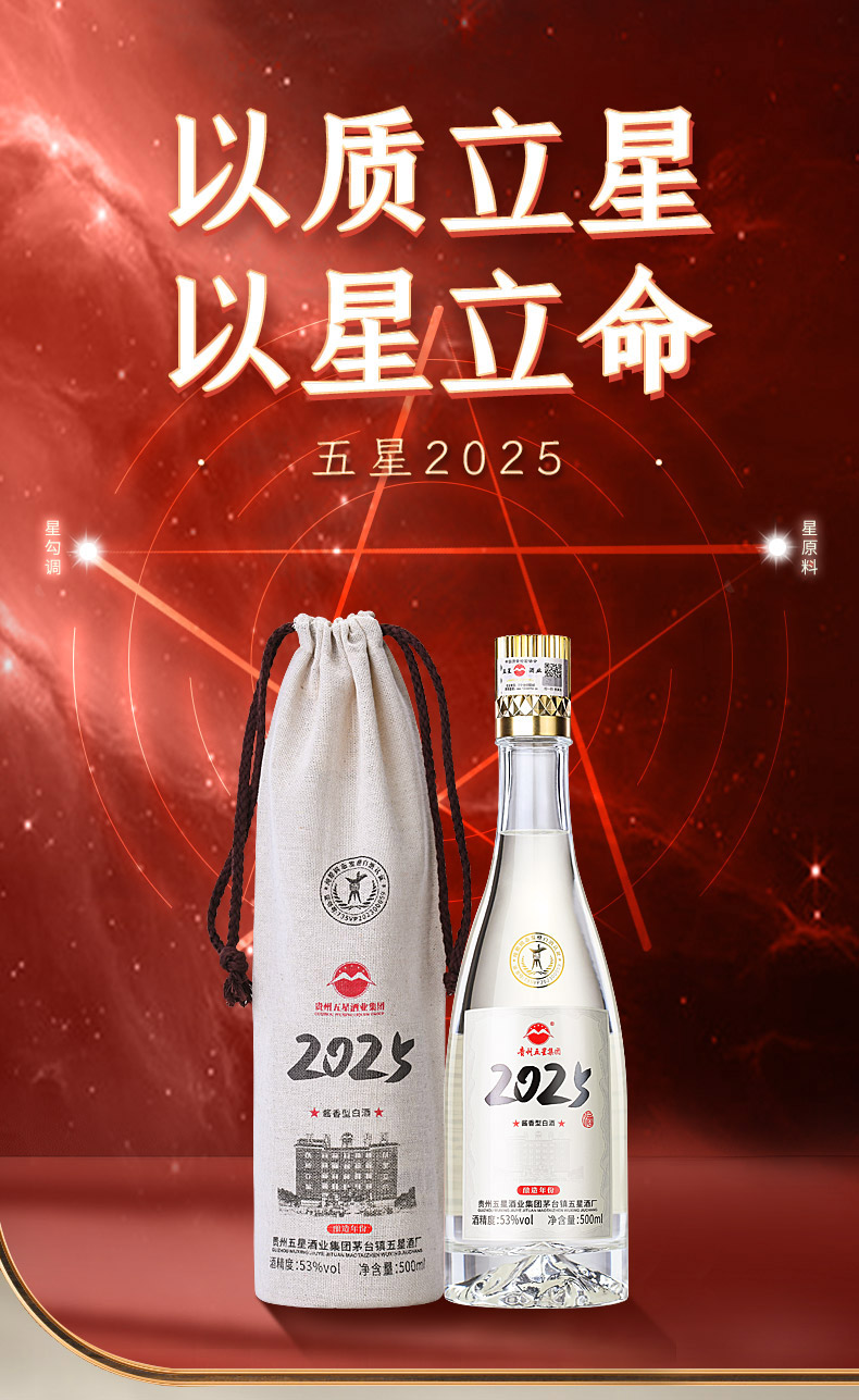 【酒厂直营】五星2025 500ml 6瓶整箱 53度酱香型白酒