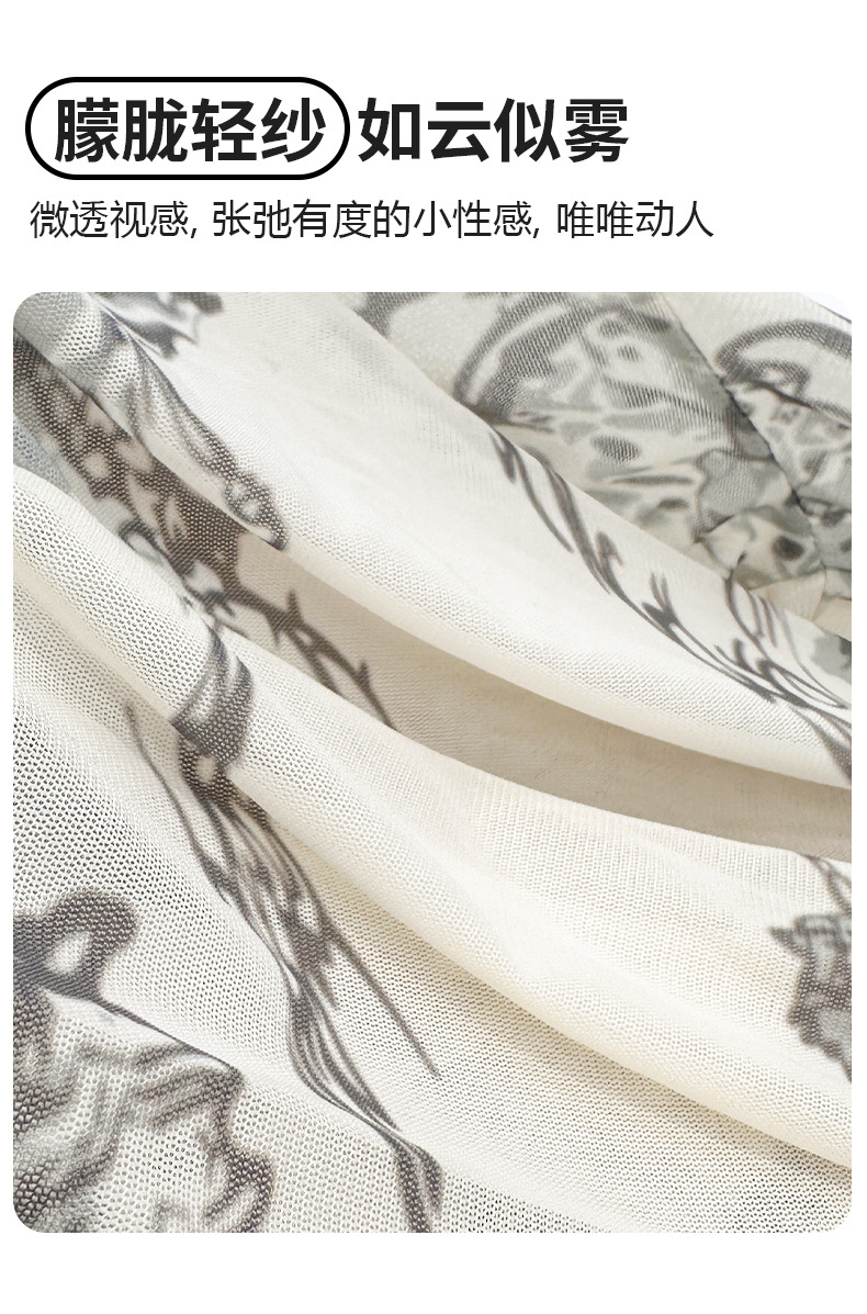 加工定制两件套女网纱水墨印花长袖健身罩衫褶皱绑带防晒瑜伽套装 商品图5