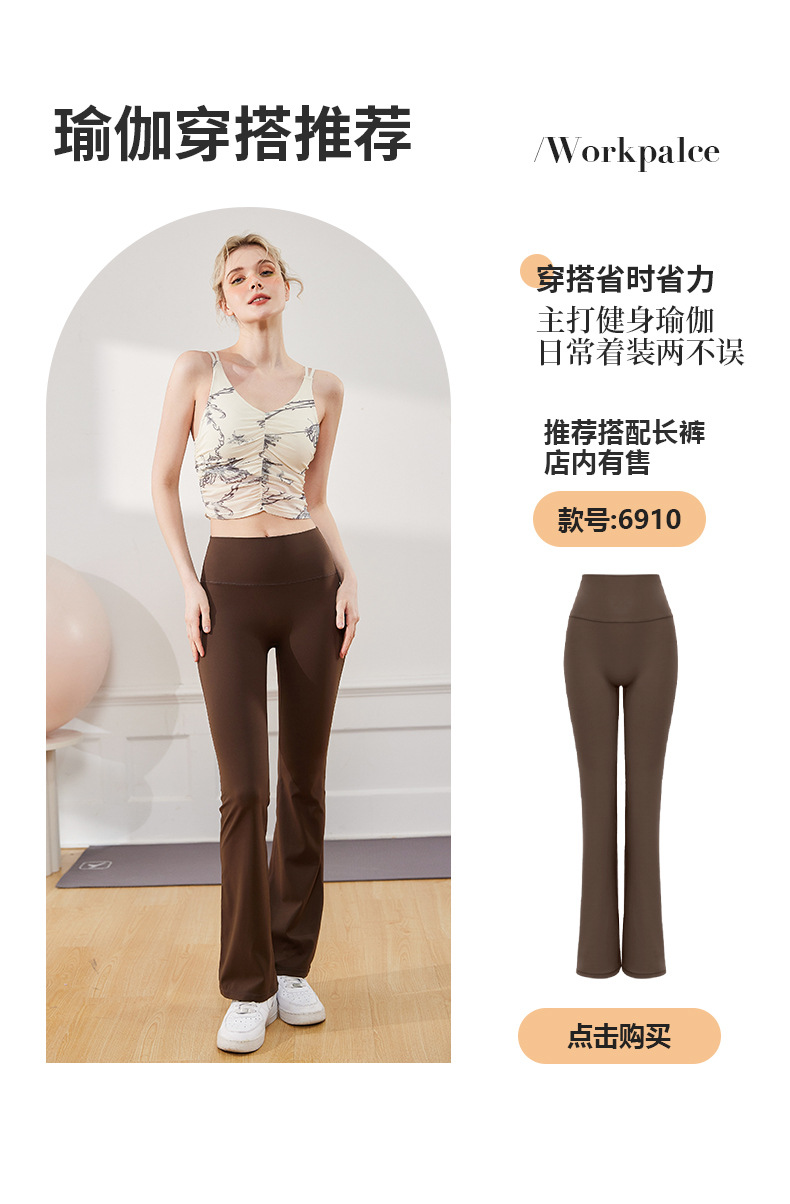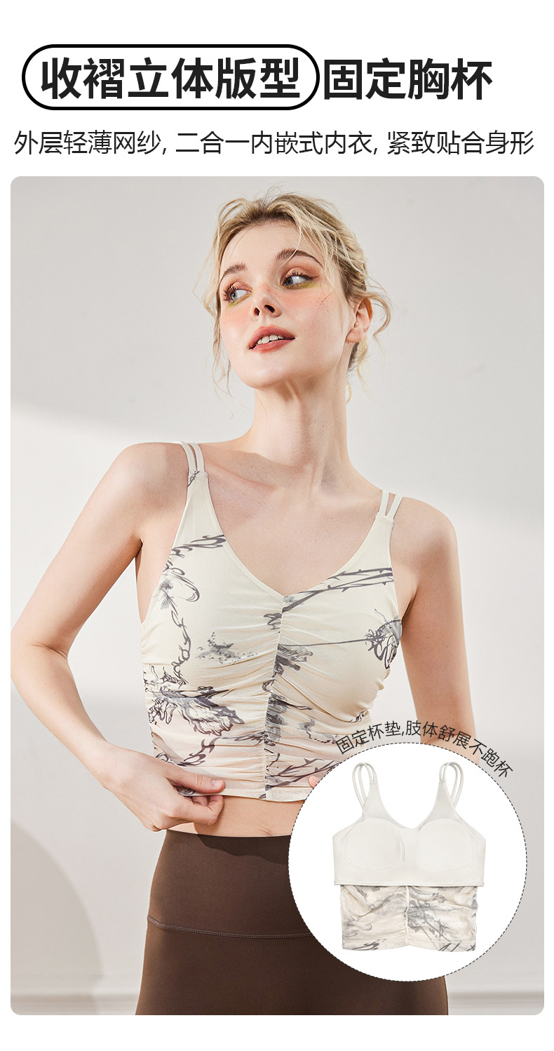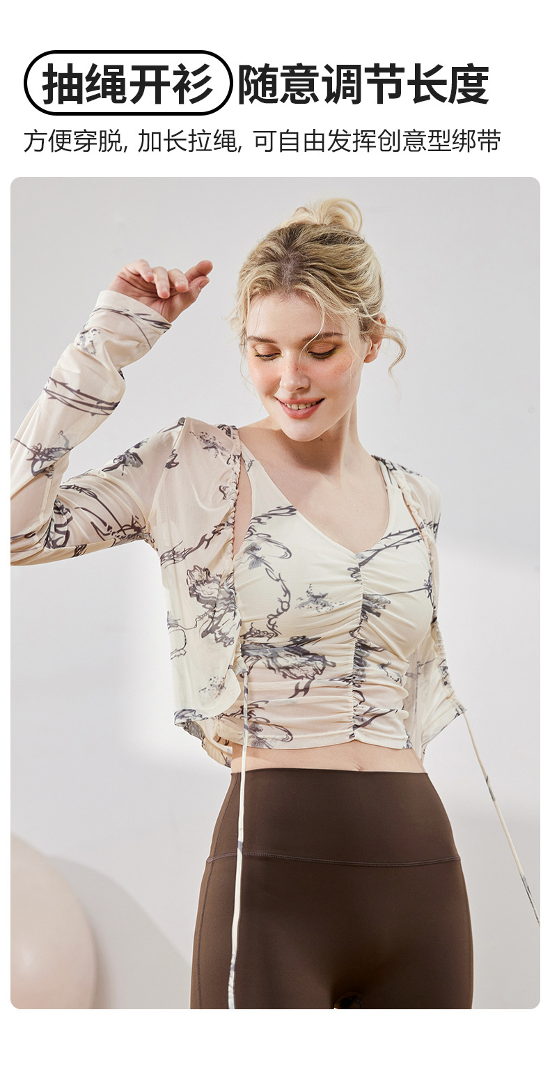 加工定制两件套女网纱水墨印花长袖健身罩衫褶皱绑带防晒瑜伽套装 商品图6