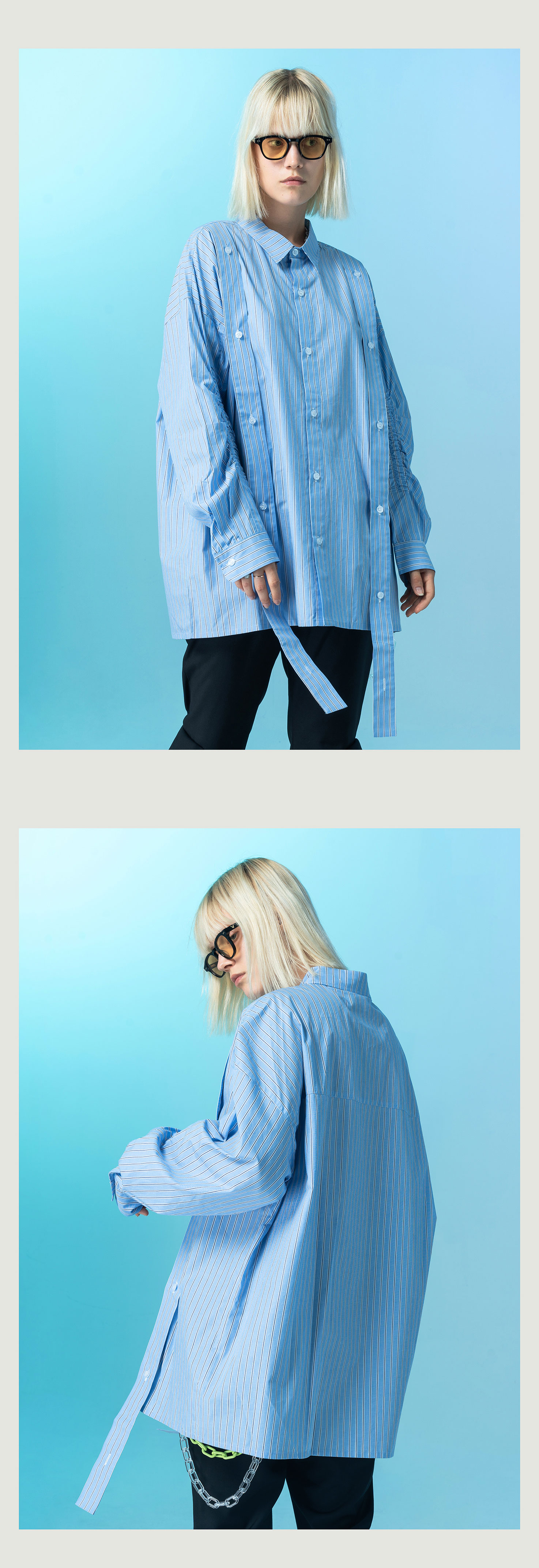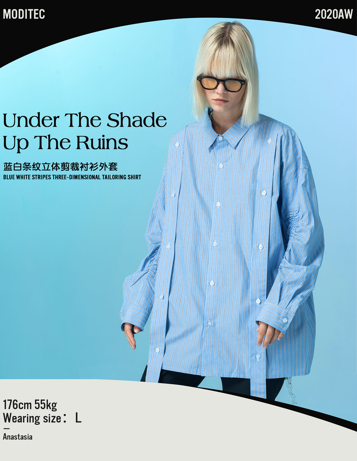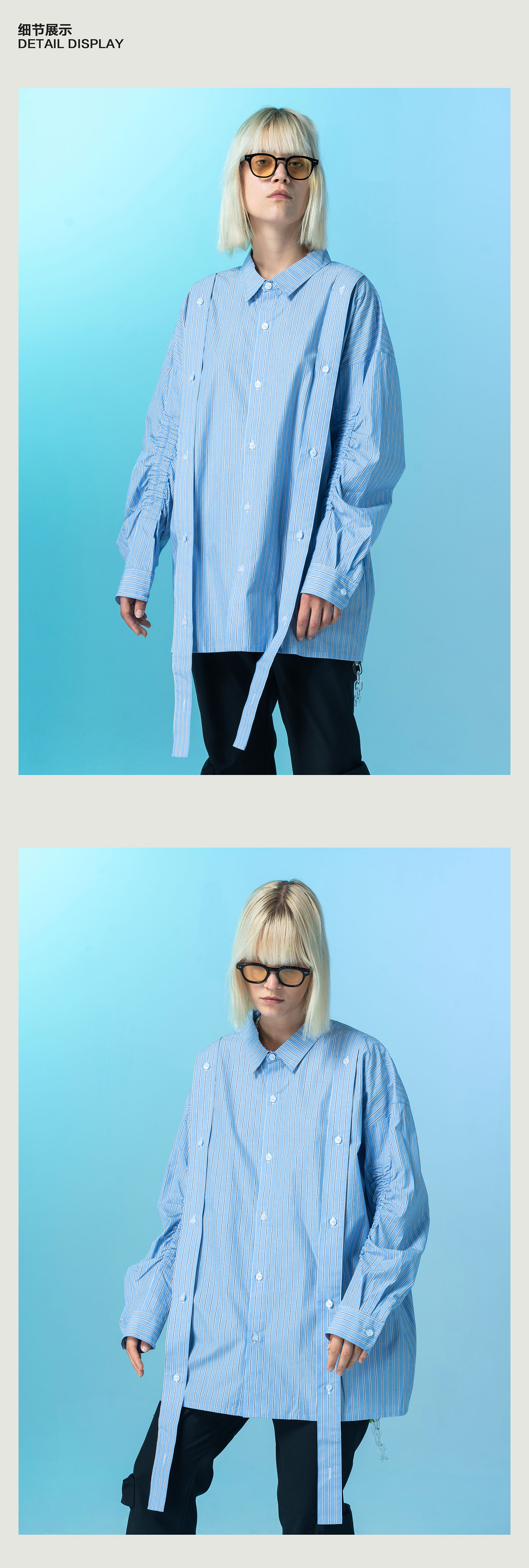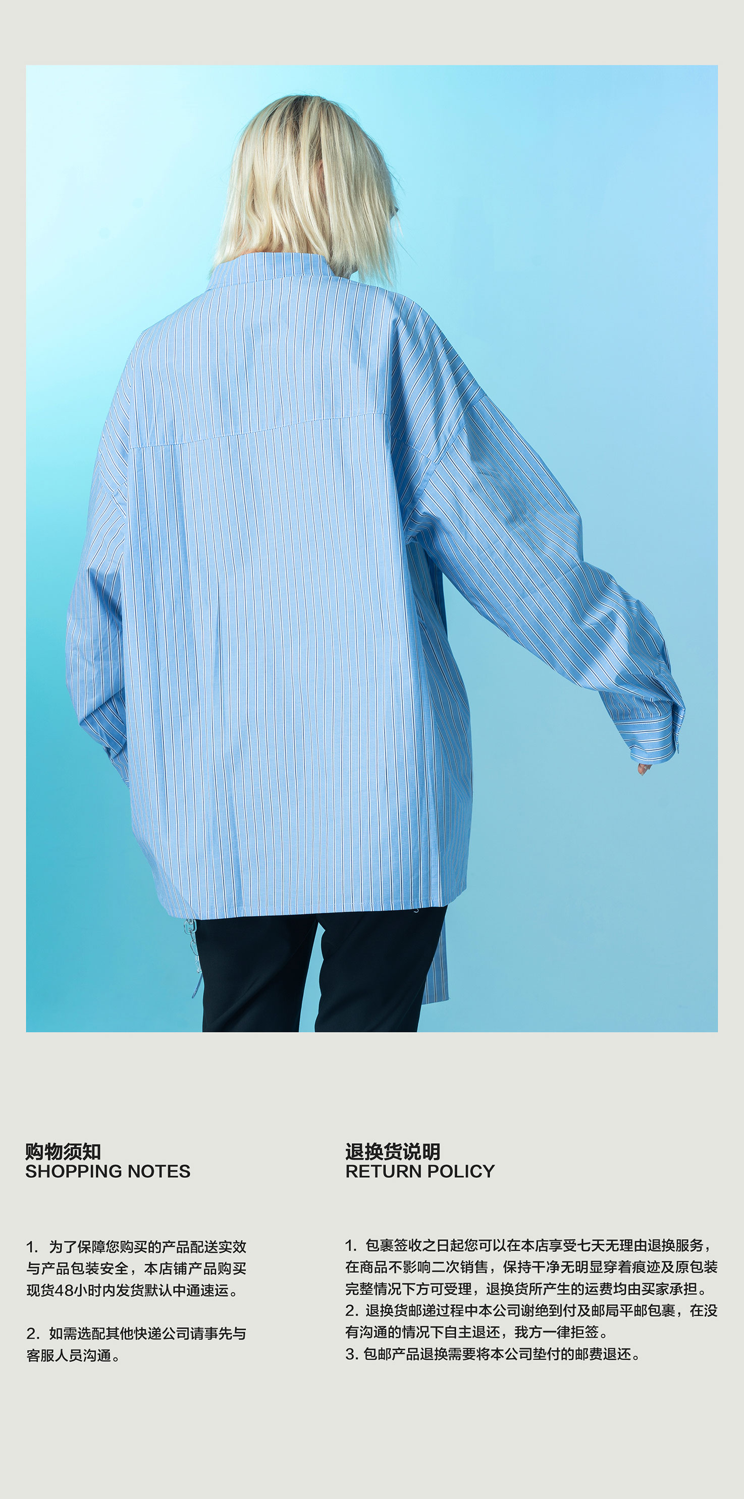 | 领型: 尖领(常规) | 颜色: 蓝白条纹 |