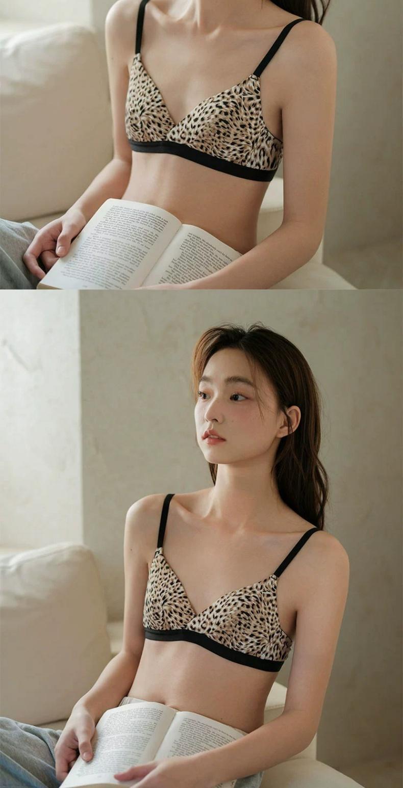 纯欲豹纹三角杯小胸内衣女无钢圈舒适防下垂透气文胸罩套装新款