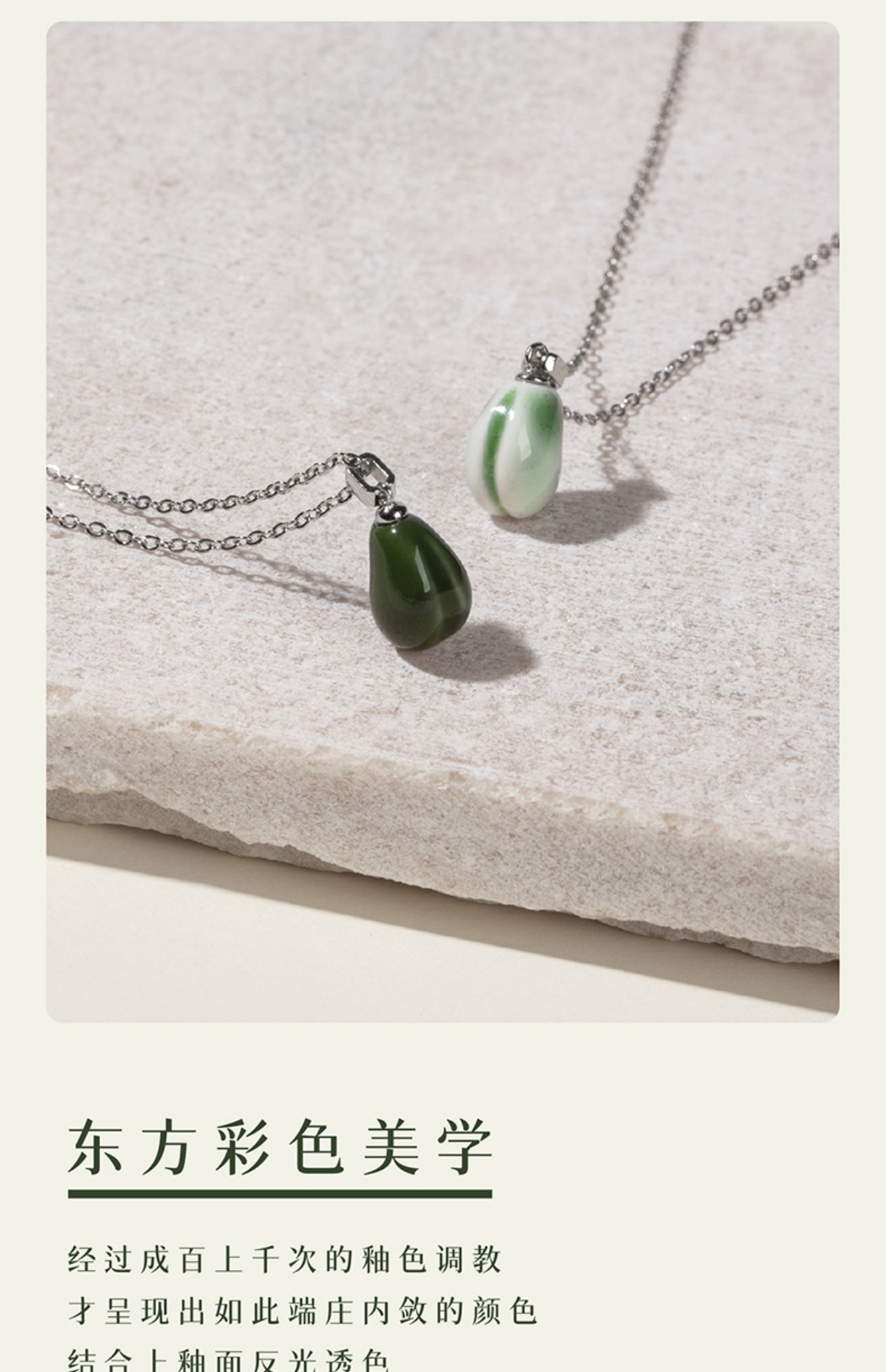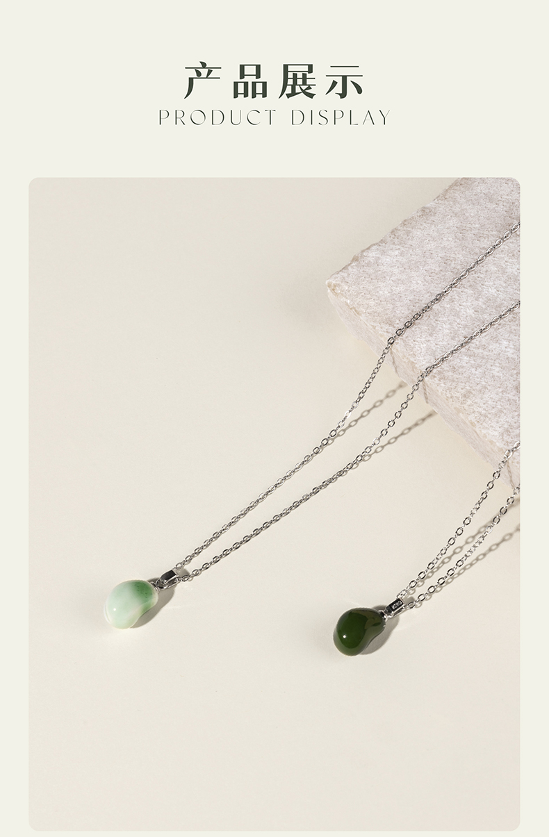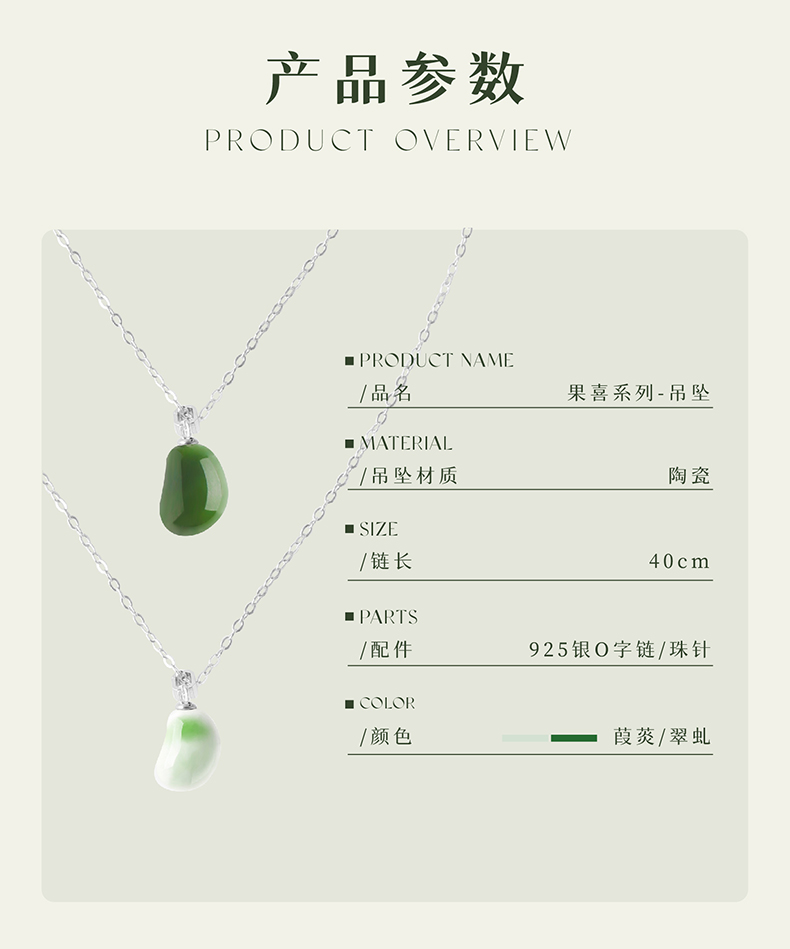 M-FH-P10302052果喜925银吊坠绿色(小款) 锁骨链925银小众设计原创新中式项链女