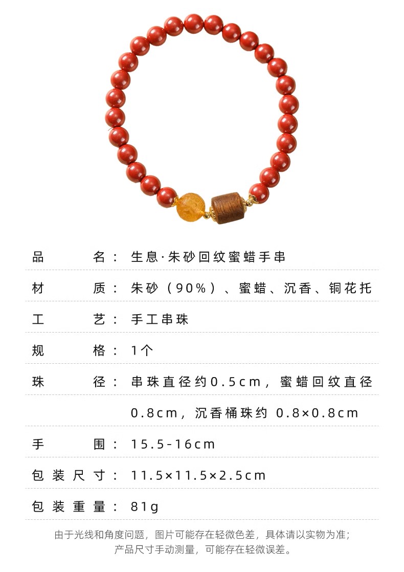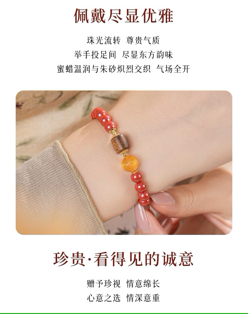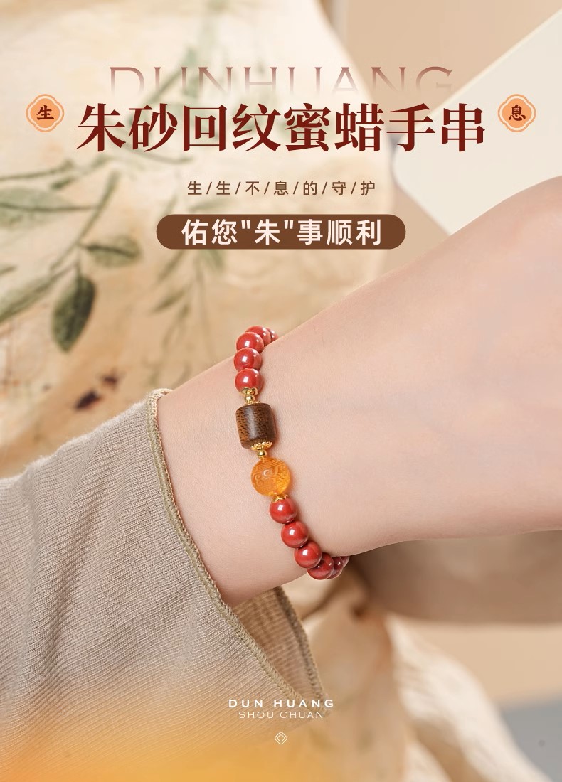 敦煌研究院 生息朱砂回纹蜜蜡手串 文玩手串手链女款文创生日礼物