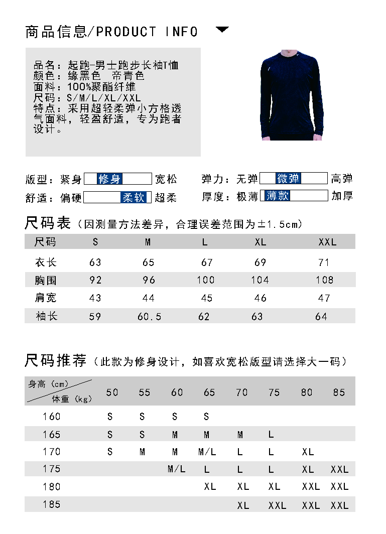 健牧 起跑 男士跑步长袖T恤