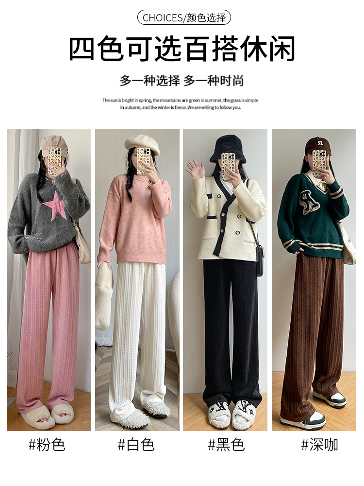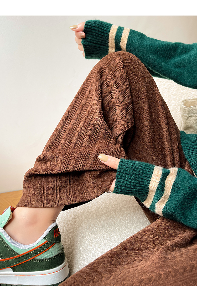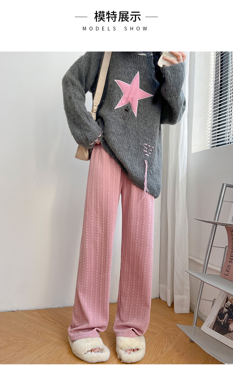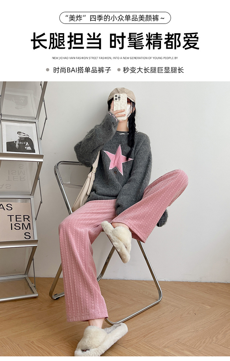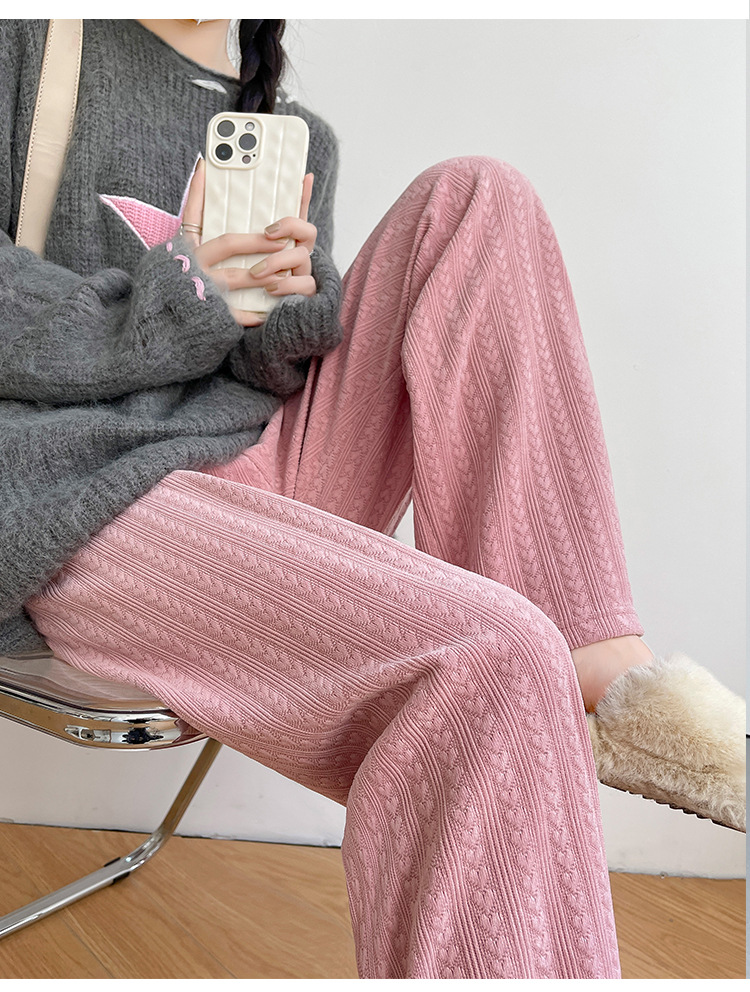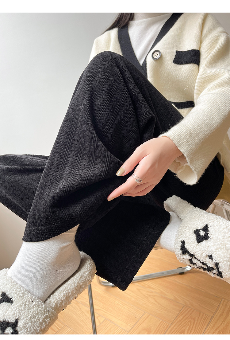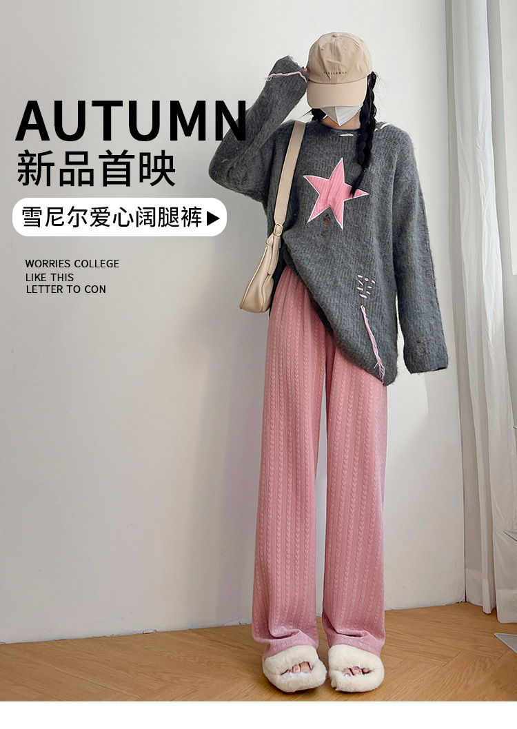 【百搭休闲 显瘦潮流新款百搭!】新款爱心雪尼尔阔腿裤显高女裤秋冬加绒裤显瘦垂坠感裤子女装外穿直筒裤休闲裤