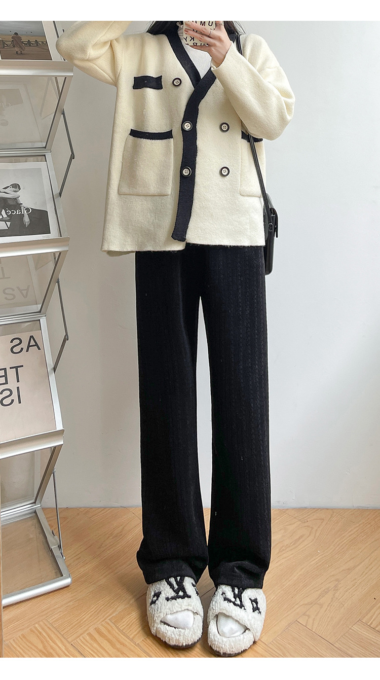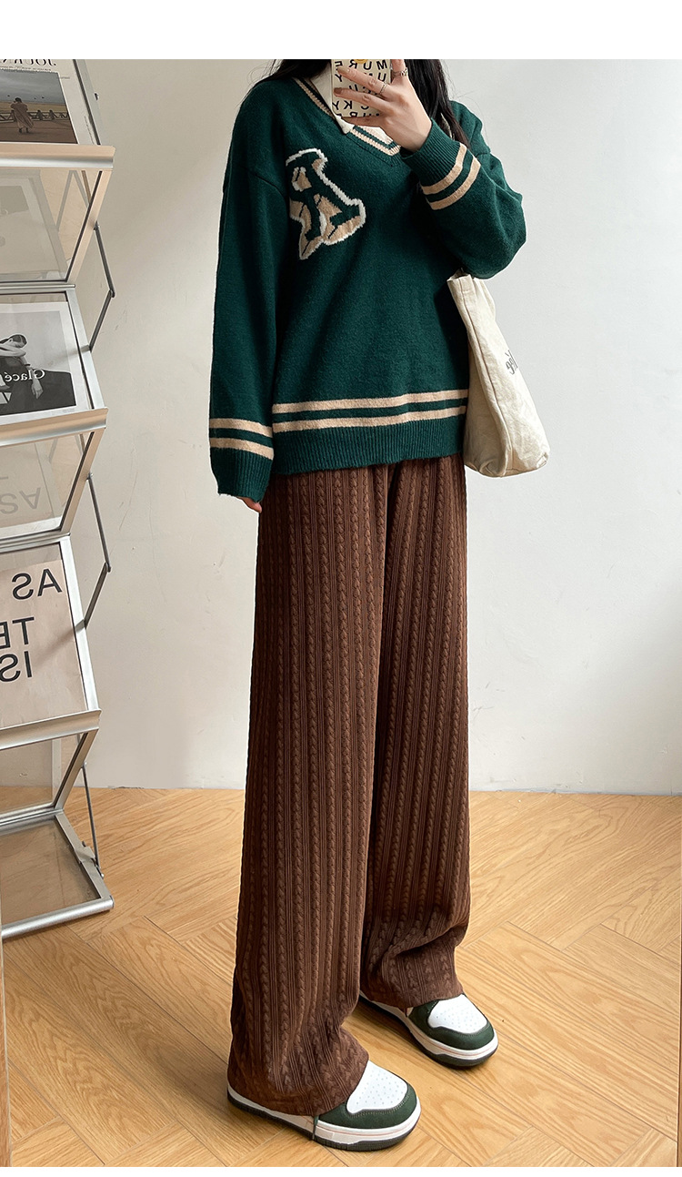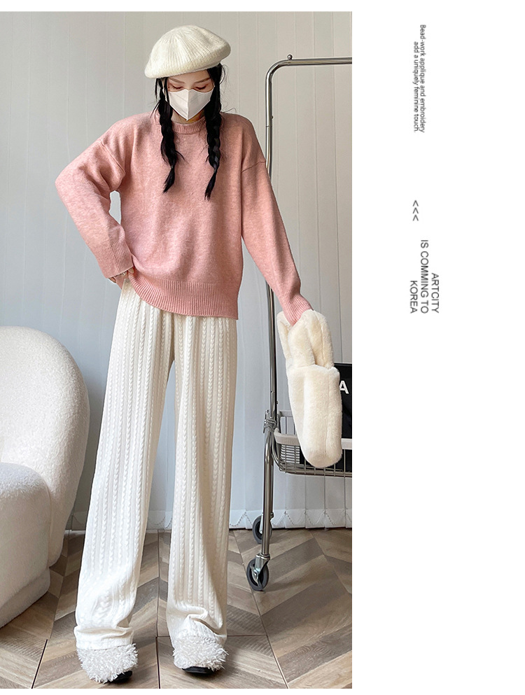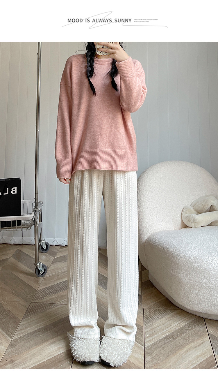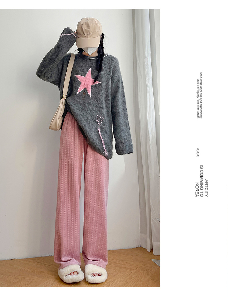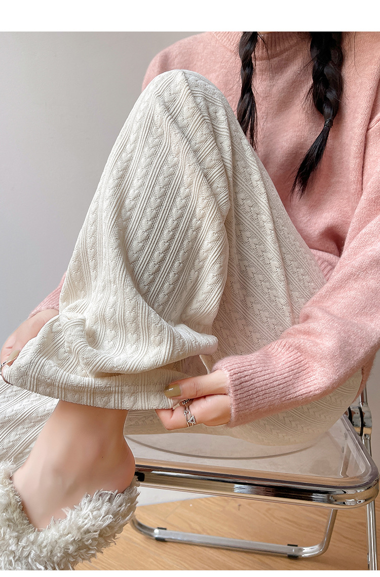 【百搭休闲 显瘦潮流新款百搭!】新款爱心雪尼尔阔腿裤显高女裤秋冬加绒裤显瘦垂坠感裤子女装外穿直筒裤休闲裤