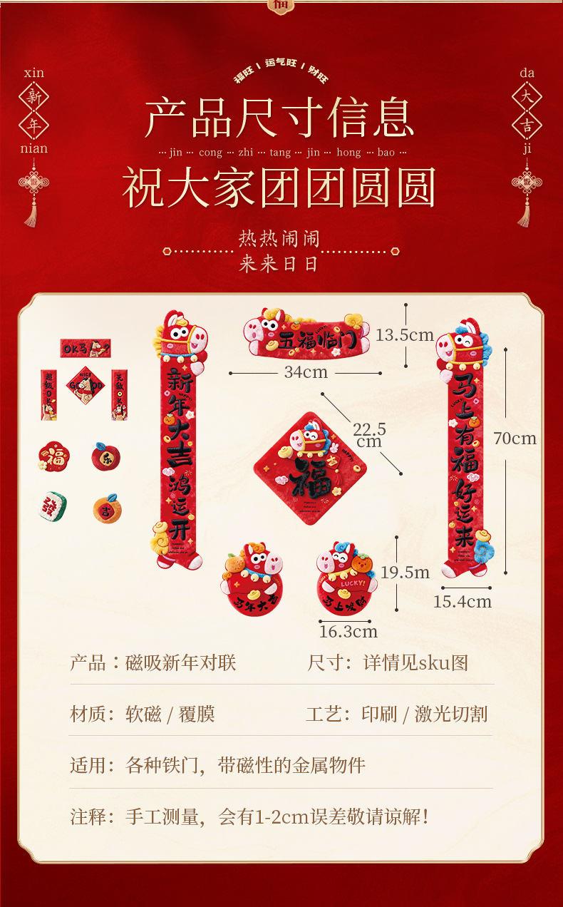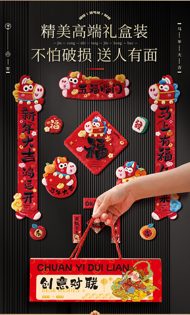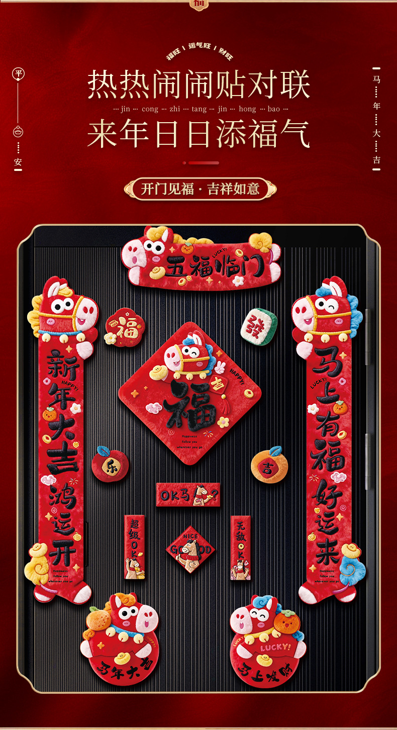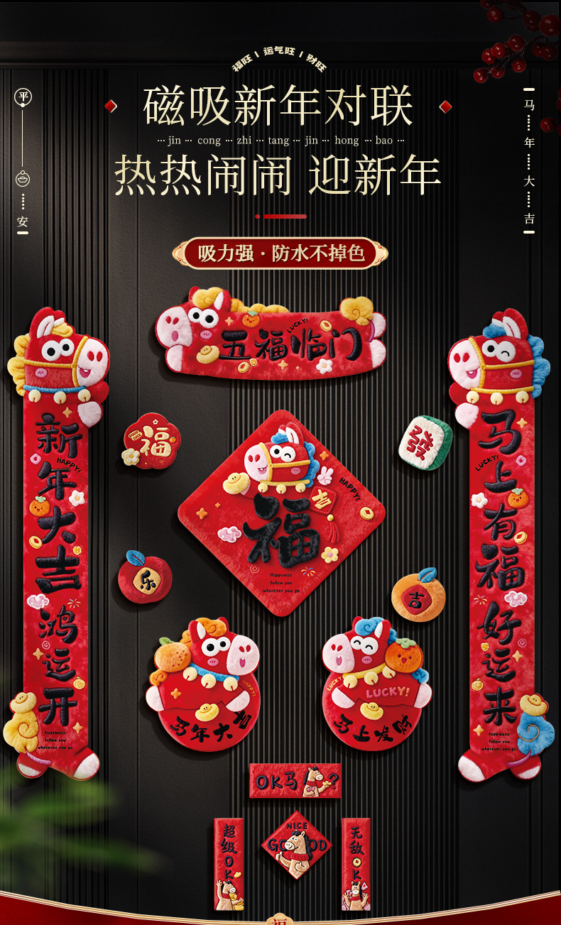 【新款!5D毛绒效果 全背磁吸对联】2026新款5D磁吸对联 马年春联过年春节新年福字贴门联 入户门装饰
