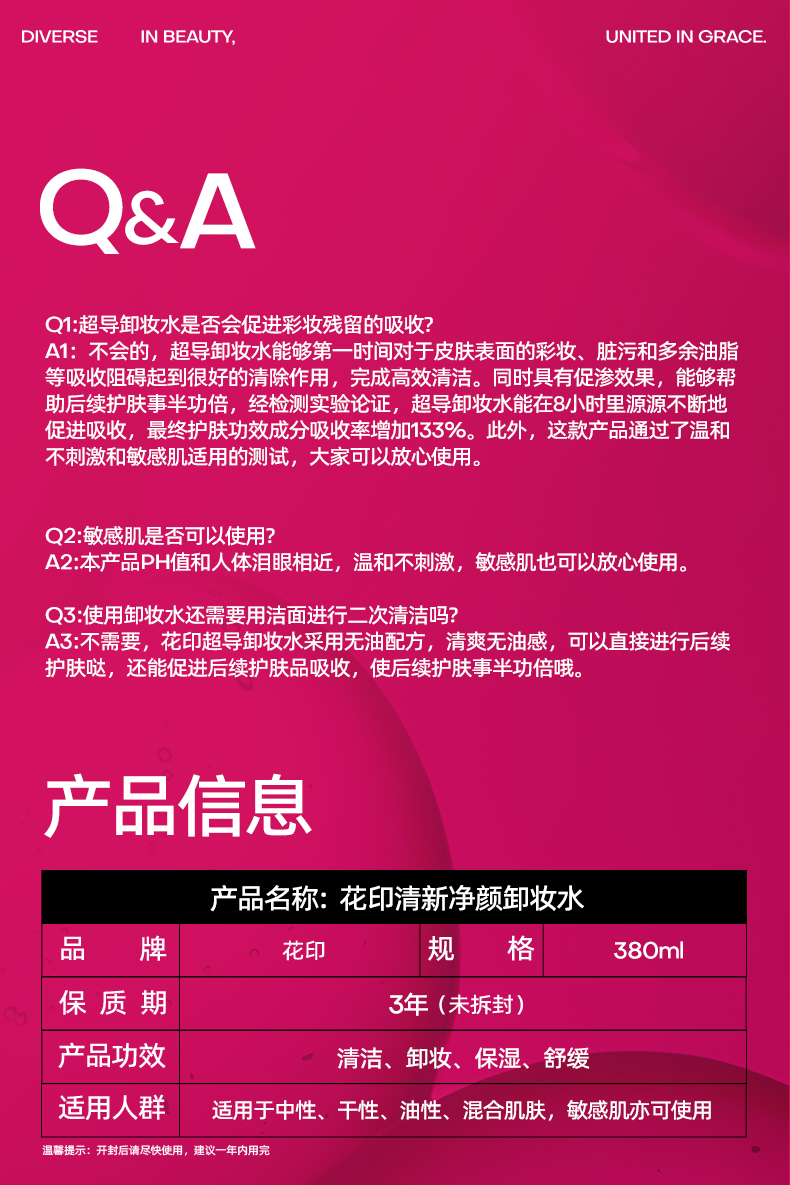 花印清新净颜卸妆水380mL超导款(国产)