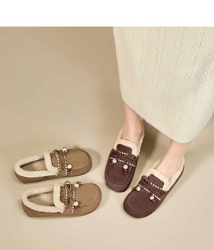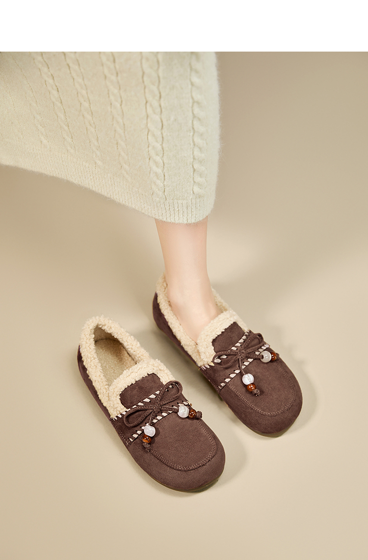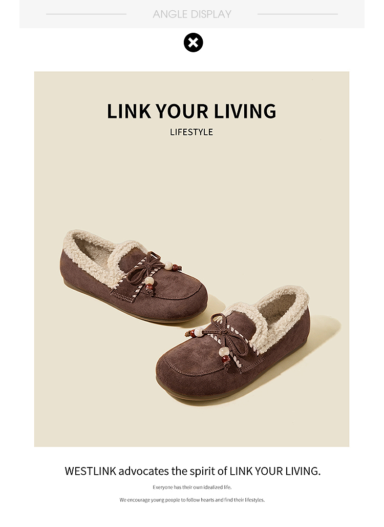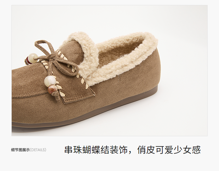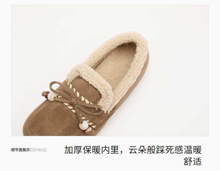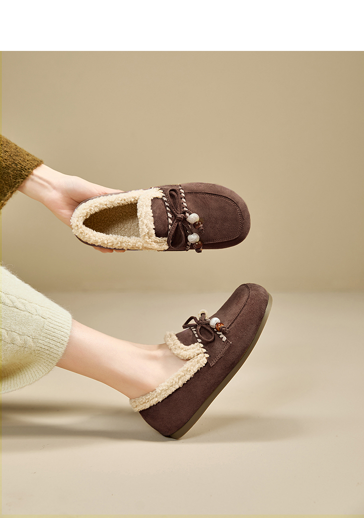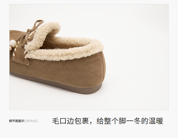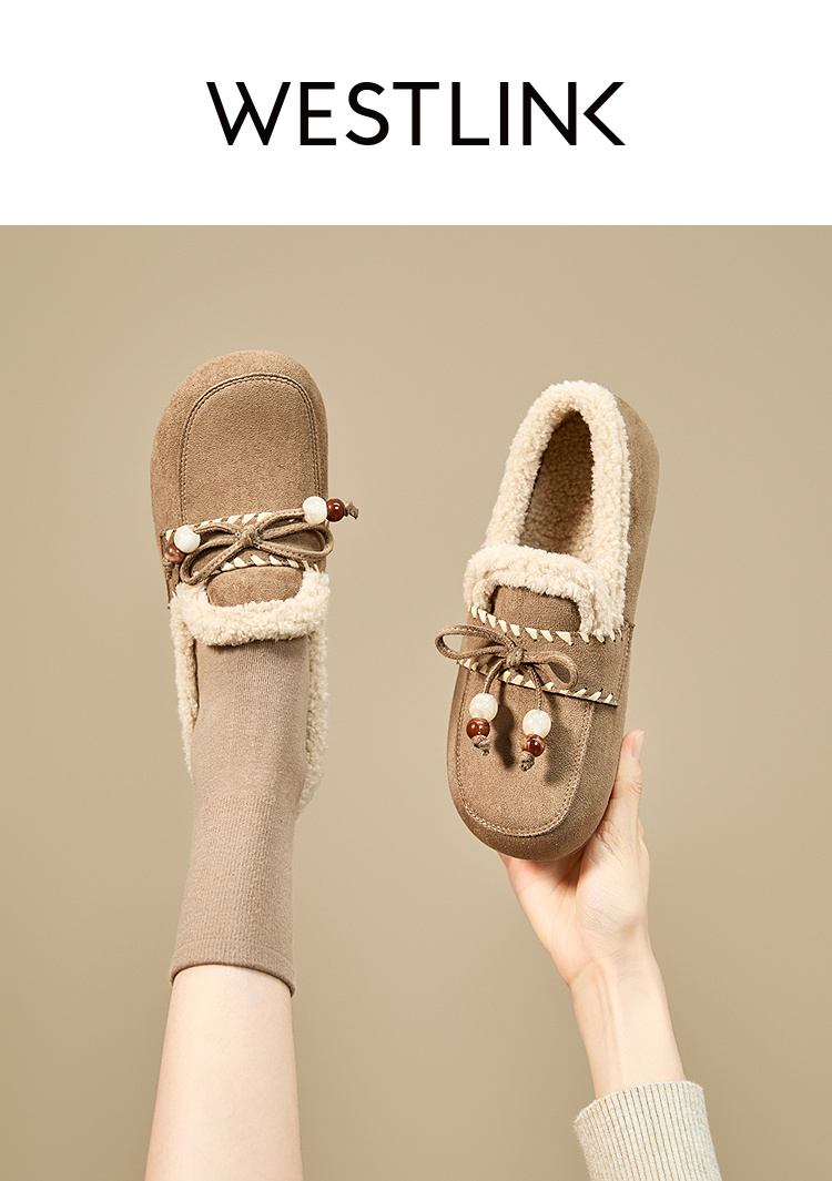 西遇加绒勃肯鞋女新款冬季复古一脚蹬外穿保暖棉鞋毛毛乐福鞋V2257289