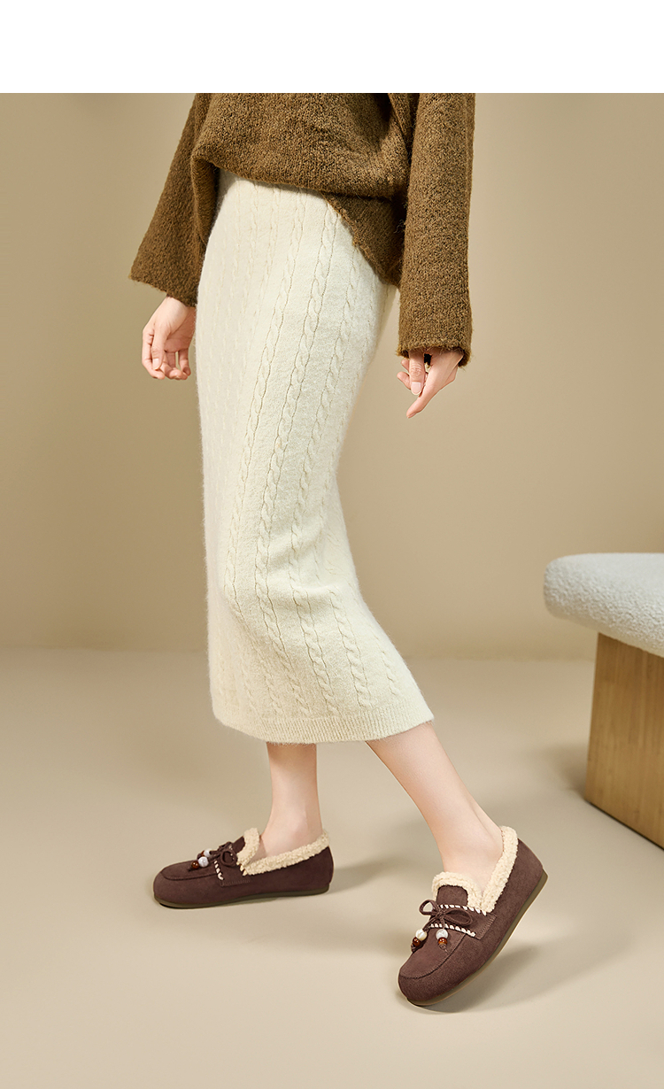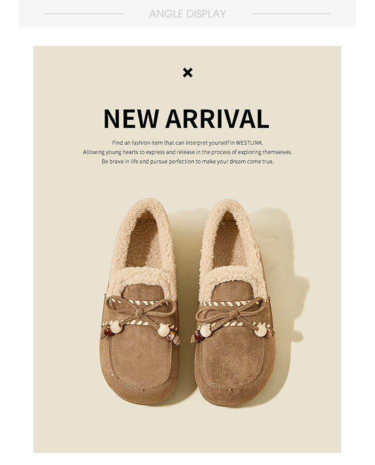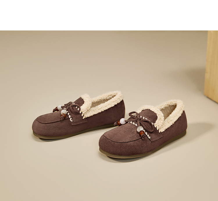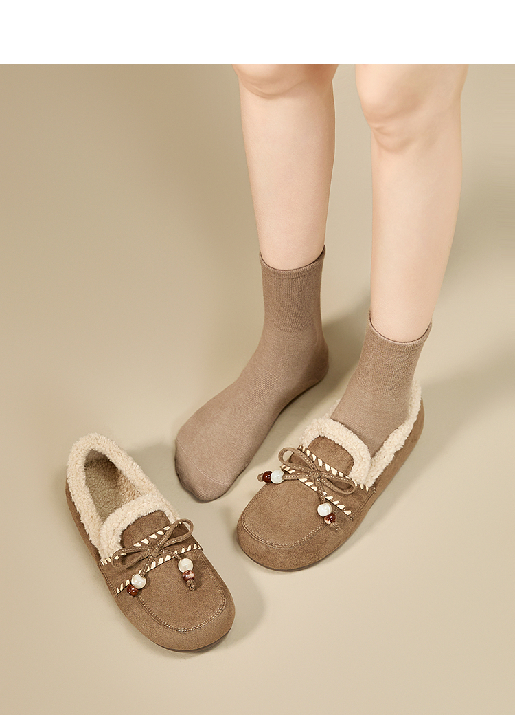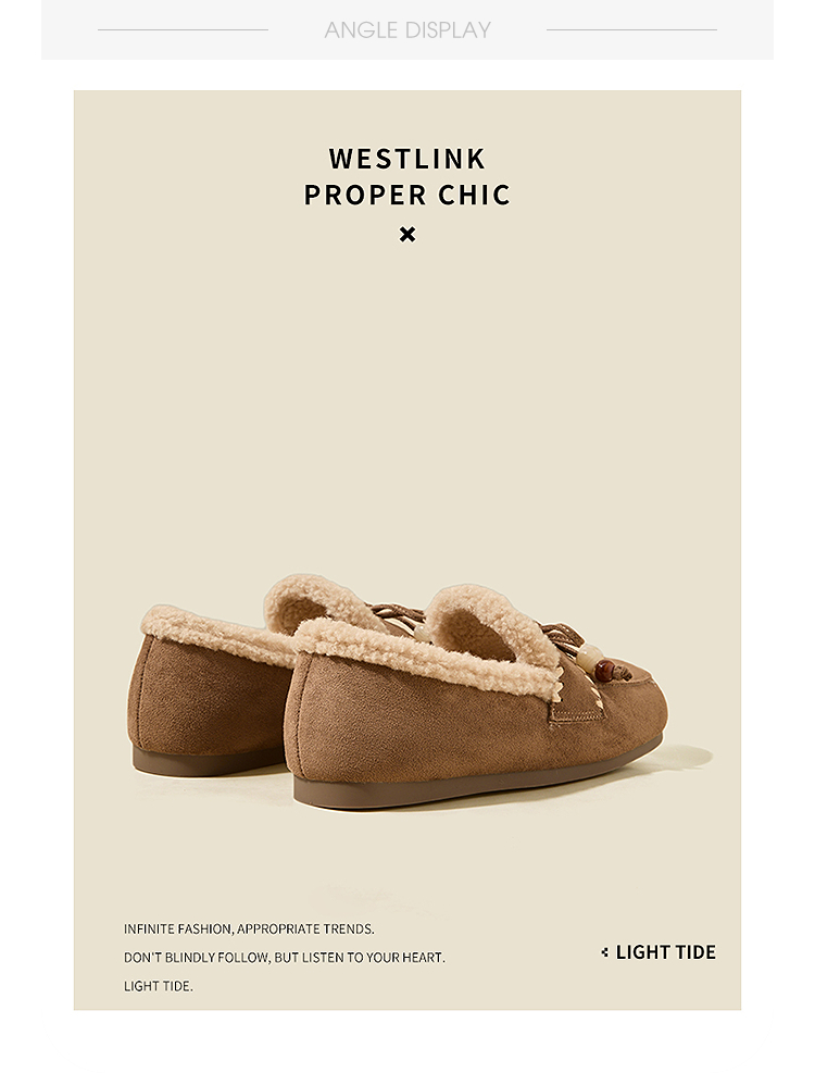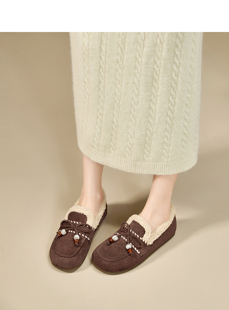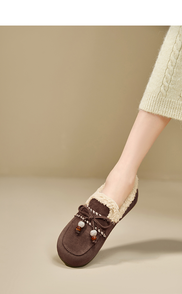西遇加绒勃肯鞋女新款冬季复古一脚蹬外穿保暖棉鞋毛毛乐福鞋V2257289