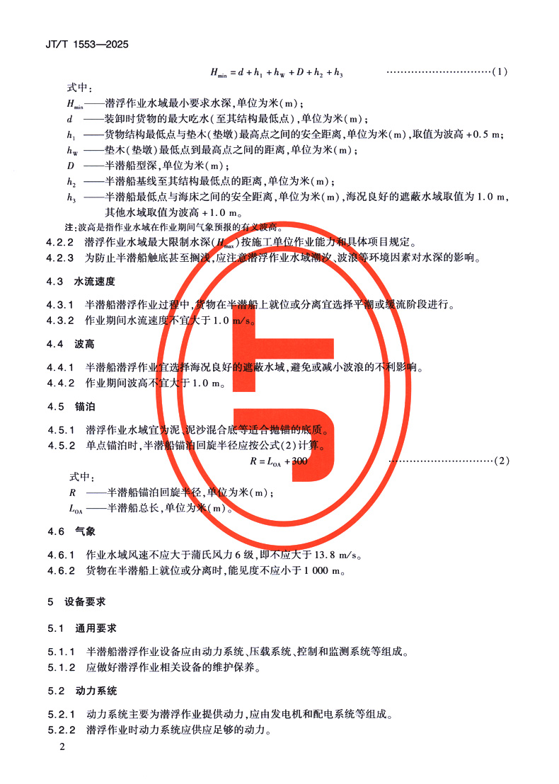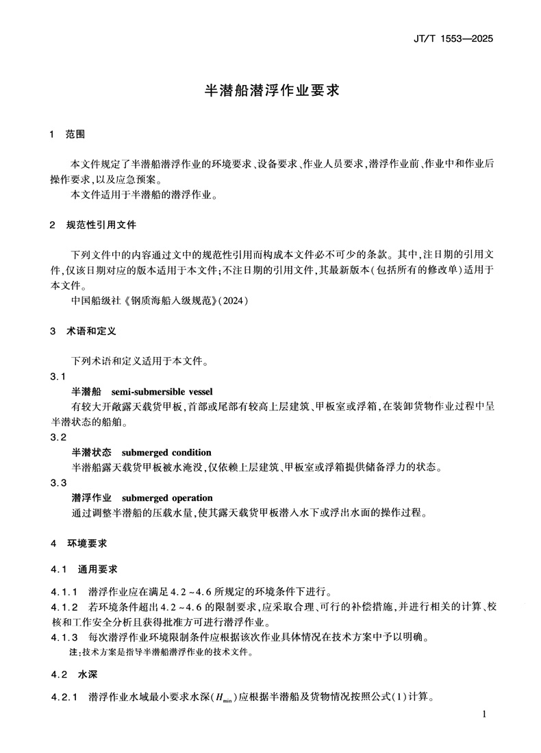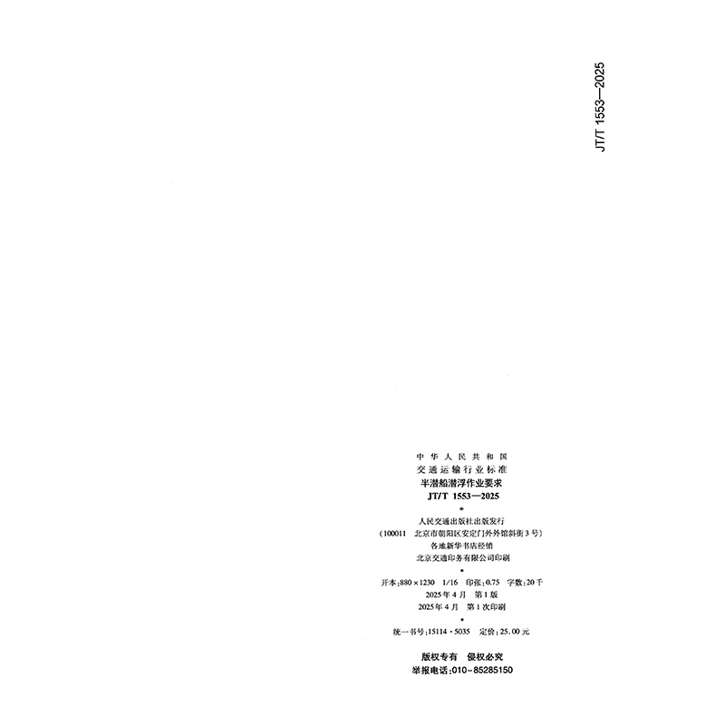 书名:半潜船潜浮作业要求(JT/T 1553—2025)