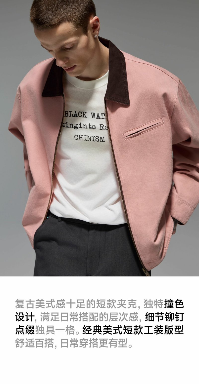 CHINISM赤尘 水洗复古撞色底特律工装夹克男秋季新款休闲短款外套