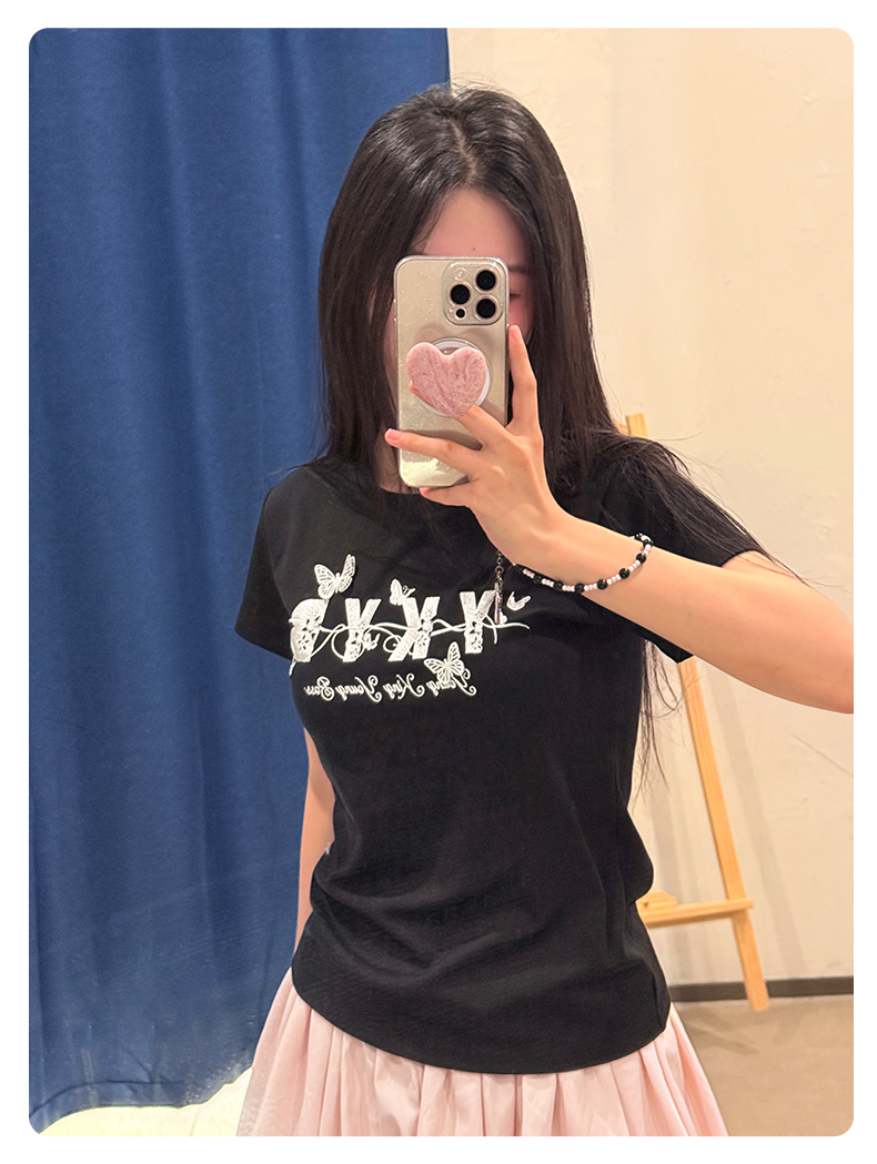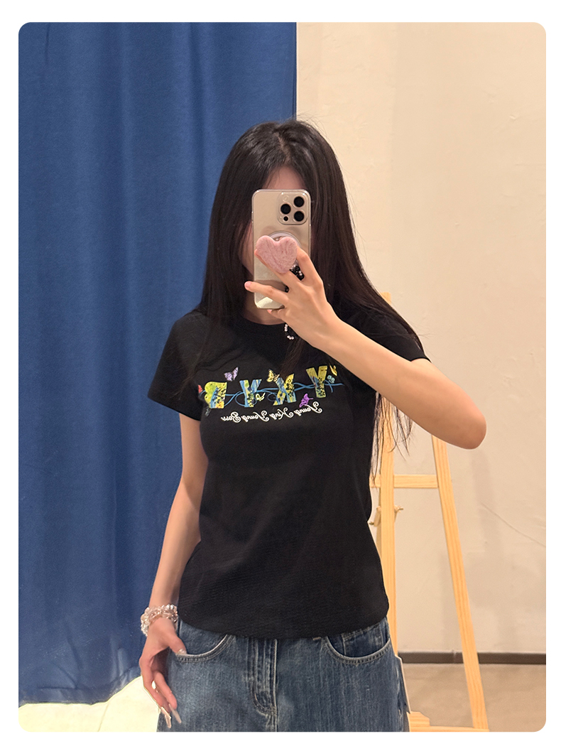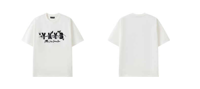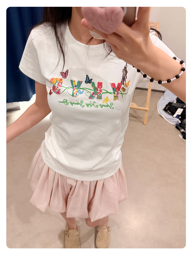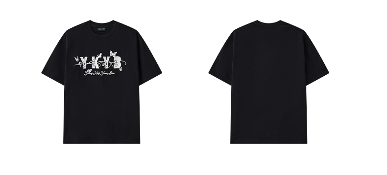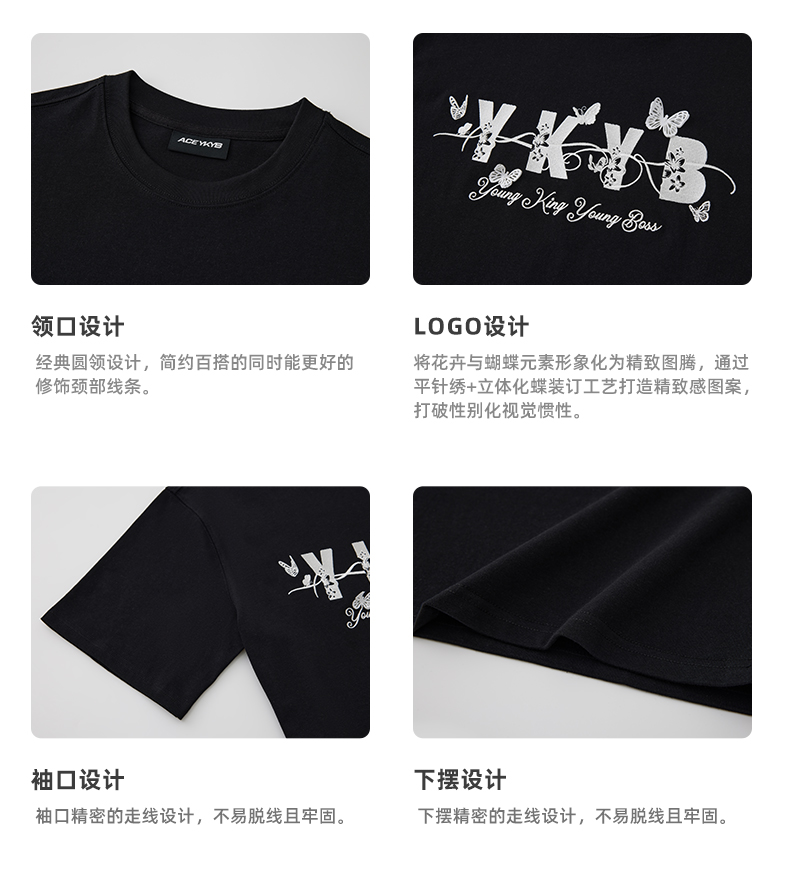 [两件减10]YKYB黄子韬短袖T恤宽松修身情侣刺绣花卉蝴蝶立体显瘦甜美上衣Y52NDT116