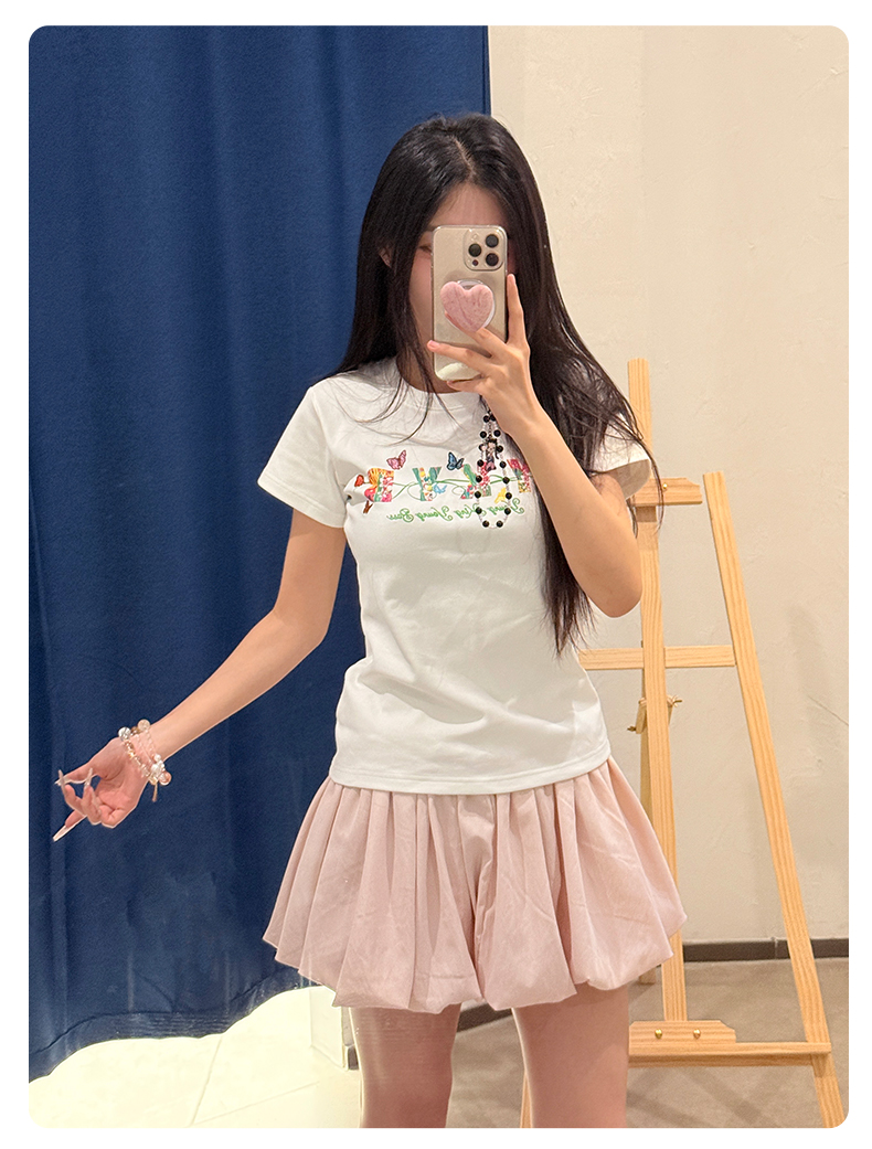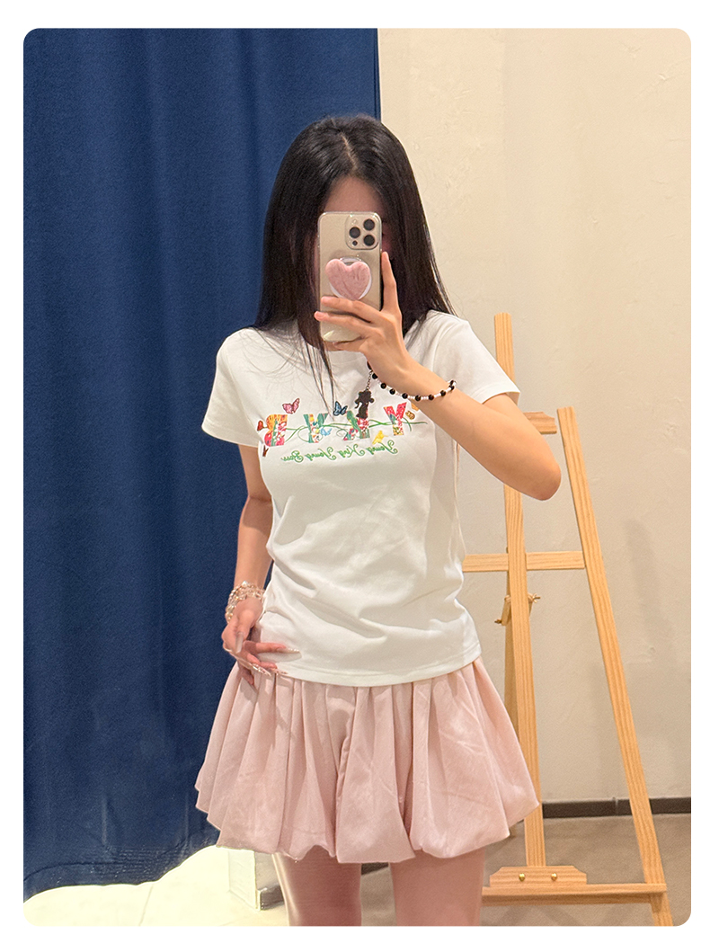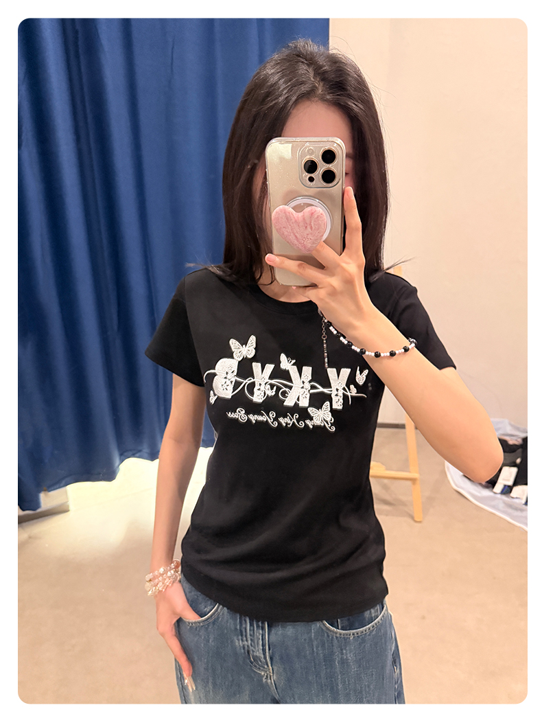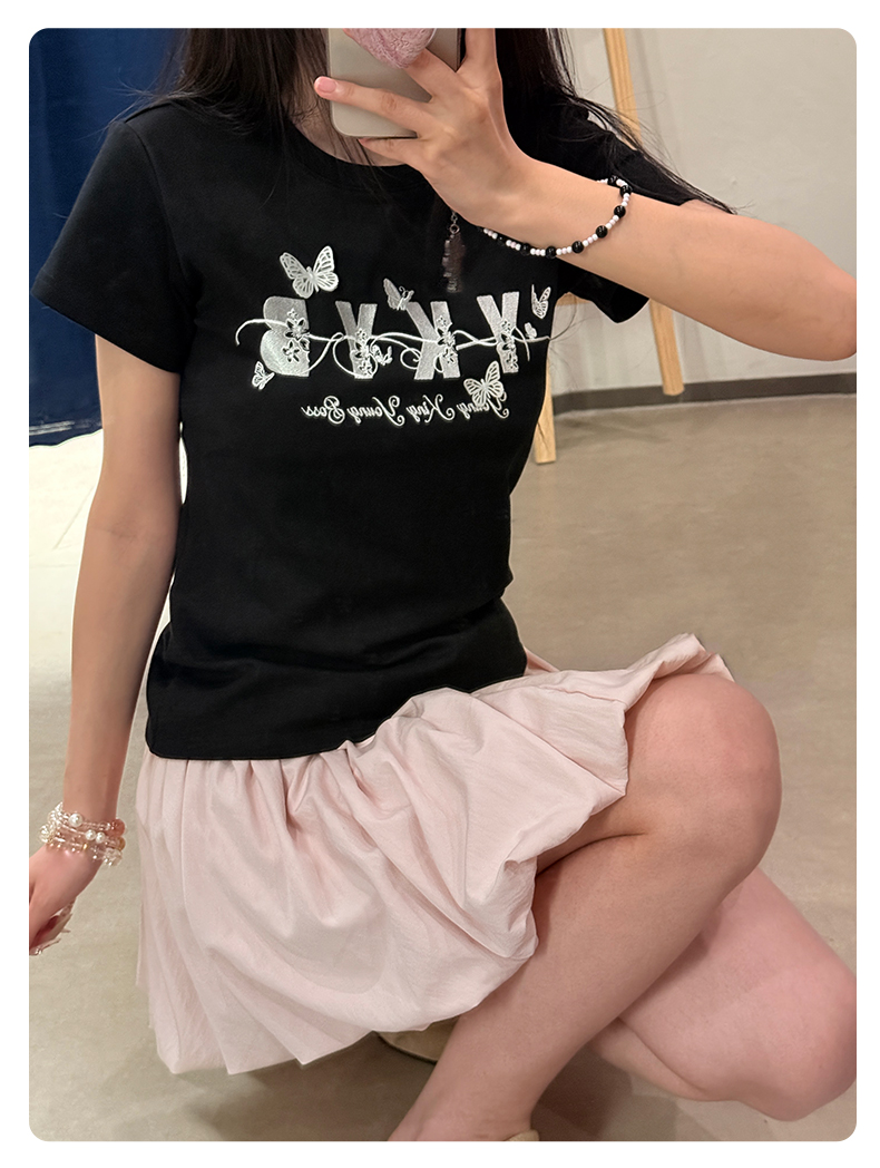 [两件减10]YKYB黄子韬短袖T恤宽松修身情侣刺绣花卉蝴蝶立体显瘦甜美上衣Y52NDT116
