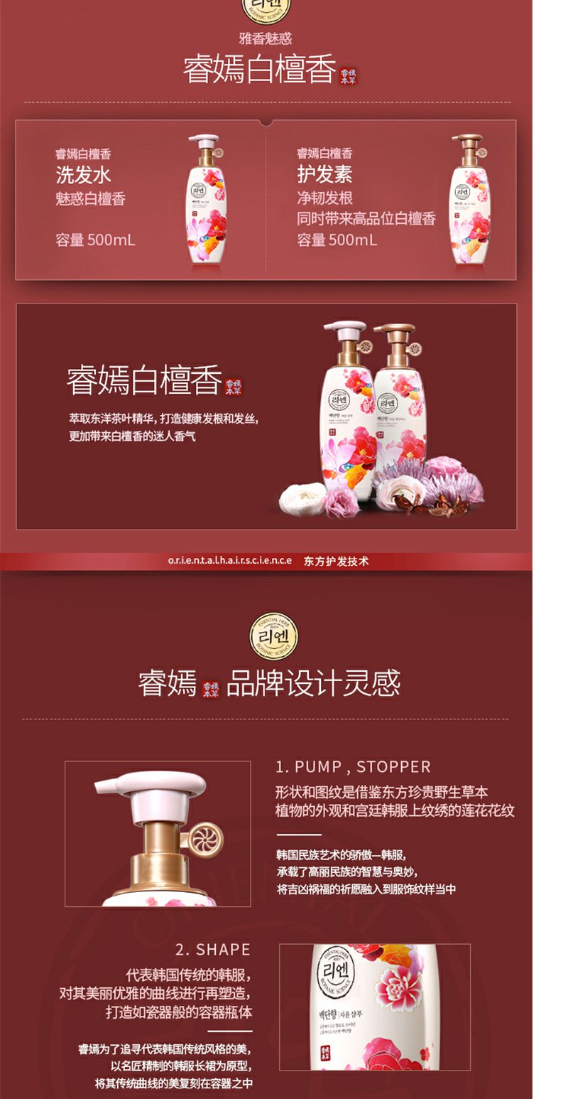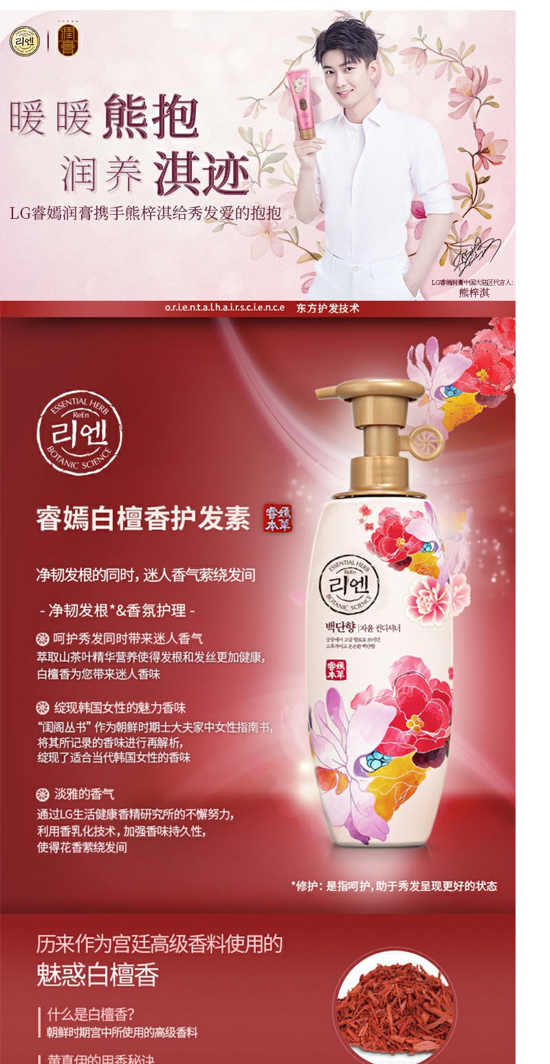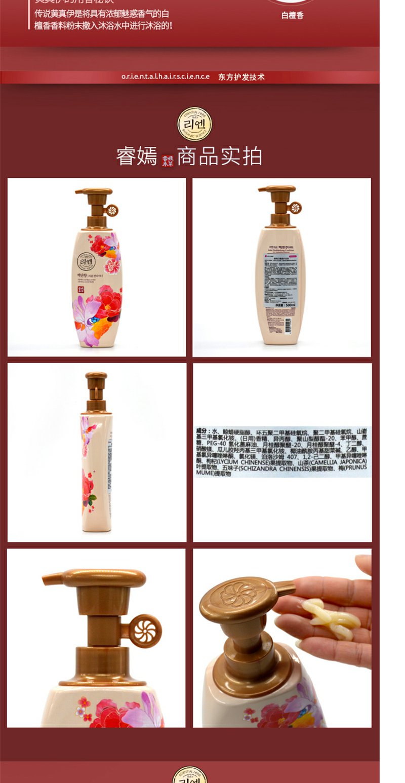 睿嫣白檀香护发素500ml润发乳改善毛躁滋养秀发净韧发根LG正品