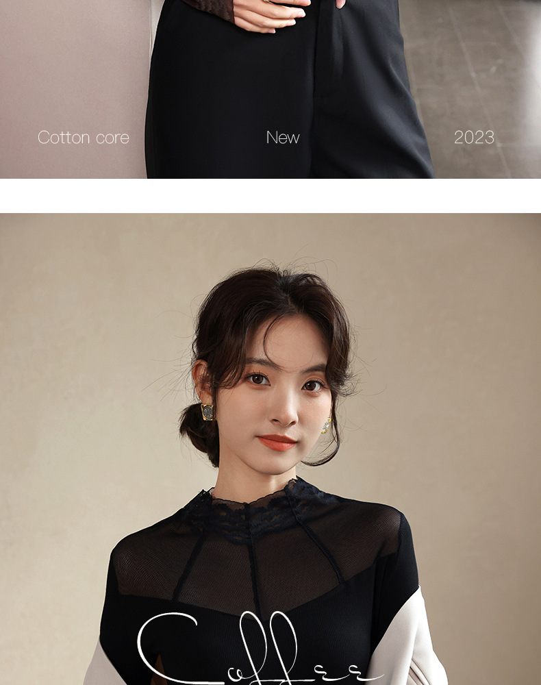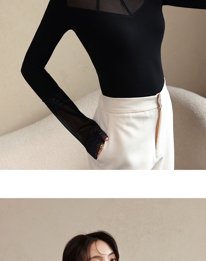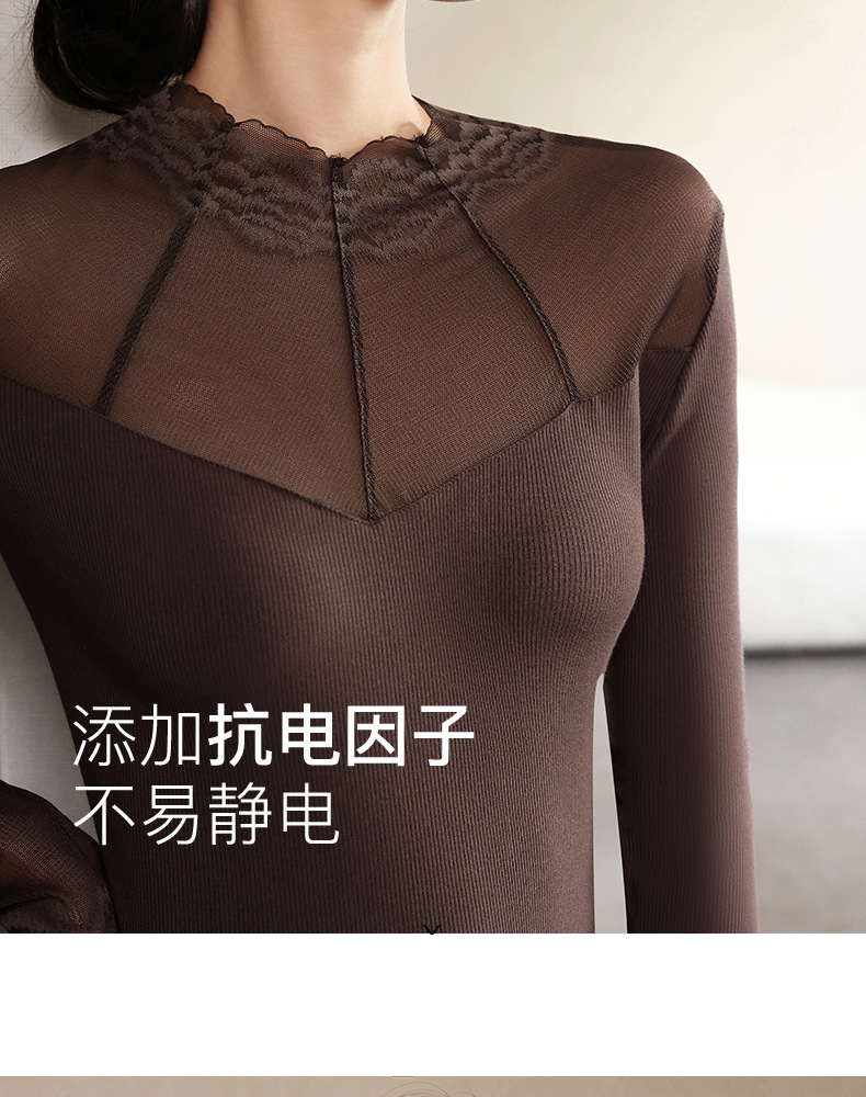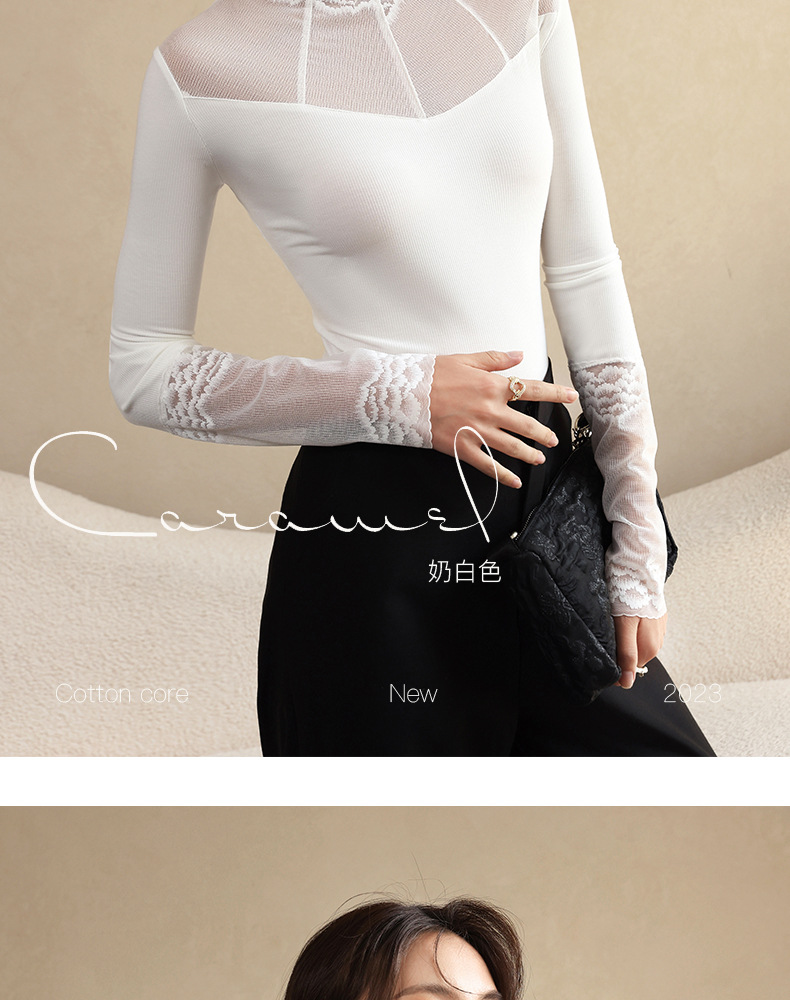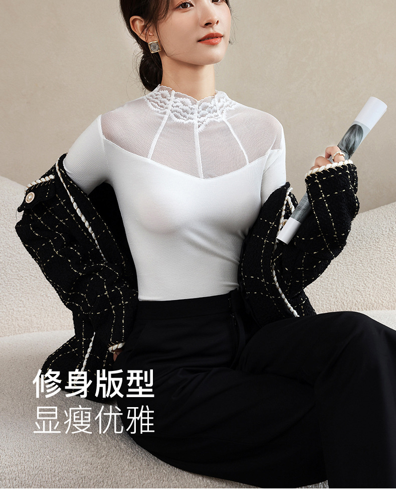 2024秋冬新款网纱蕾丝女洋气长袖半高领上衣半高领叠穿内搭打底衫
