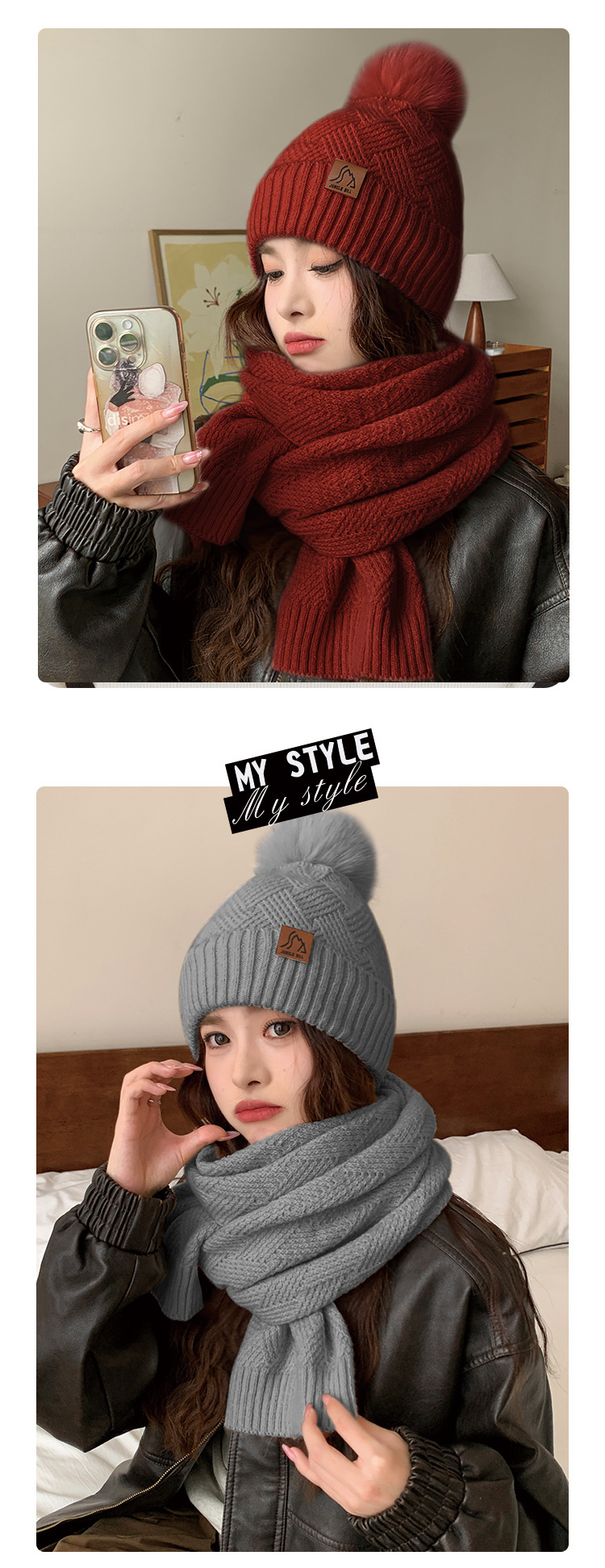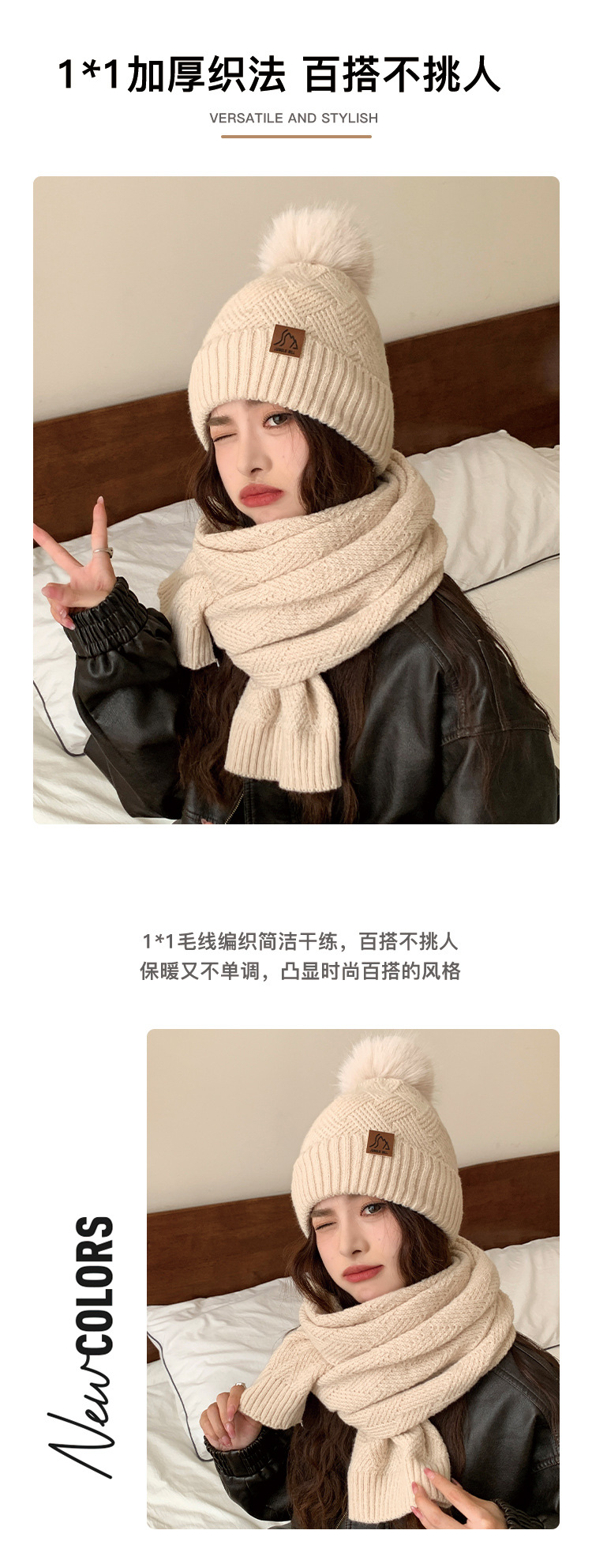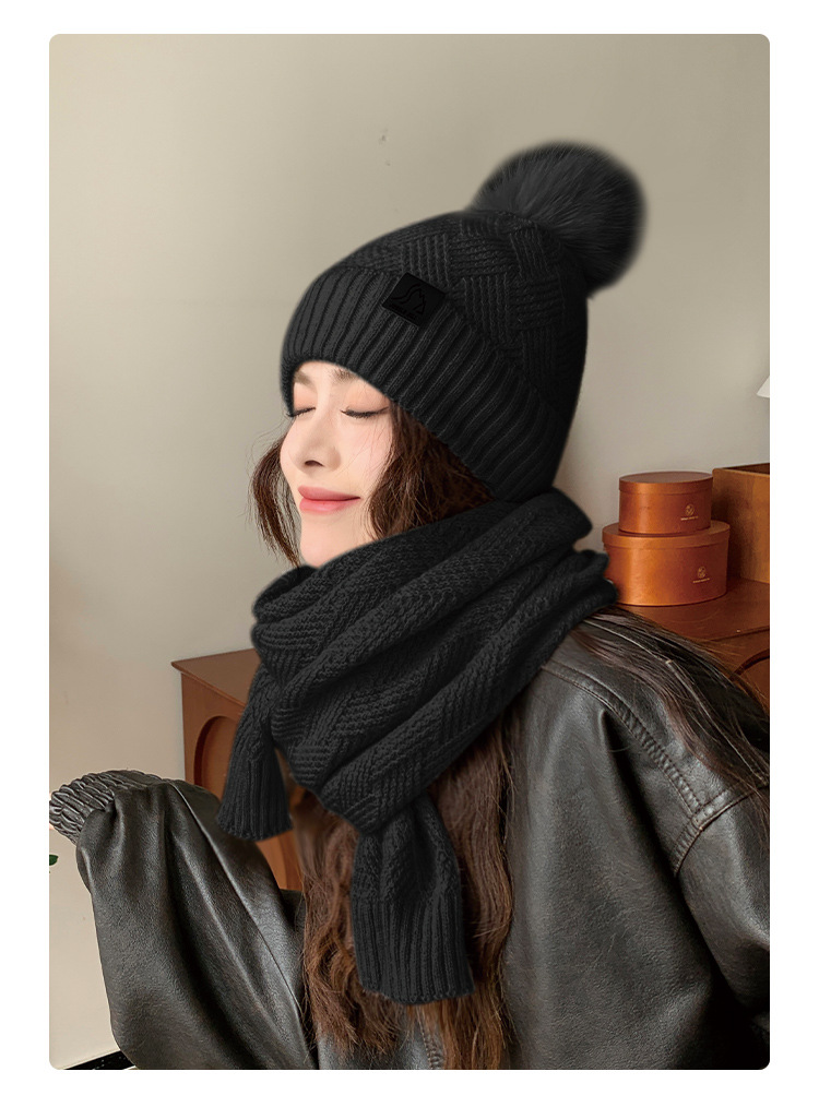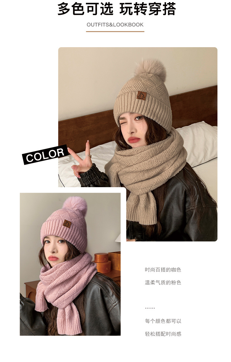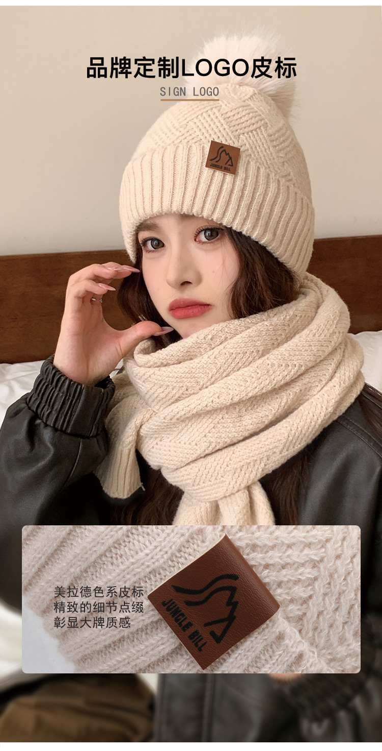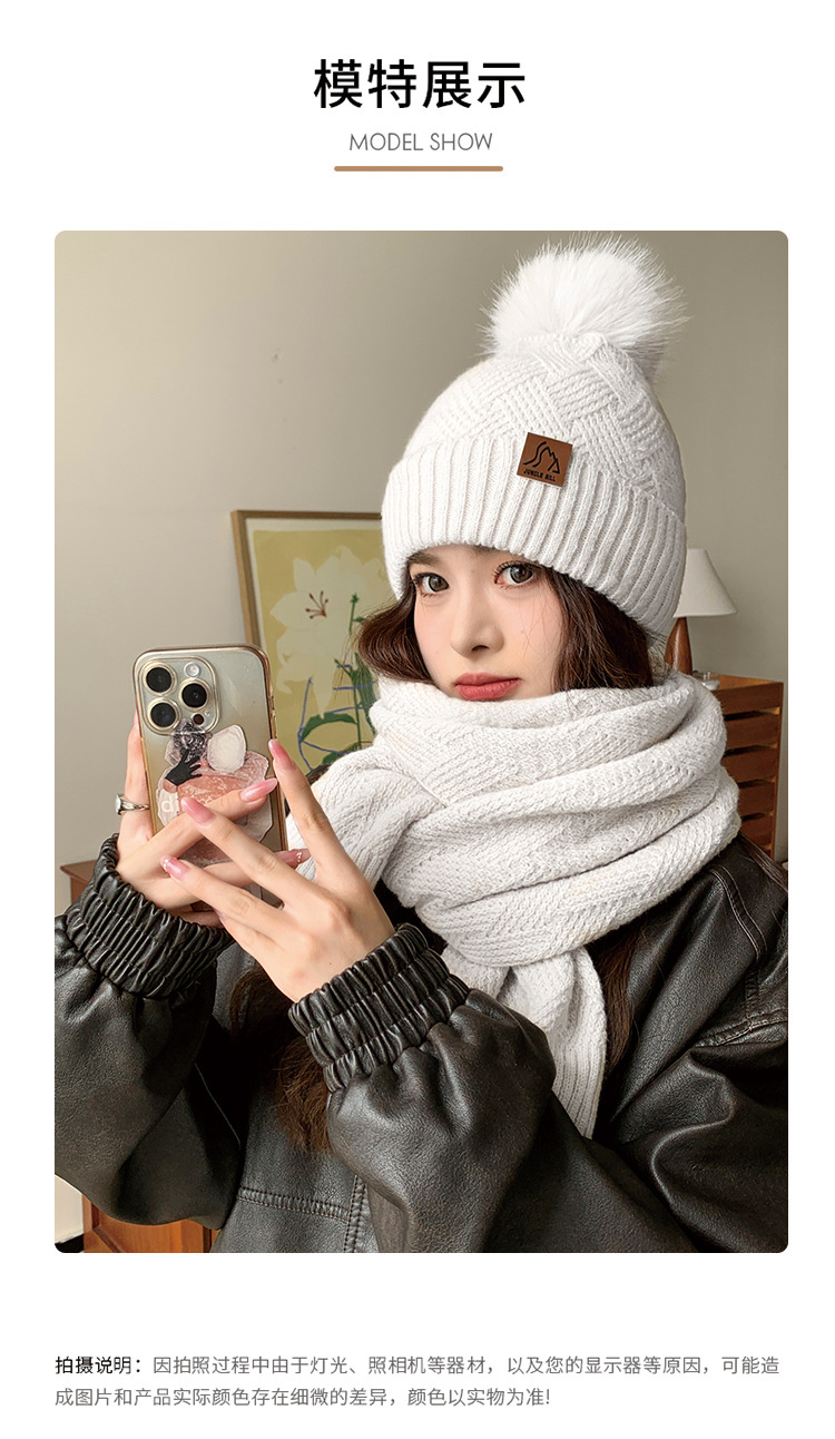 丛林比尔女士冬季双层加绒毛球针织帽户外保暖毛线帽两件套小红书爆款新款保暖帽子