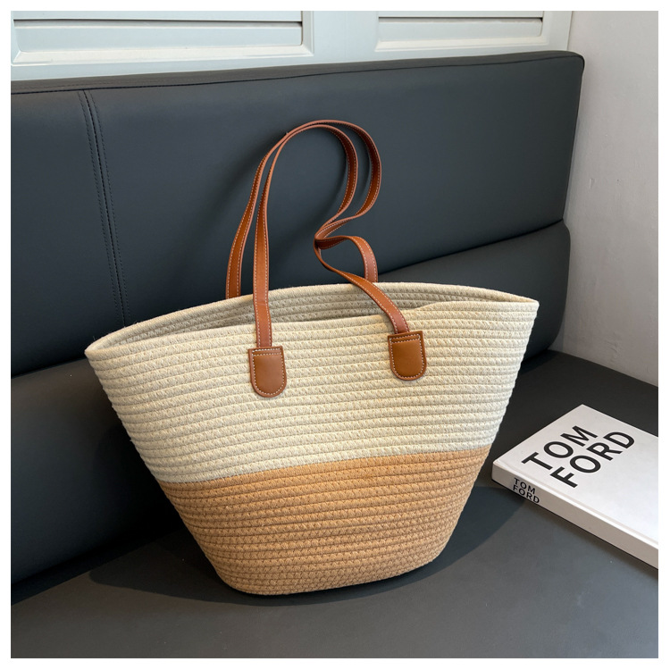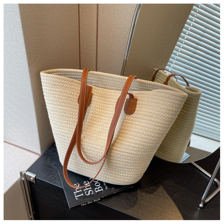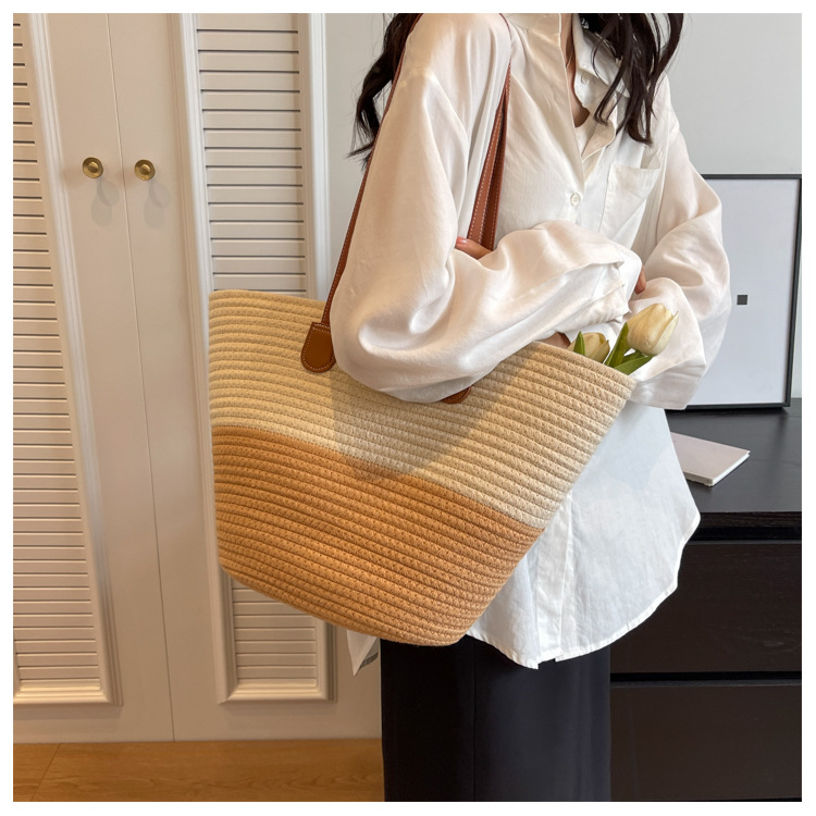 森系草编托特包,百搭时髦、通勤大容量【G】