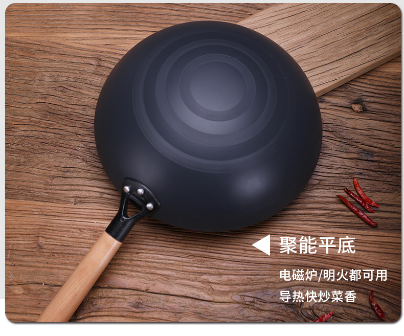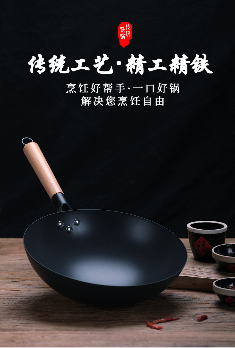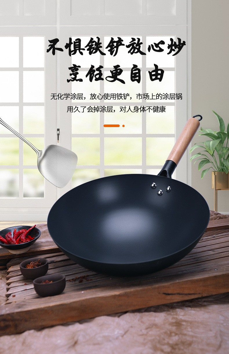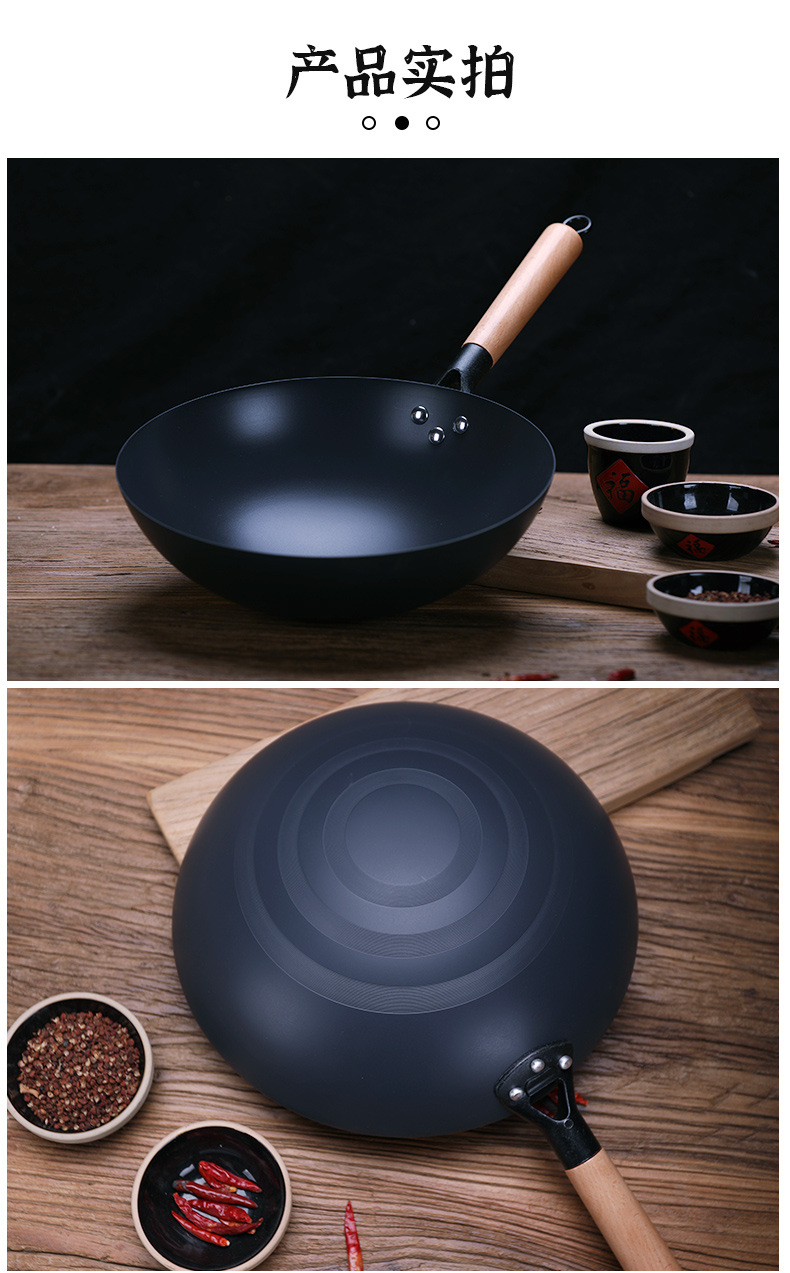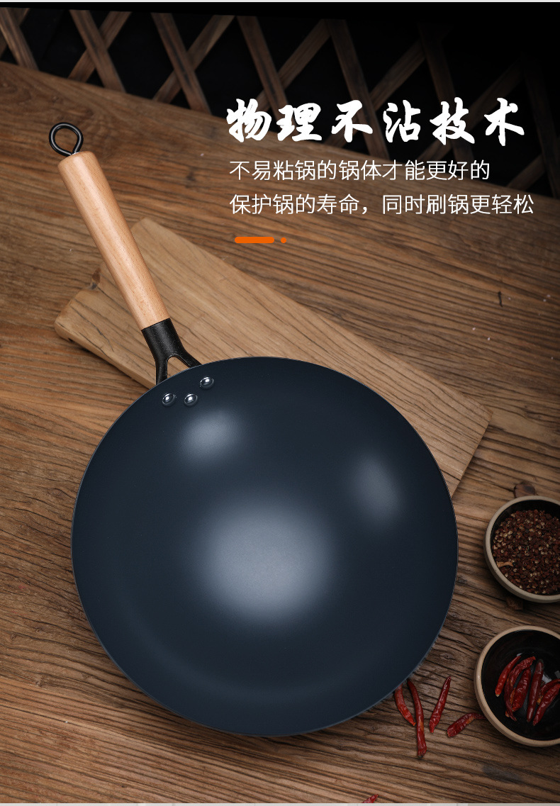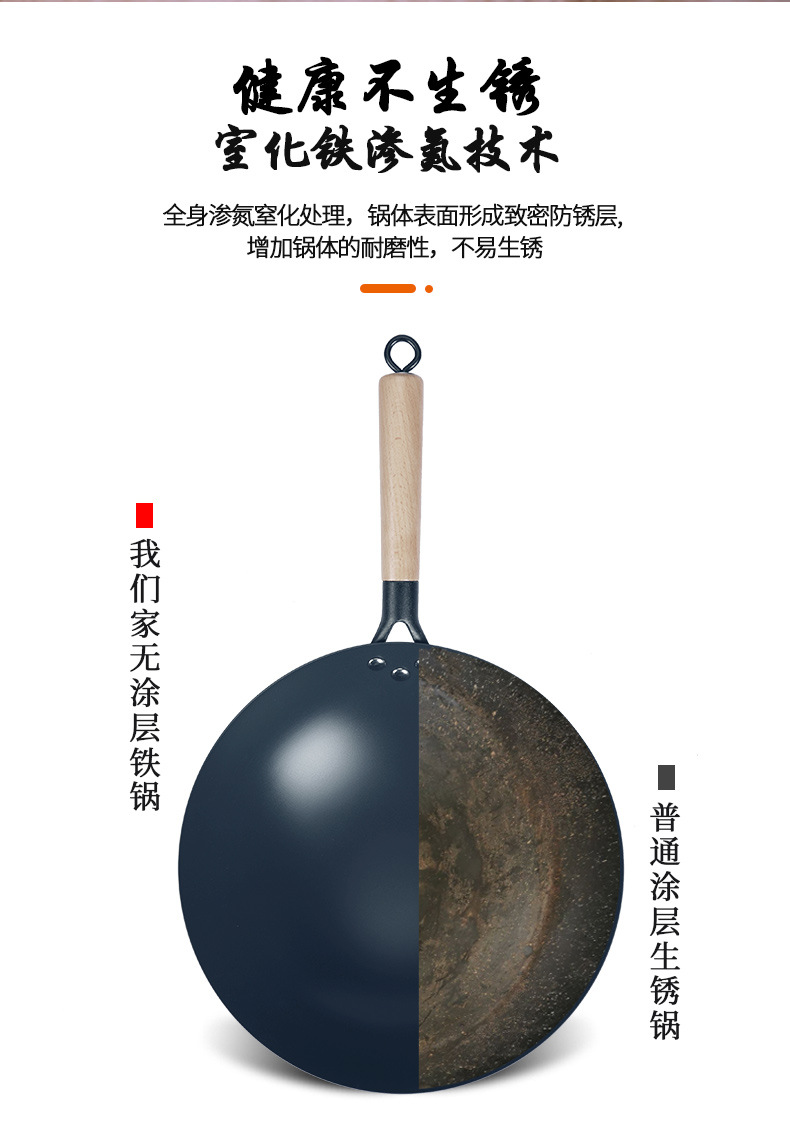 等离子渗氮技术 传统老铁锅 家用炒菜锅氮化款轻便女士不粘锅圆底老式明火无涂层铁锅炒锅