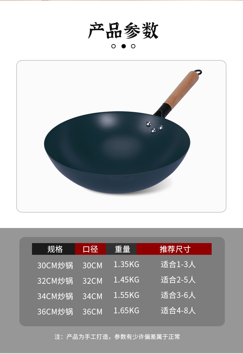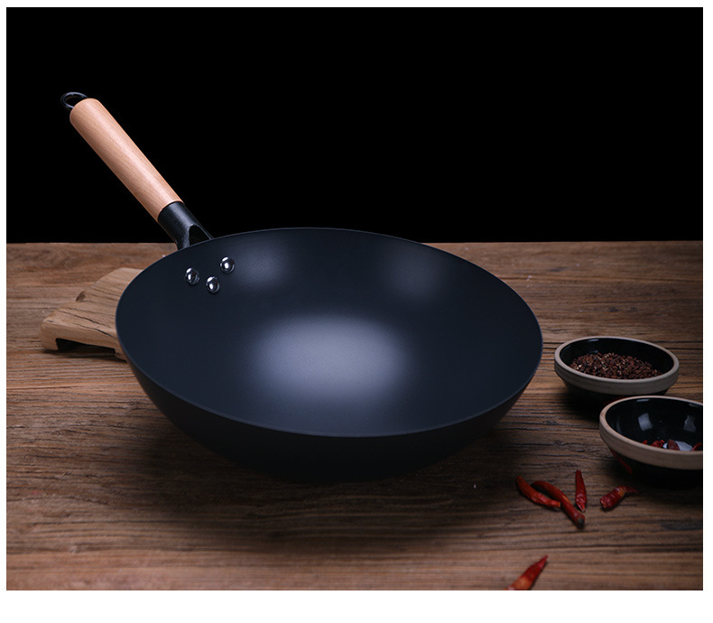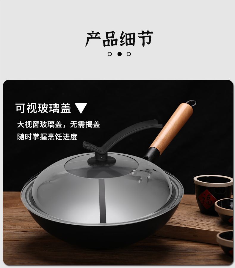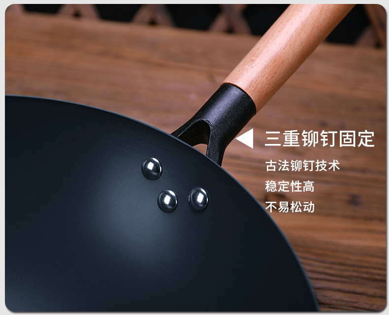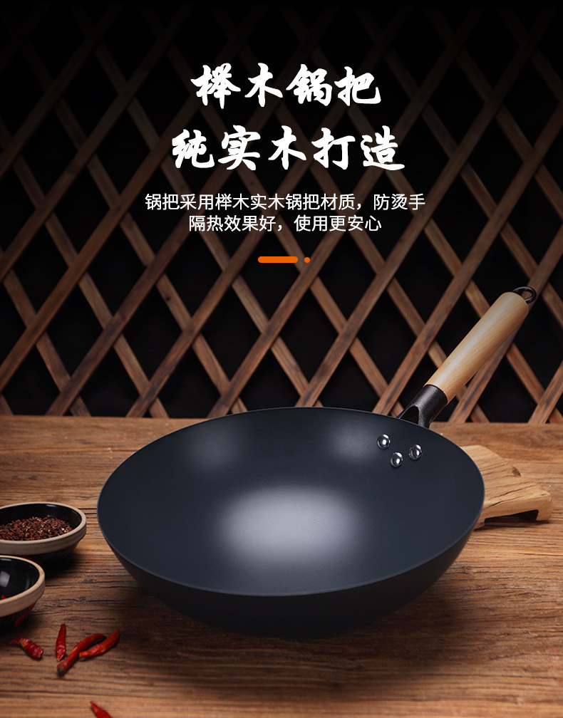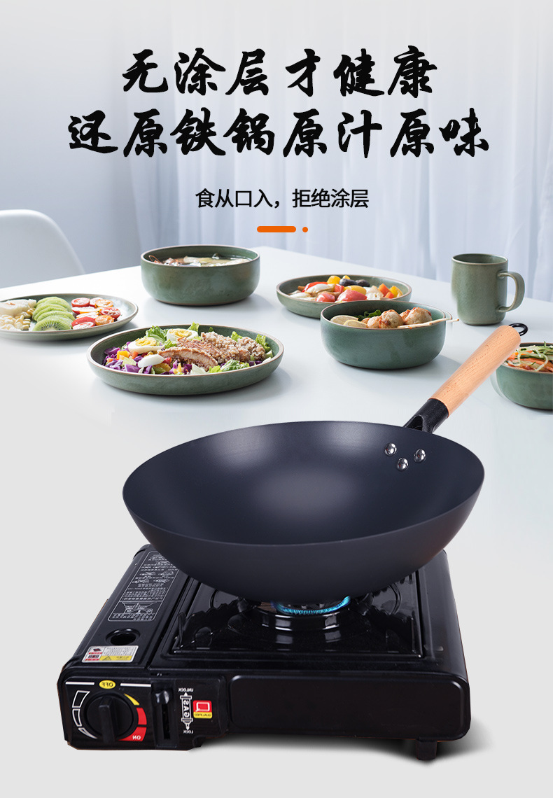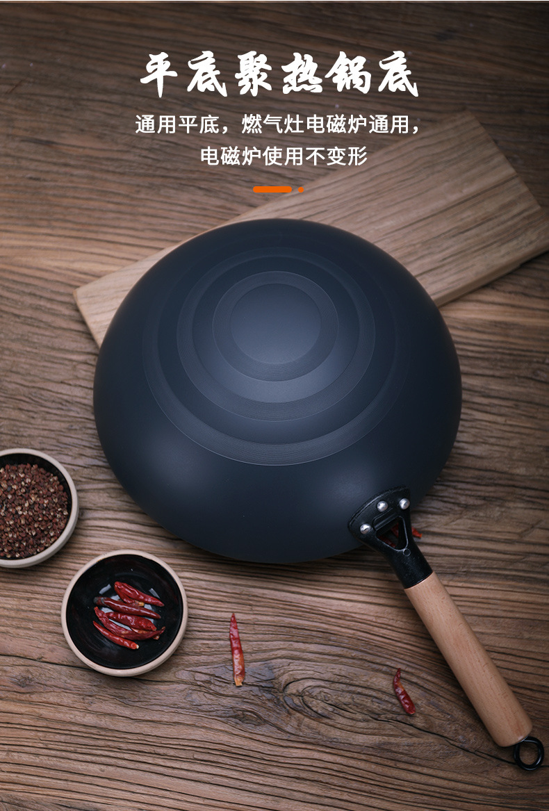 等离子渗氮技术 传统老铁锅 家用炒菜锅氮化款轻便女士不粘锅圆底老式明火无涂层铁锅炒锅