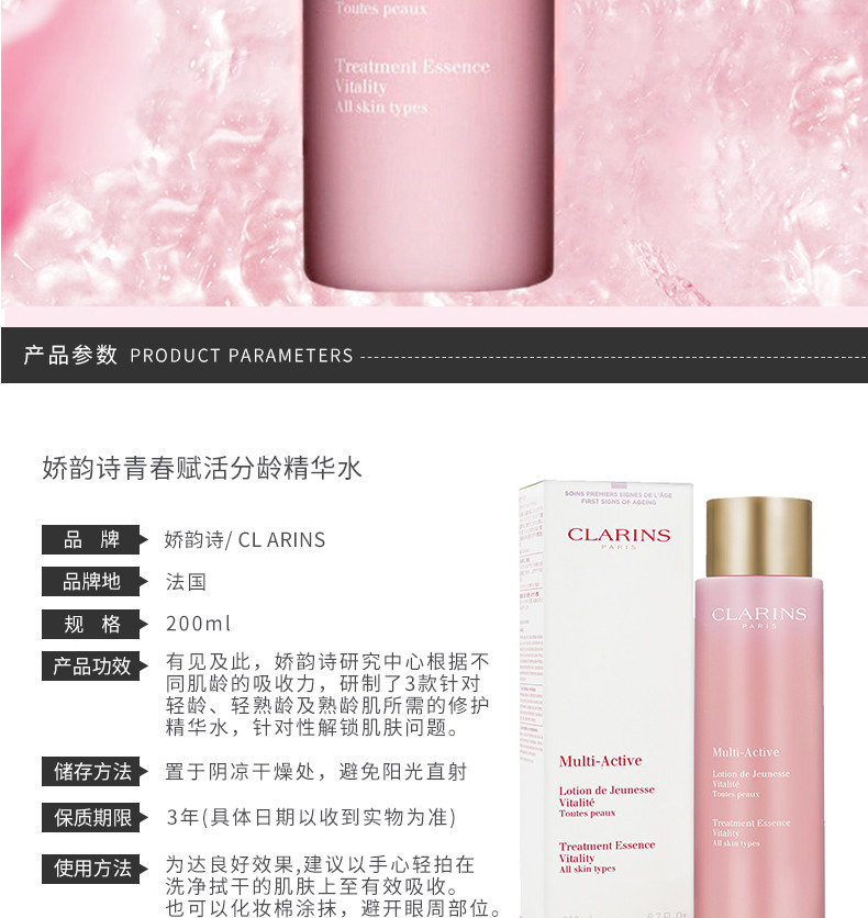 CLARINS娇韵诗 青春赋活分龄精华水保湿补水 少女粉水 200ML 法国