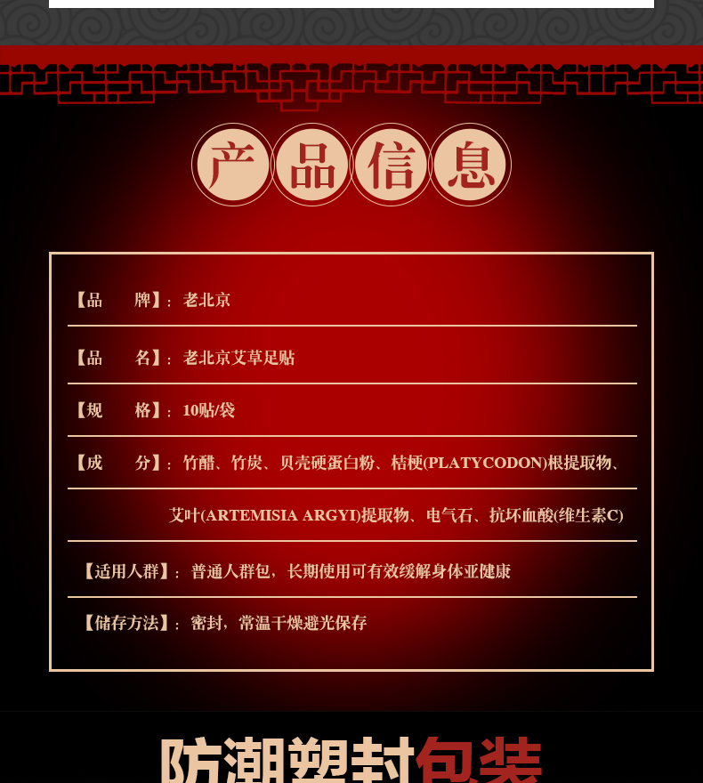 老北京艾草足贴养生去湿气除湿女睡眠足底脚贴艾叶官方正品10片装