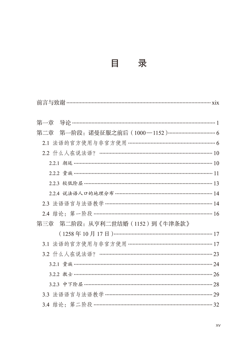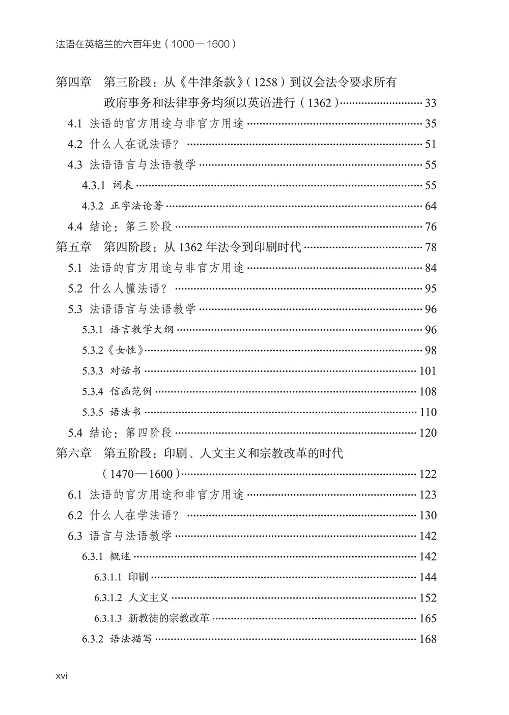 《法语在英格兰的六百年史(1000-1600)》是一部语言教学史,同时也细致描述了公元1000年至1600年间法语和英语的语言关系史。全书共七章,分五个阶段对法语在英格兰的使用状况做了论述。每个阶段均论述了法语在英格兰的地位、说法语的人群、法语的教学三个主题,围绕语言政策、语言与社会、语言教学方法等领域展开,同时涉及各个时期的历史背景、社会文化思潮、媒介技术革新等影响因素。