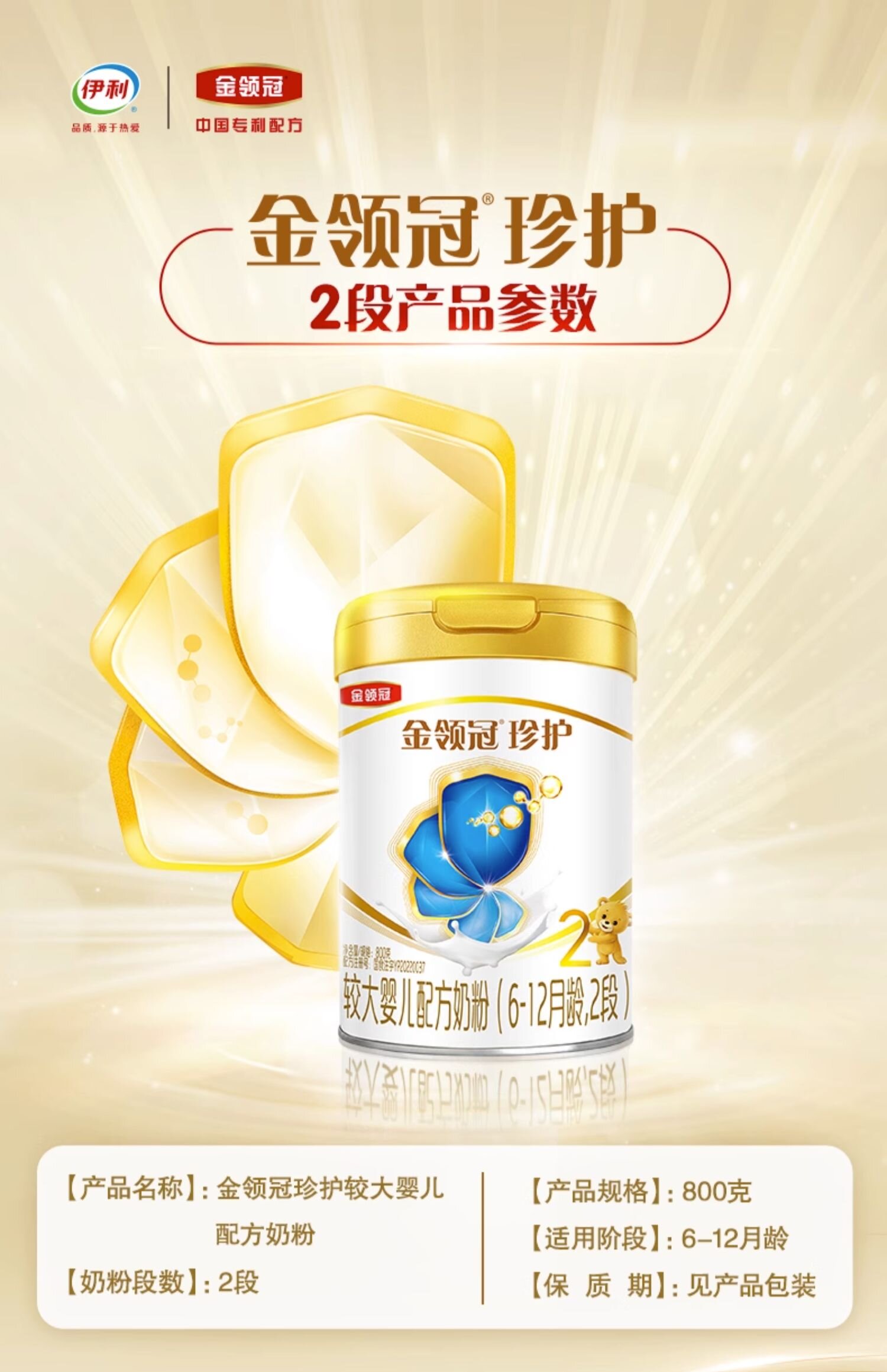 伊利金领冠珍护较大婴儿配方奶粉2段800g