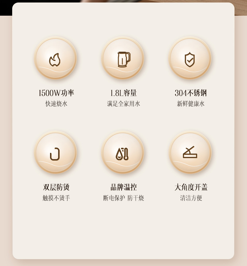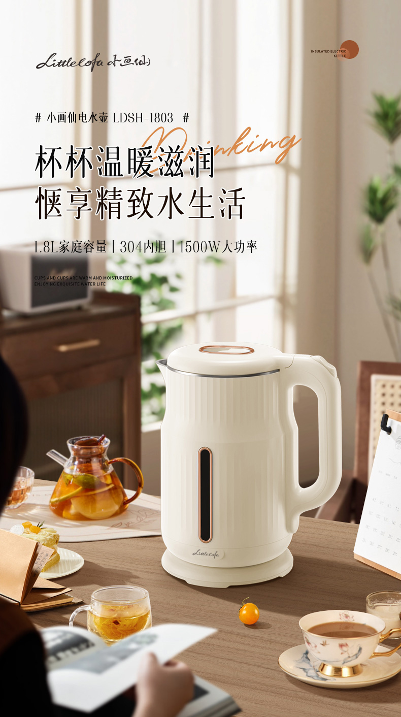 康佳旗下小画仙1.8L电热水壶 LDSH-1803 控温灵敏 双层隔热