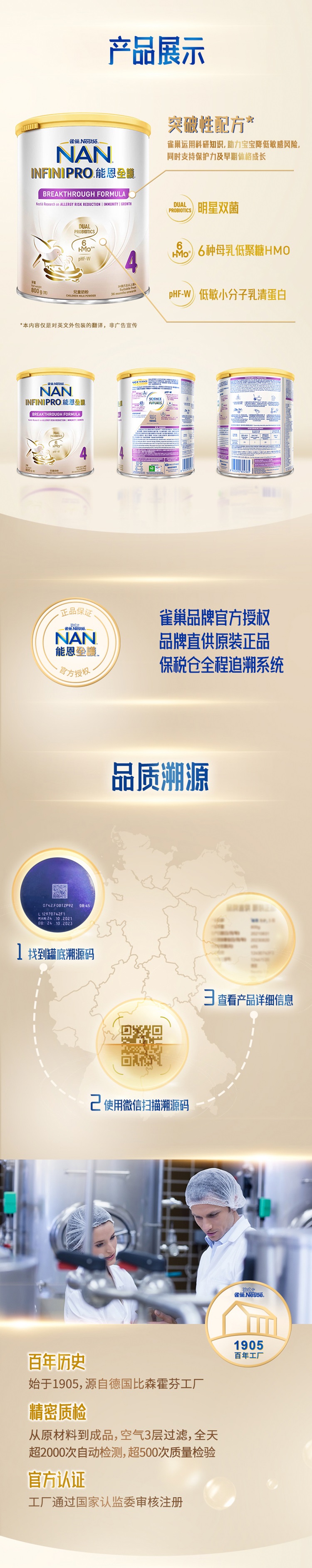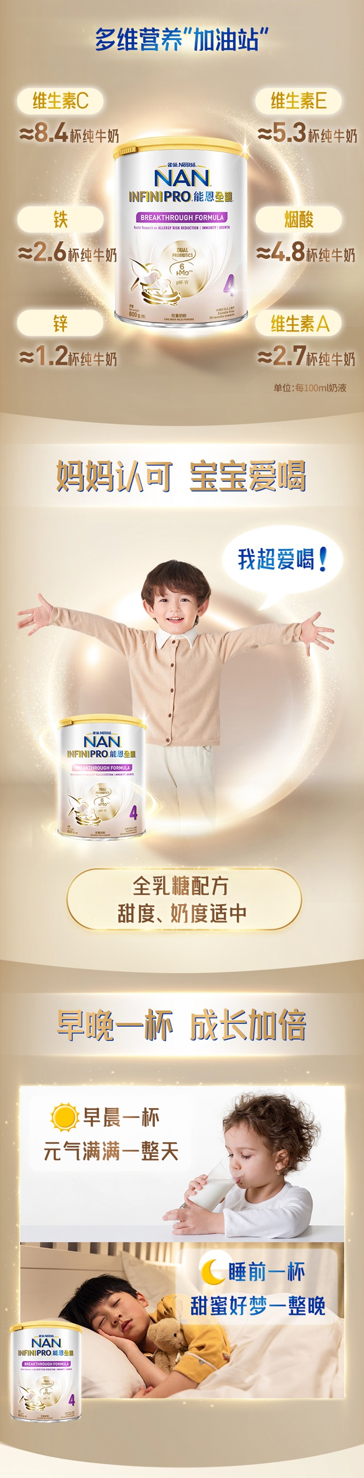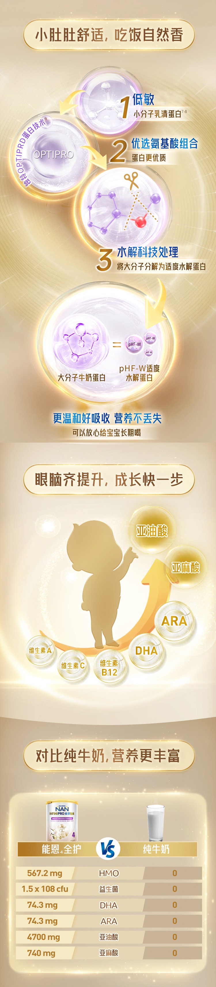[大罐4段]港版雀巢Nestle 能恩全护6HMO适度水解益生菌儿童配方奶粉4段(36个月以上)800g
