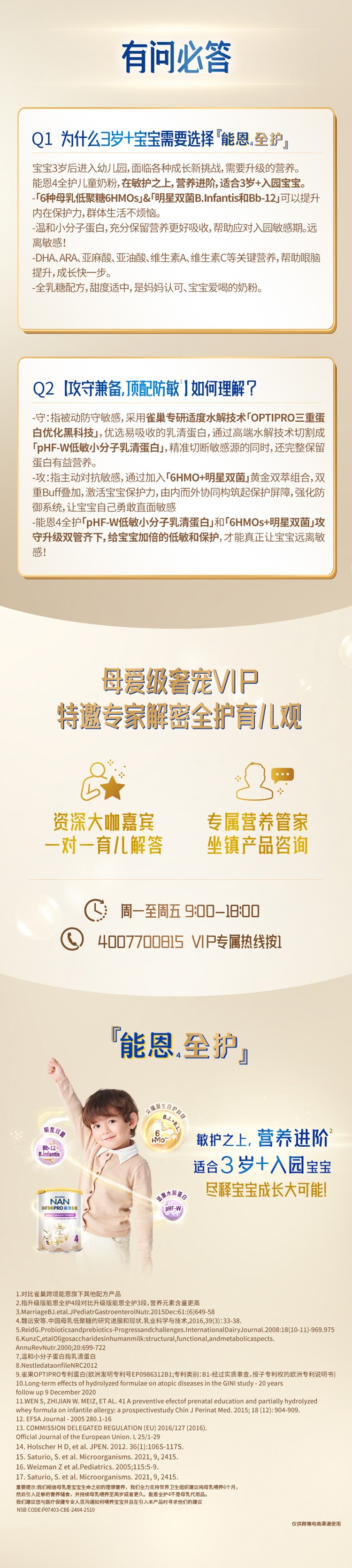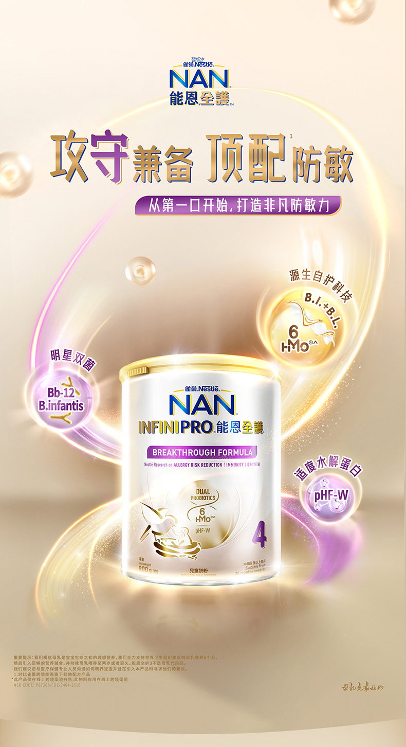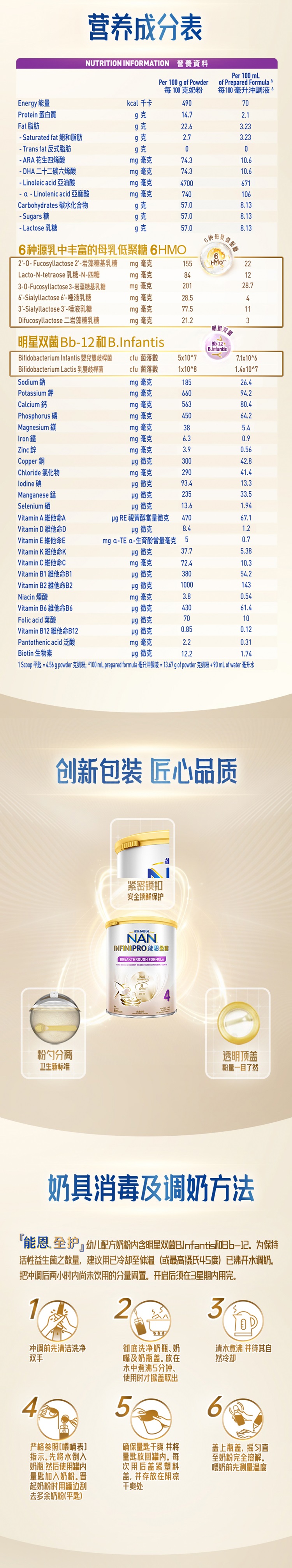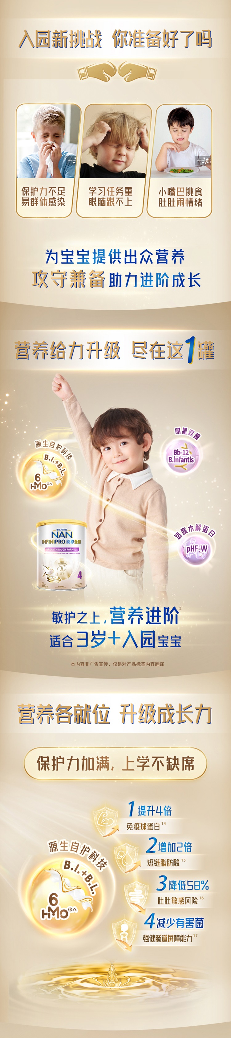 [大罐4段]港版雀巢Nestle 能恩全护6HMO适度水解益生菌儿童配方奶粉4段(36个月以上)800g