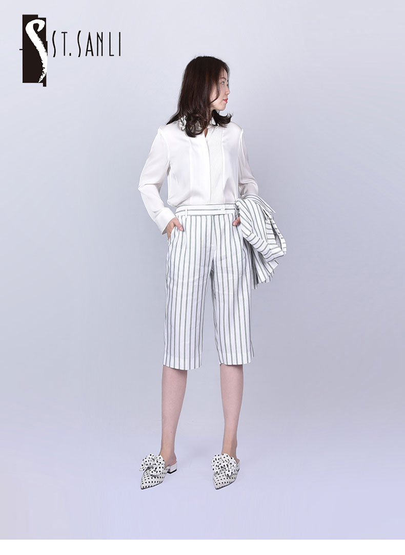 圣三利女装春夏季条纹款休闲西装短裤SL2016148
