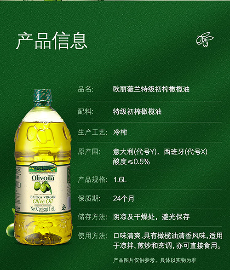 欧丽薇兰(Oliviá) 特级初榨橄榄油 1.6L