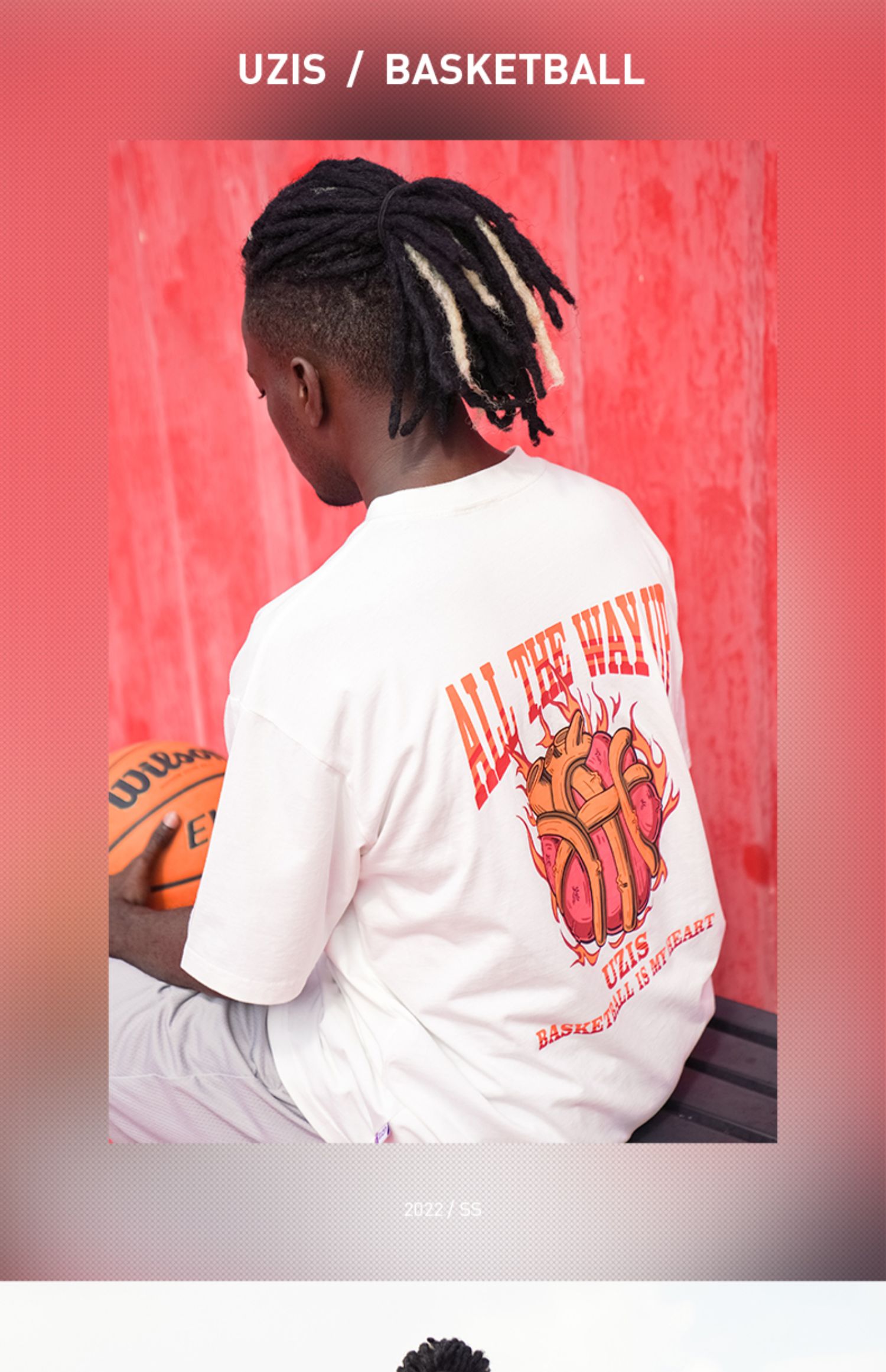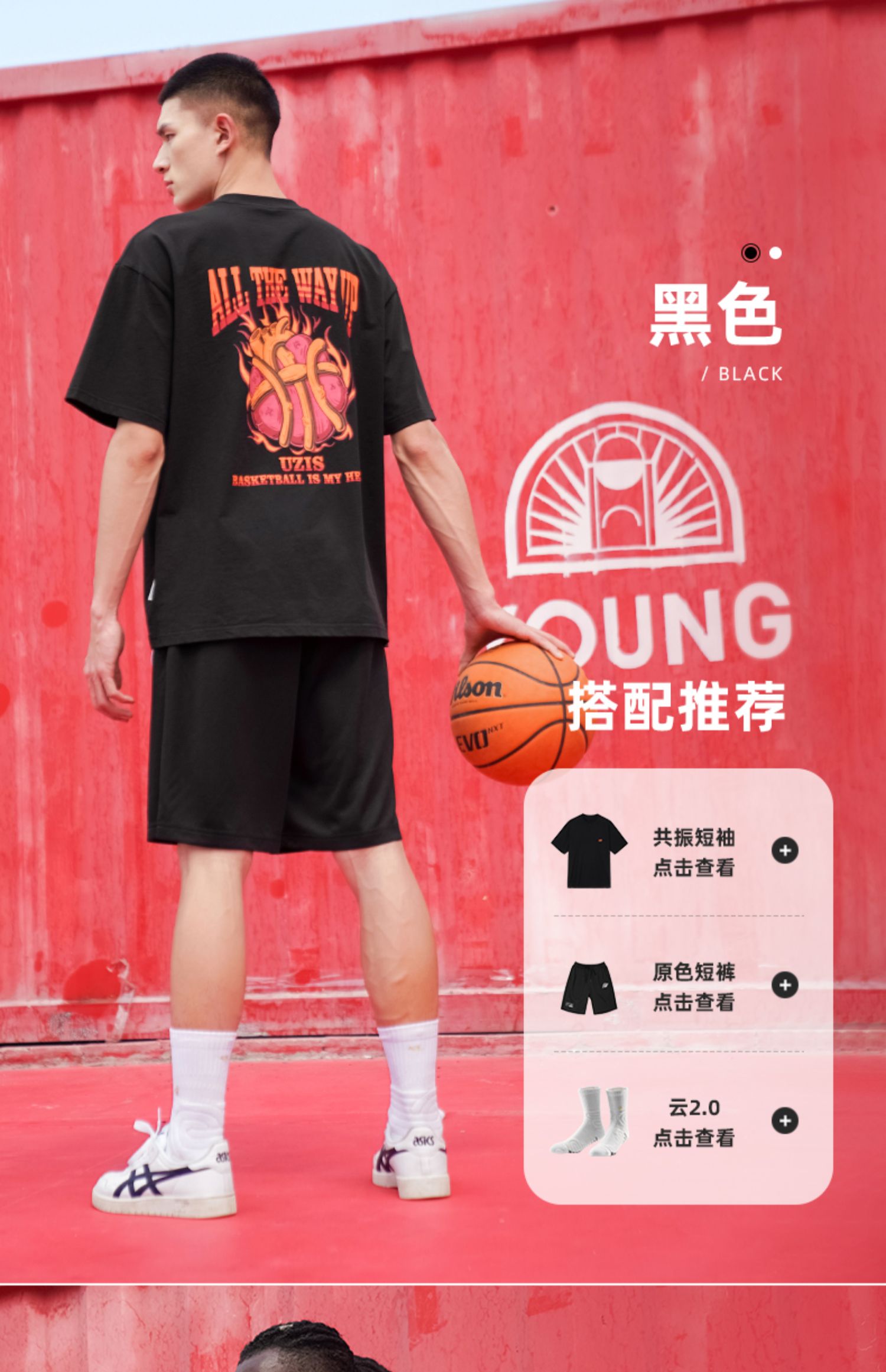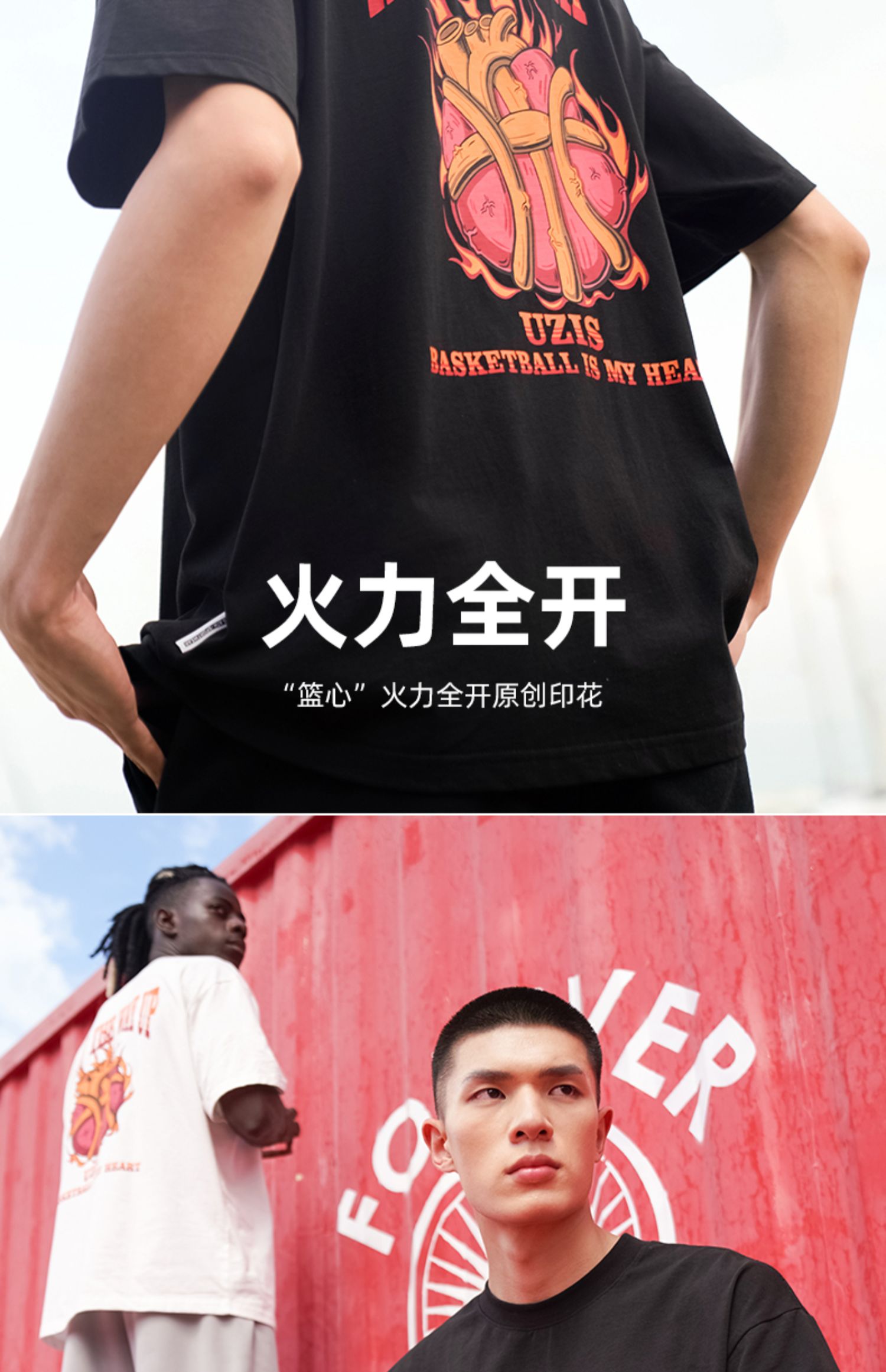 无界 UZIS篮球短袖夏季纯棉圆领印花球衣美式复古运动半袖[共振]
