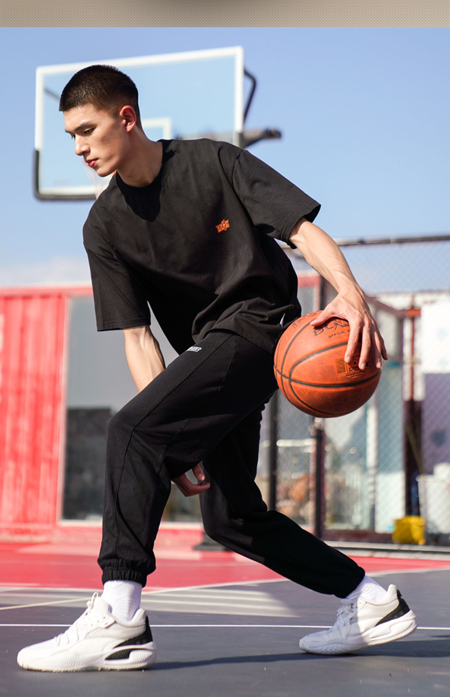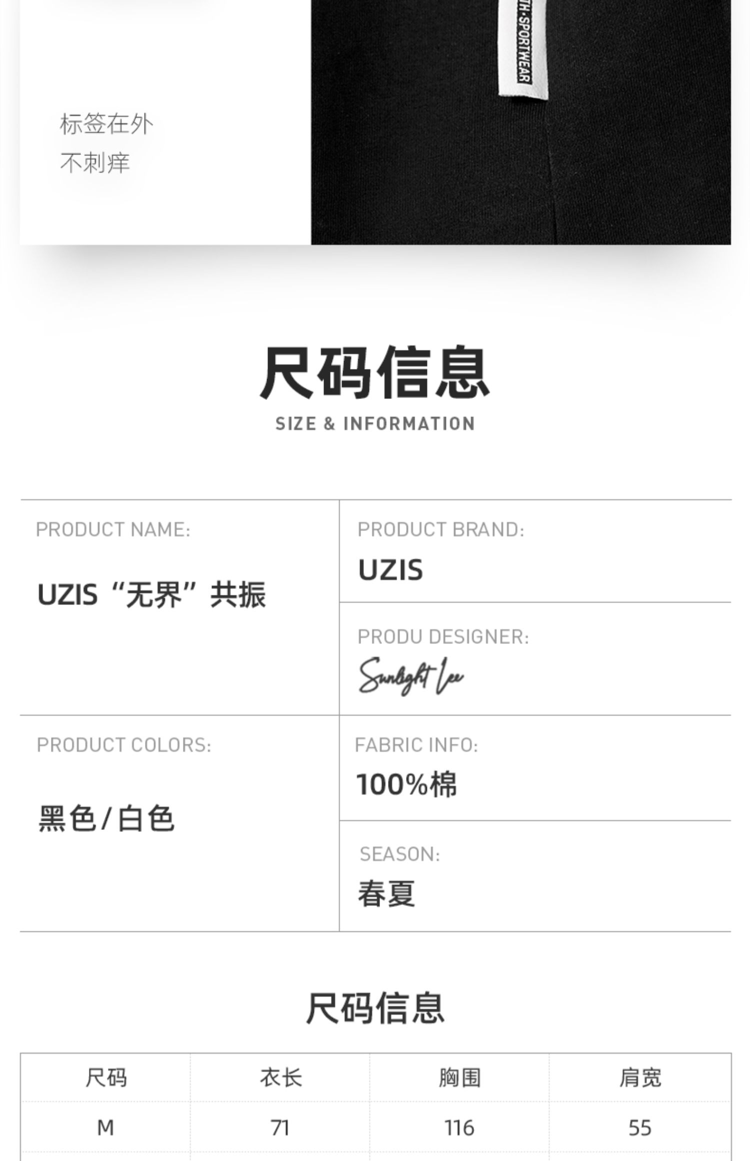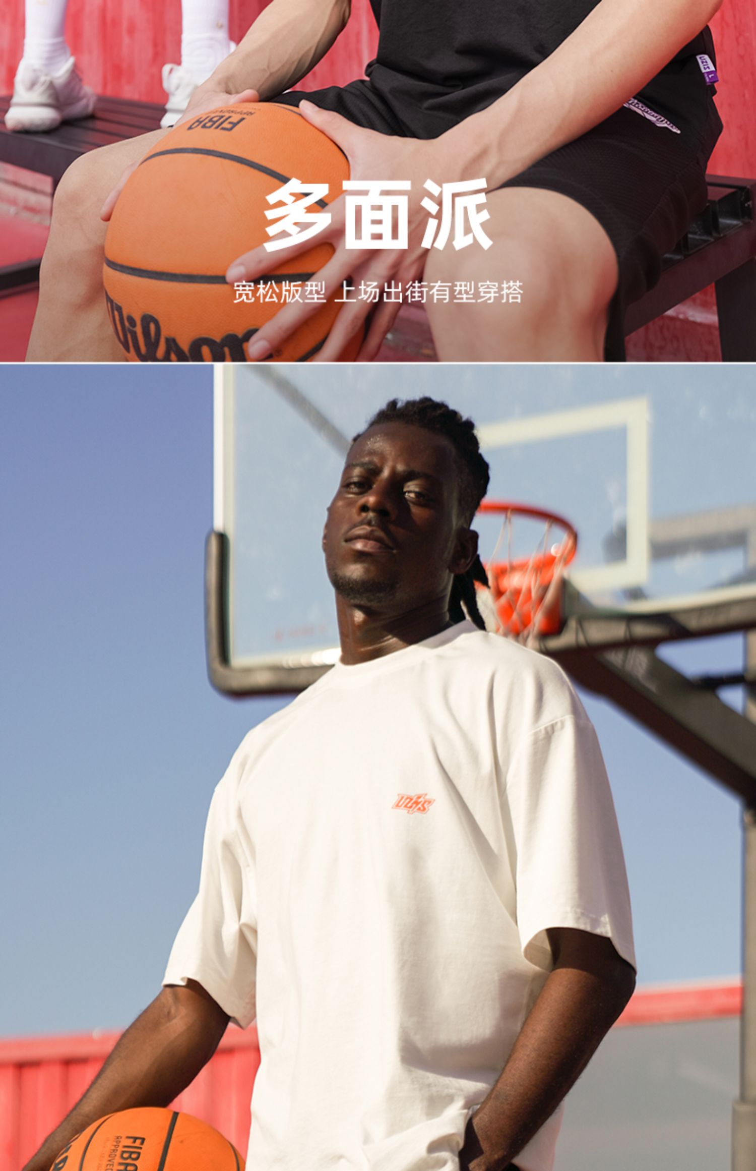 无界 UZIS篮球短袖夏季纯棉圆领印花球衣美式复古运动半袖[共振]
